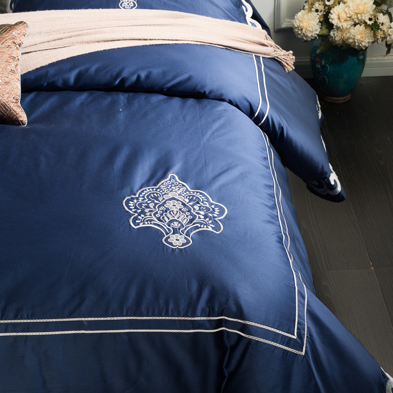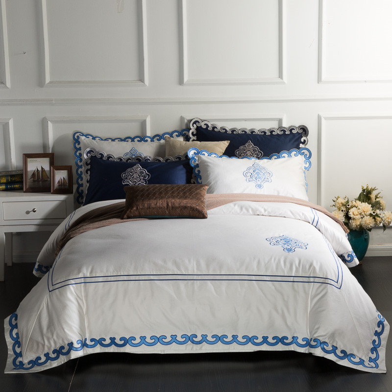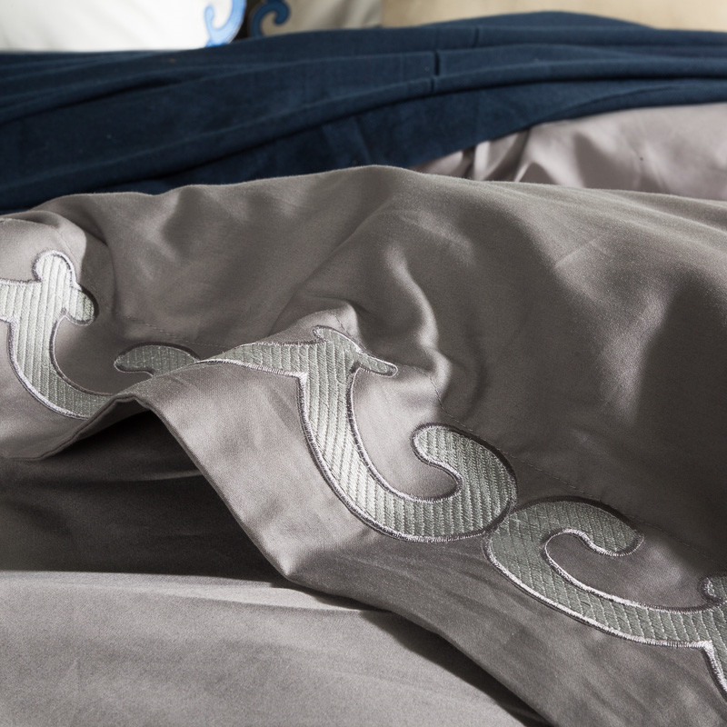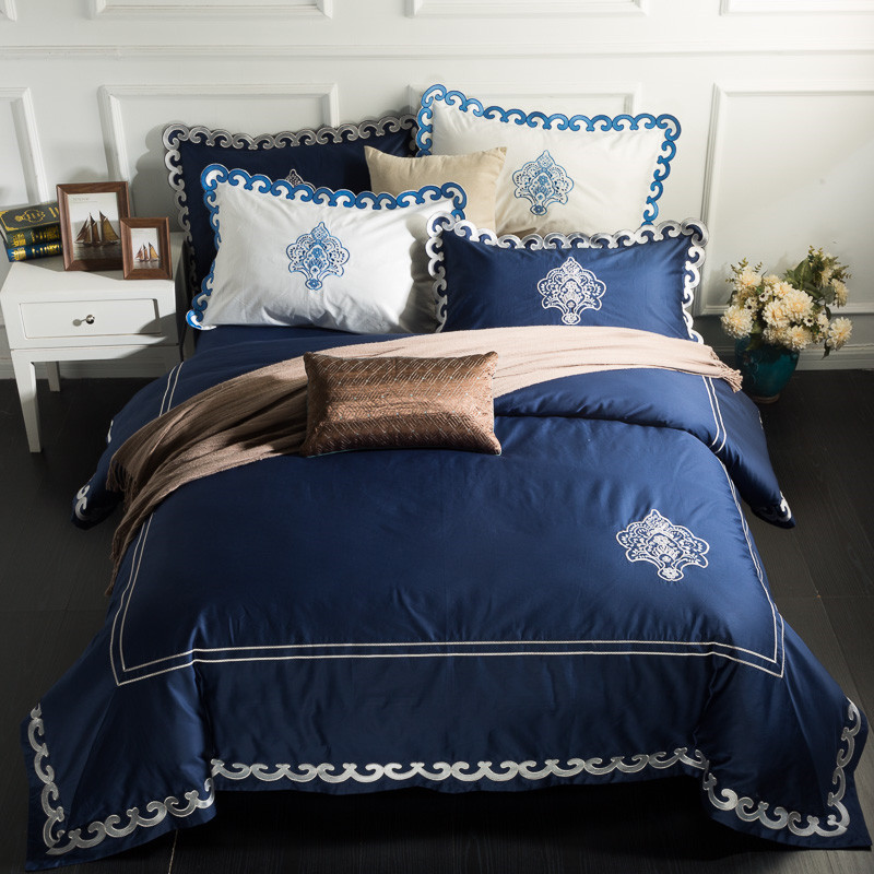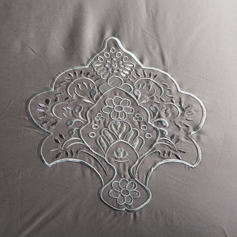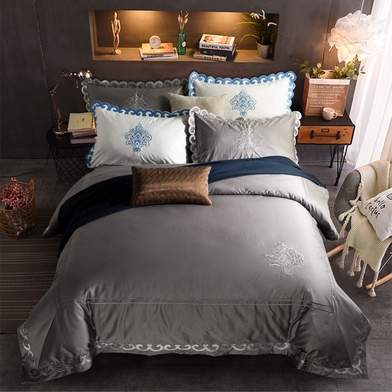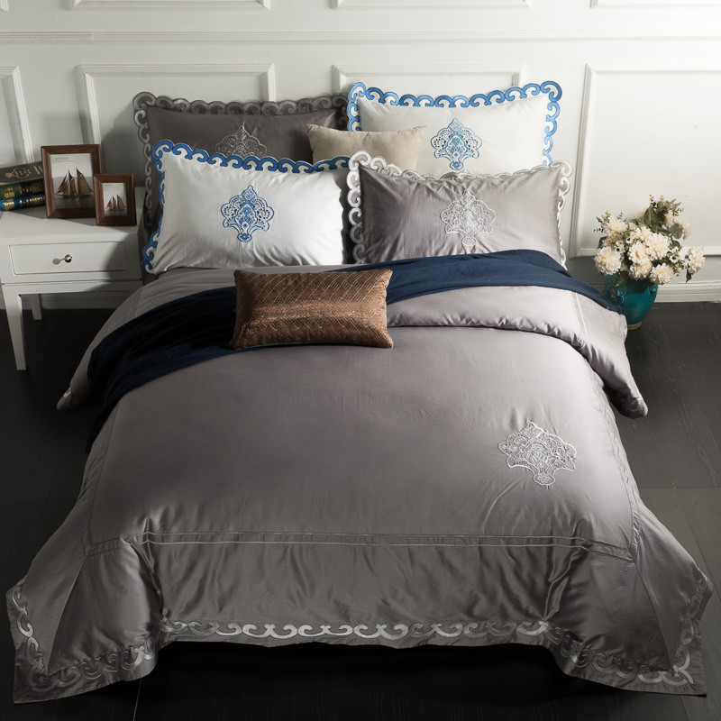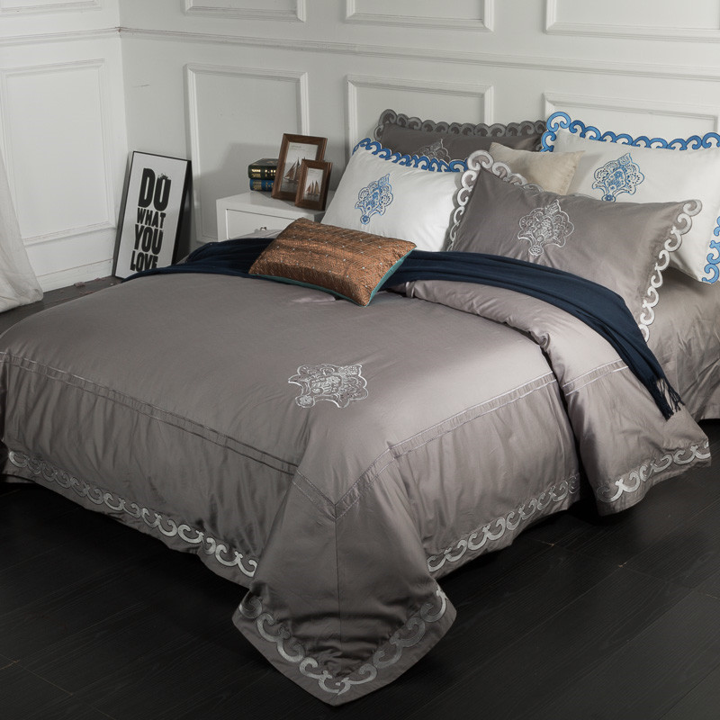总玖玖爱家纺 纯棉100支贡缎长绒棉刺绣被套三件套四件套加大四件套,白色,高级灰,卡其,蓝灰,绿色,浅桔,深蓝,紫豆沙
