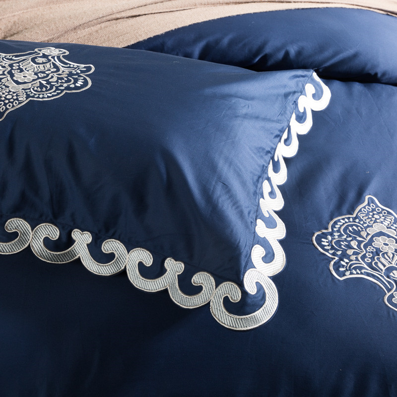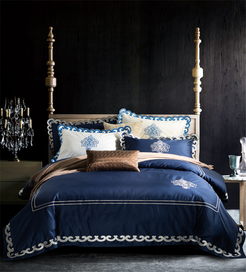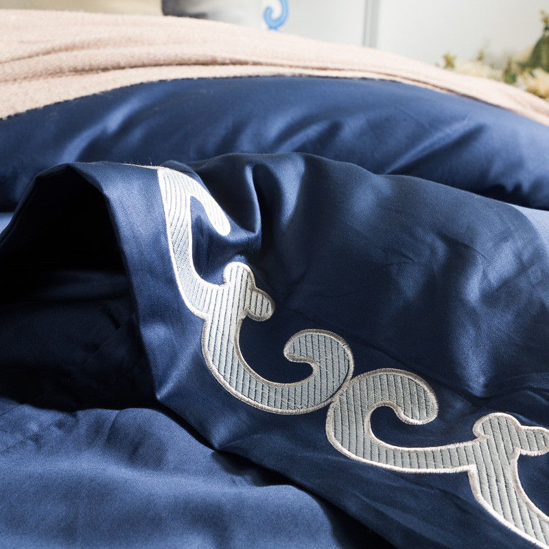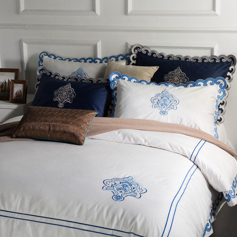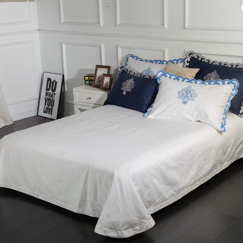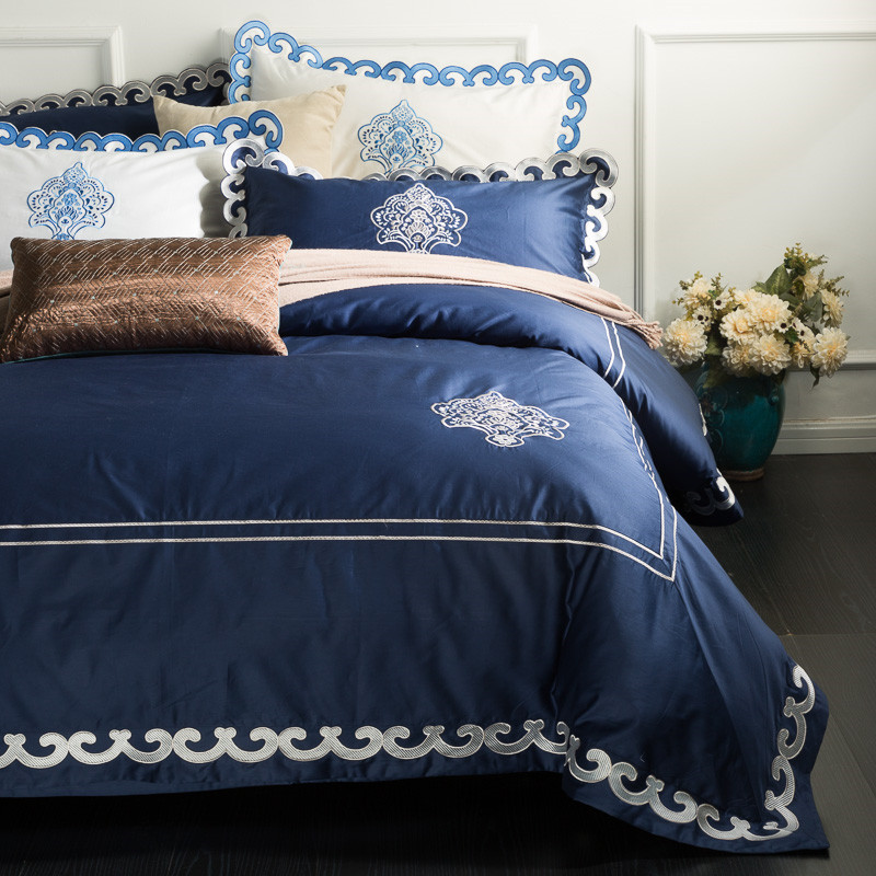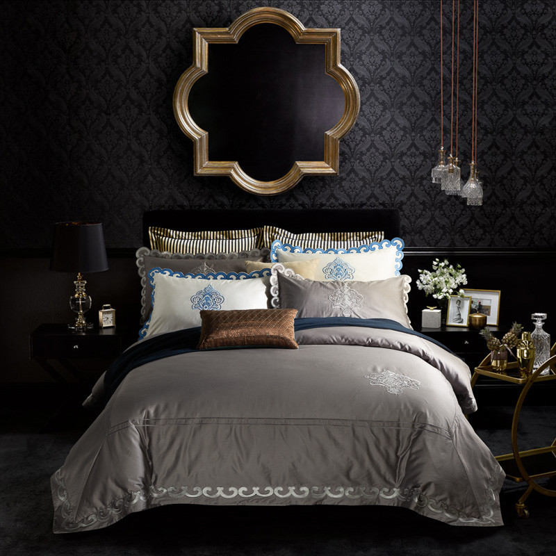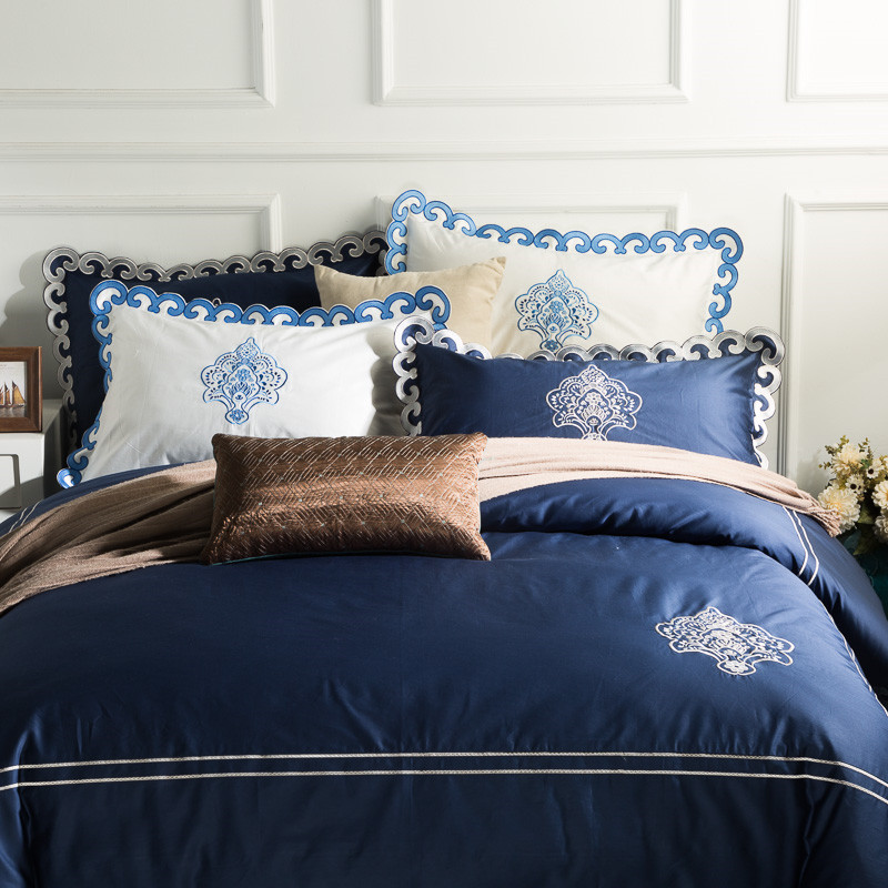 总玖玖爱家纺 纯棉100支贡缎长绒棉刺绣被套三件套四件套加大四件套,白色,高级灰,卡其,蓝灰,绿色,浅桔,深蓝,紫豆沙