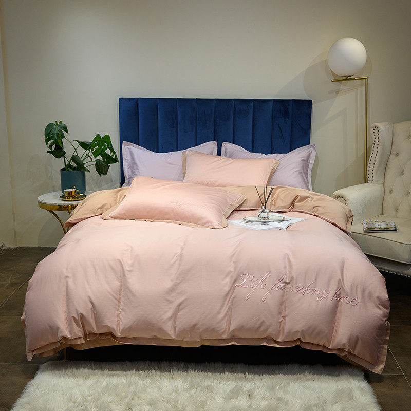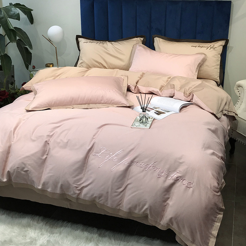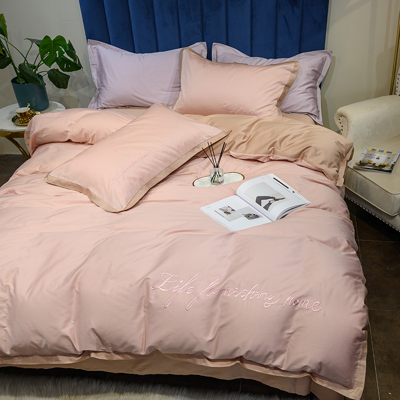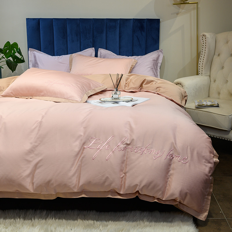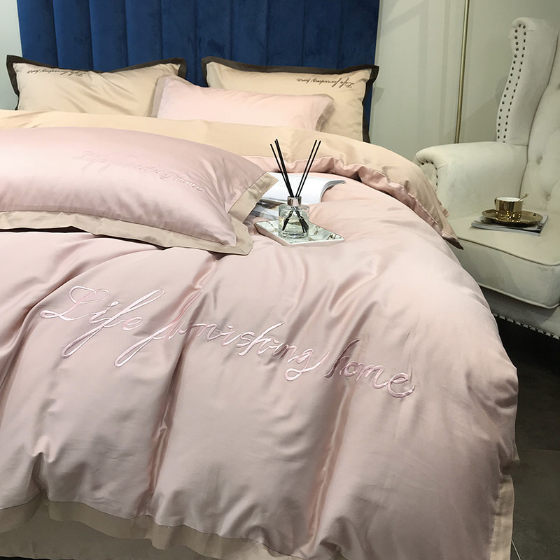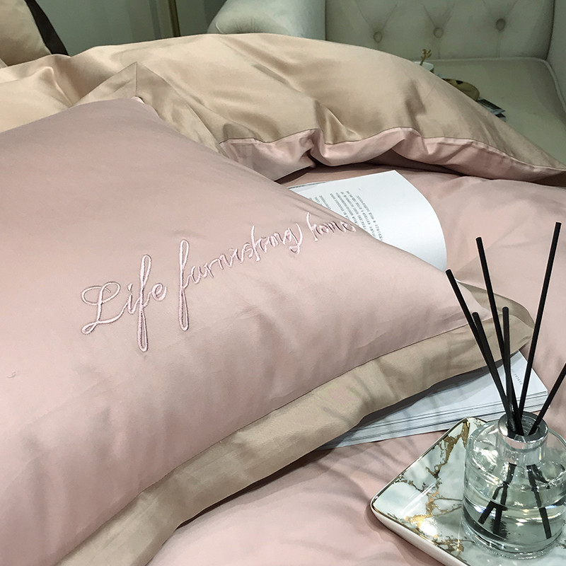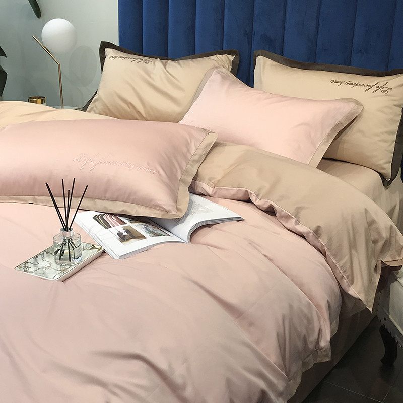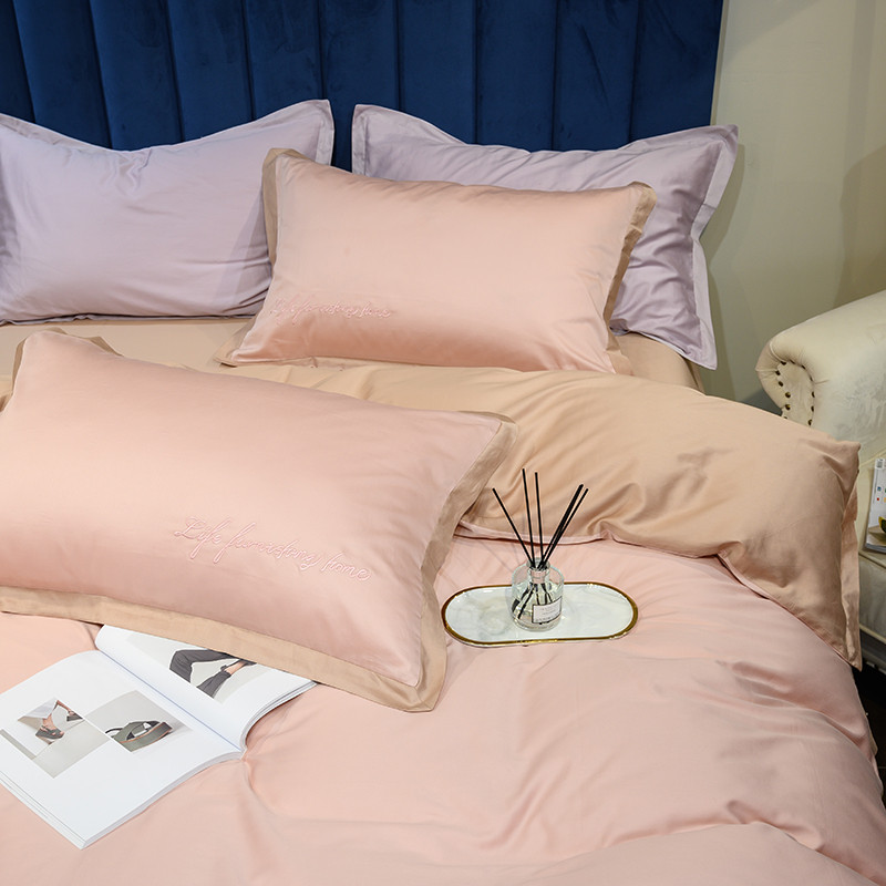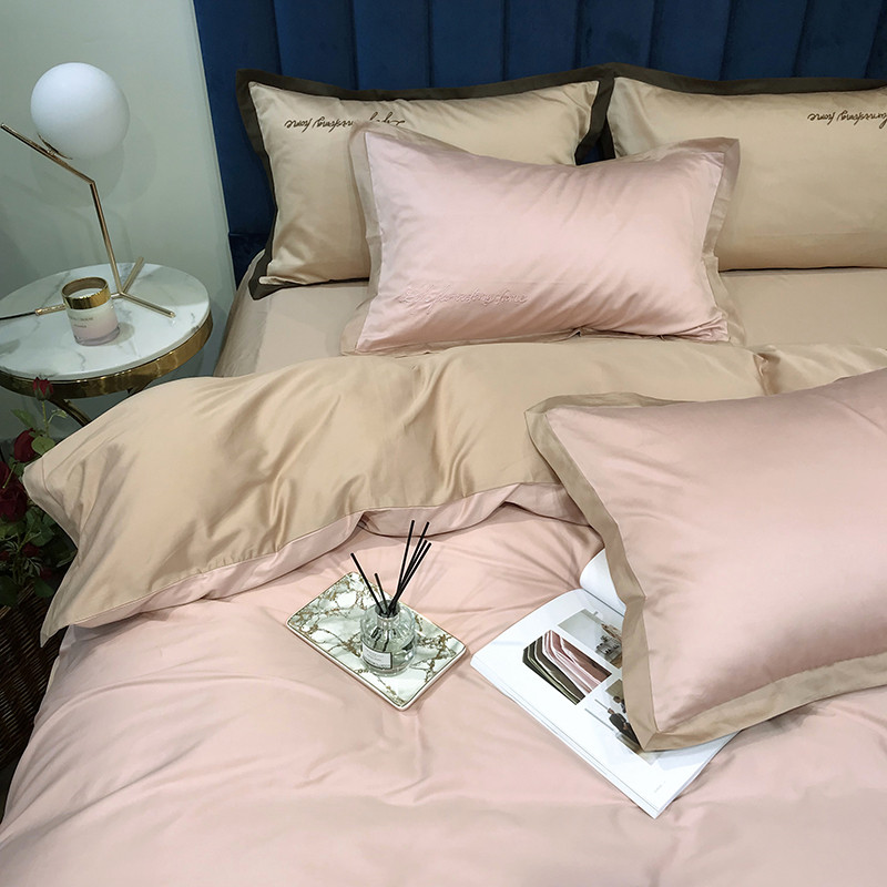 商品名称:太古汇 60支贡缎长绒棉纯色双拼四件套实拍图 香妃粉