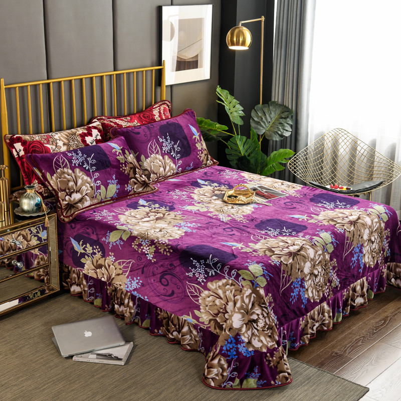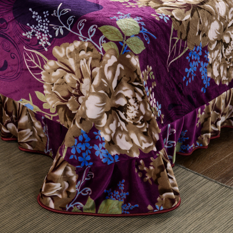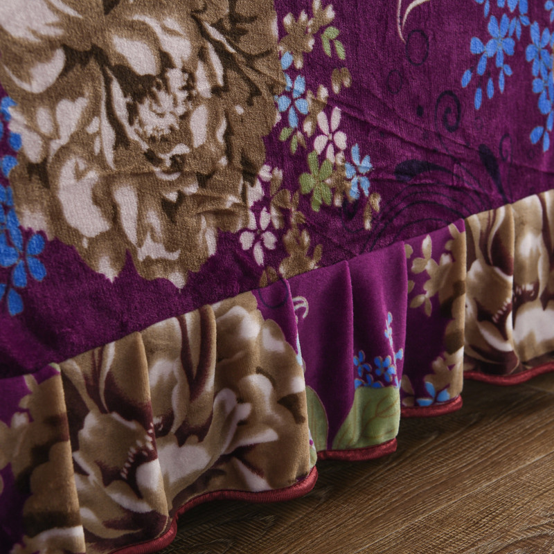 雨洋家纺 2025新款加厚金貂绒床裙床盖 花语怡然