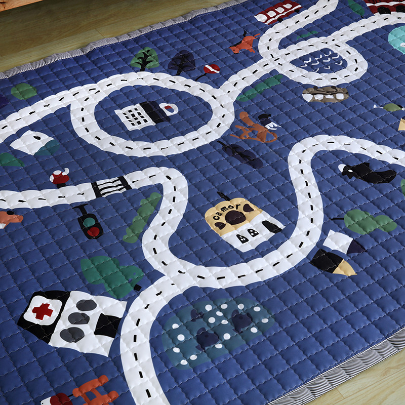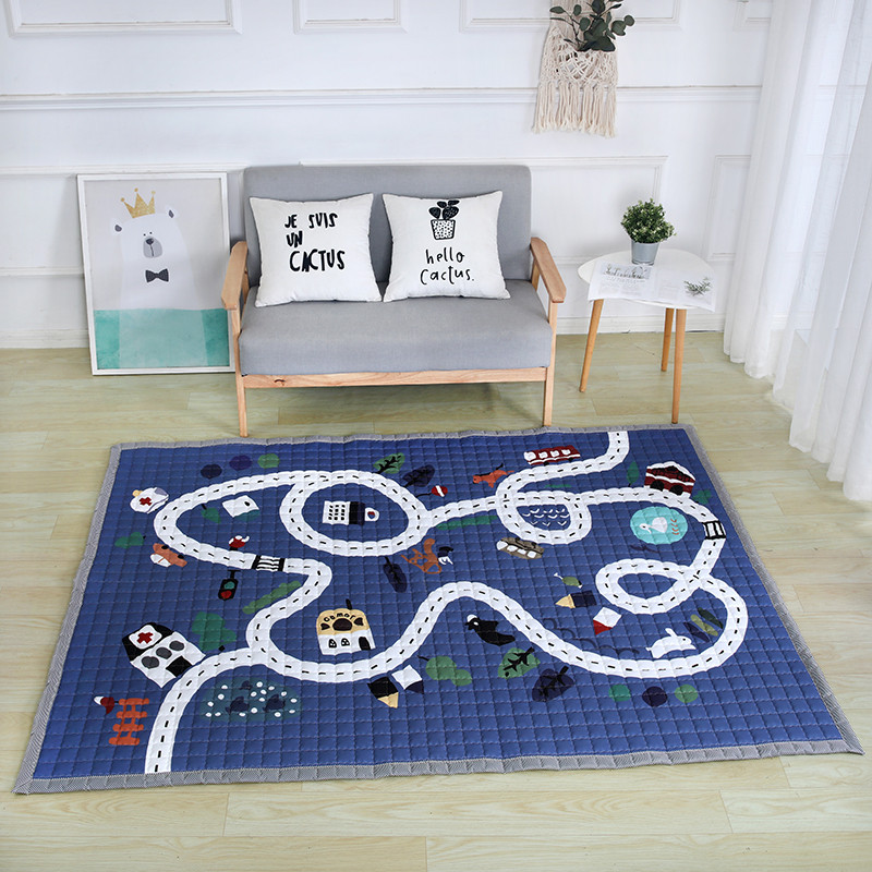 沁童家纺 北欧风长方形加厚地垫儿童爬爬垫小镇马路深蓝