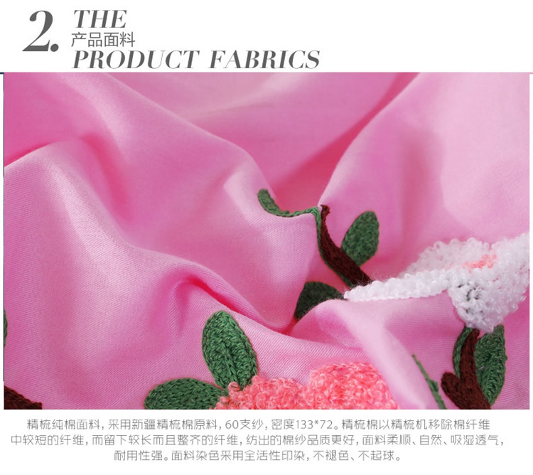 商品名称:13372田园风全棉毛巾绣四件套纯棉绣花全棉刺绣桃花朵朵粉色