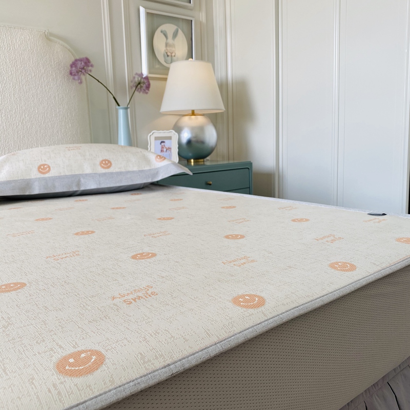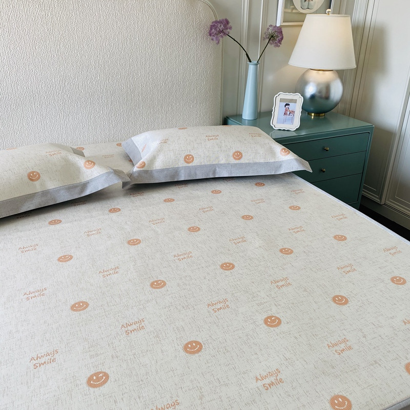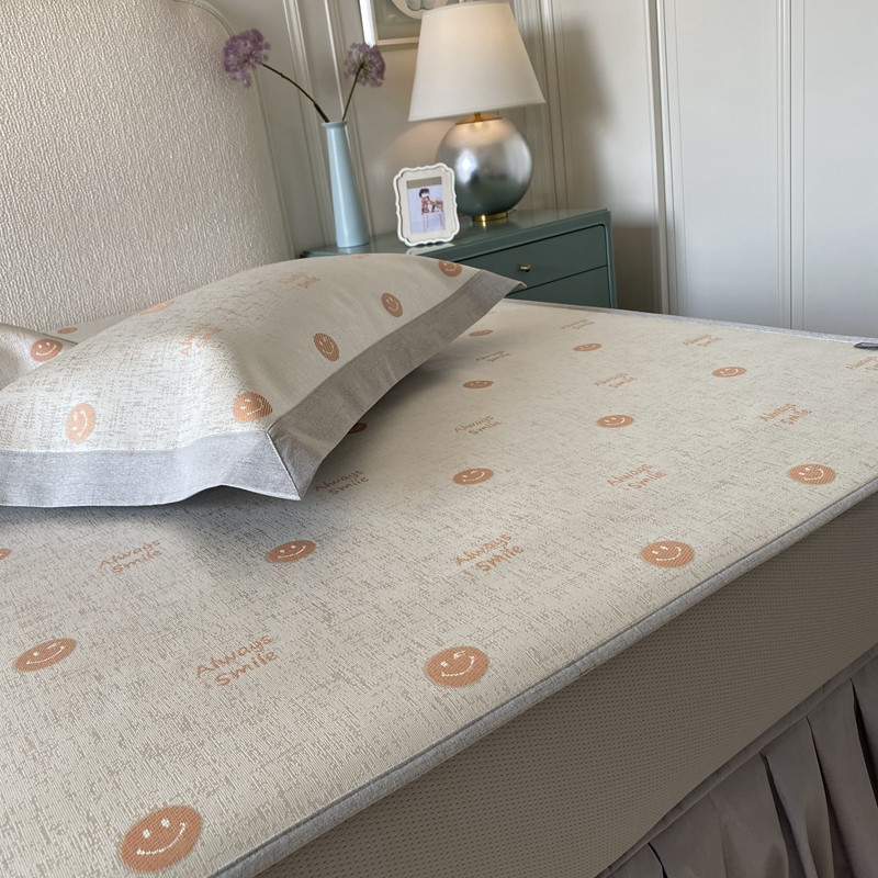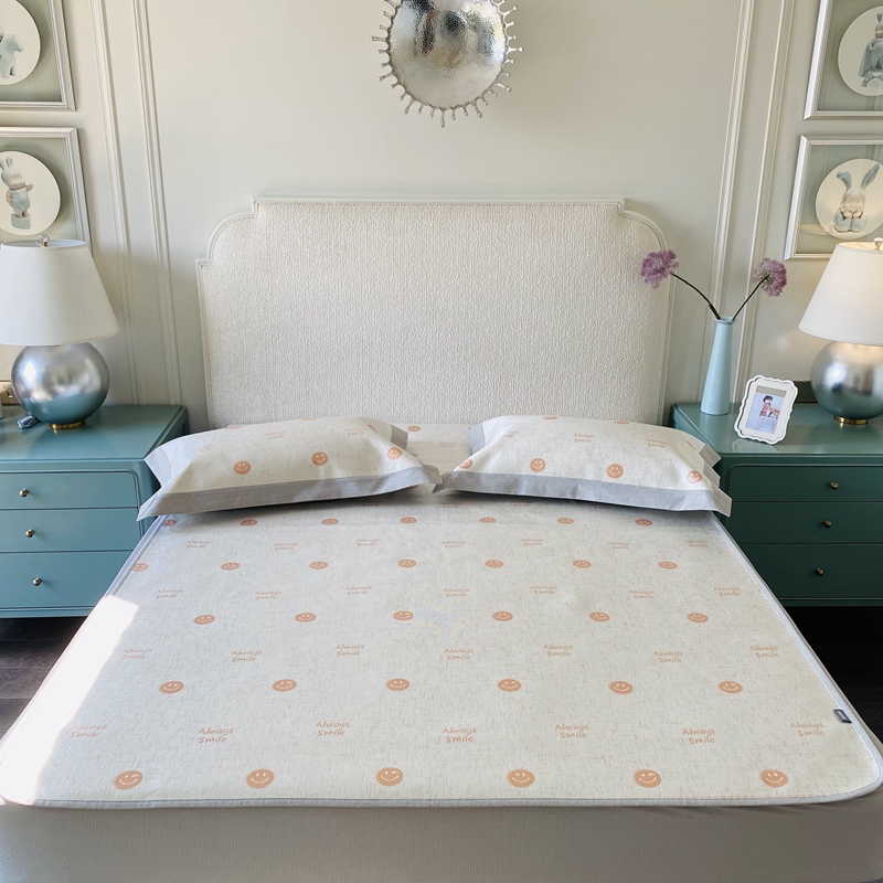 本希 2020新款可水洗冰丝凉席提花床笠系列实拍图笑脸-橘色