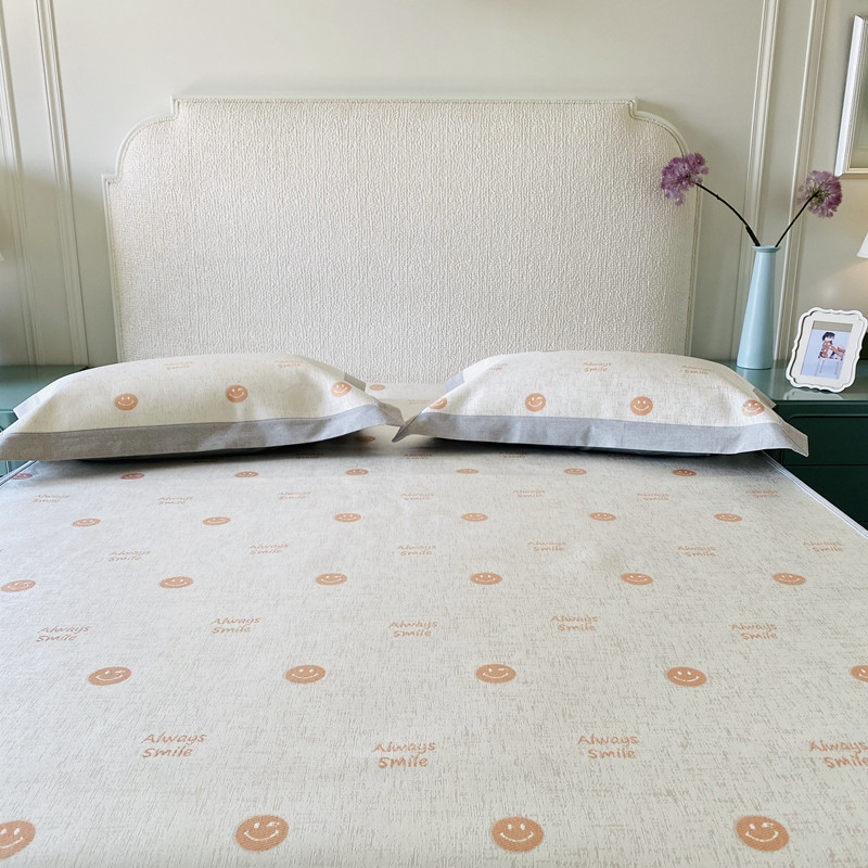 商品名称:本希 2020新款可水洗冰丝凉席提花床笠系列实拍图笑脸-橘色