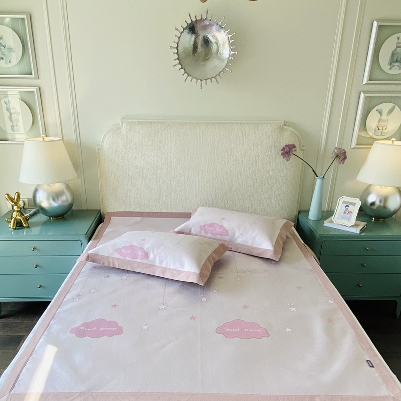 本希 2020高端可水洗冰丝凉席提花系列实拍图小云朵-少女粉