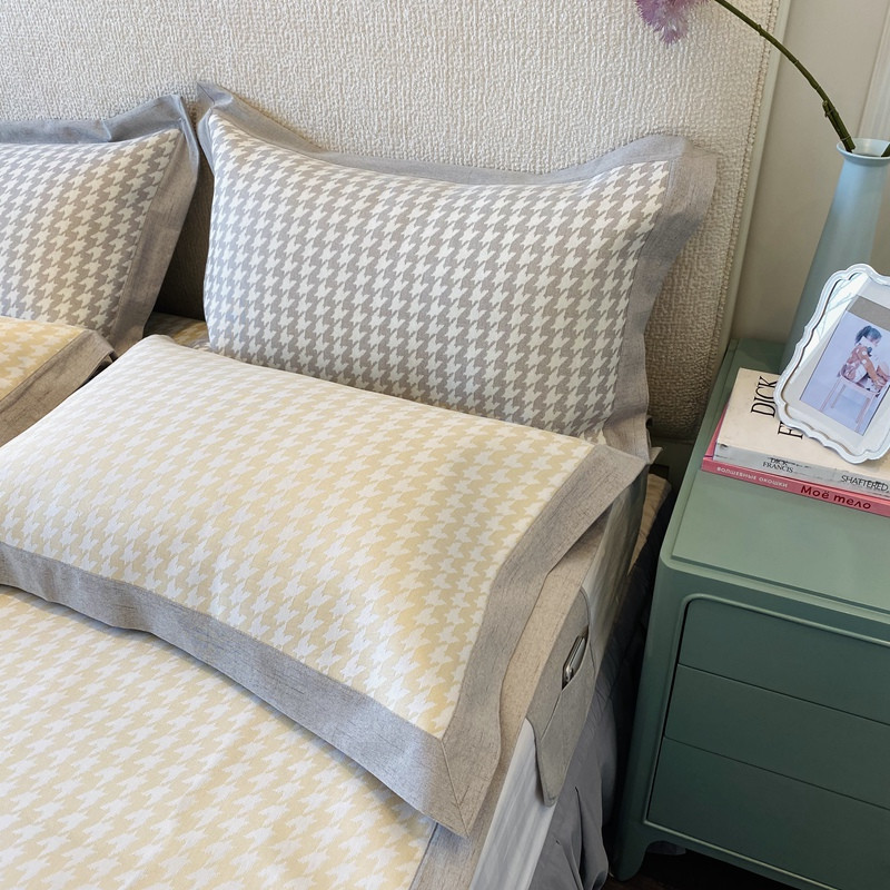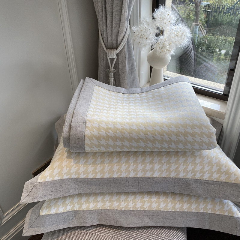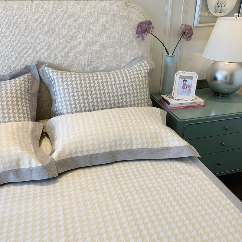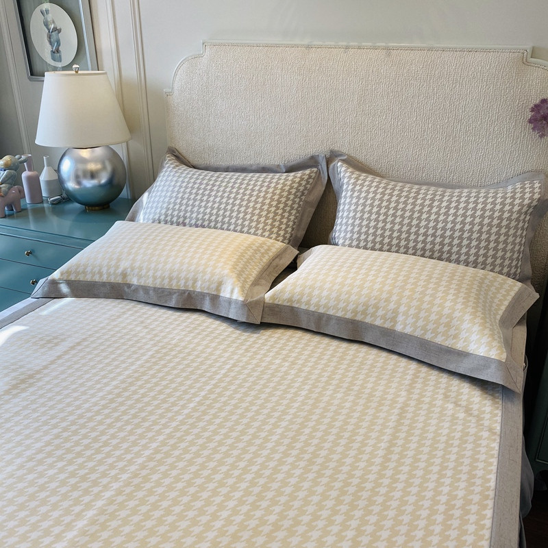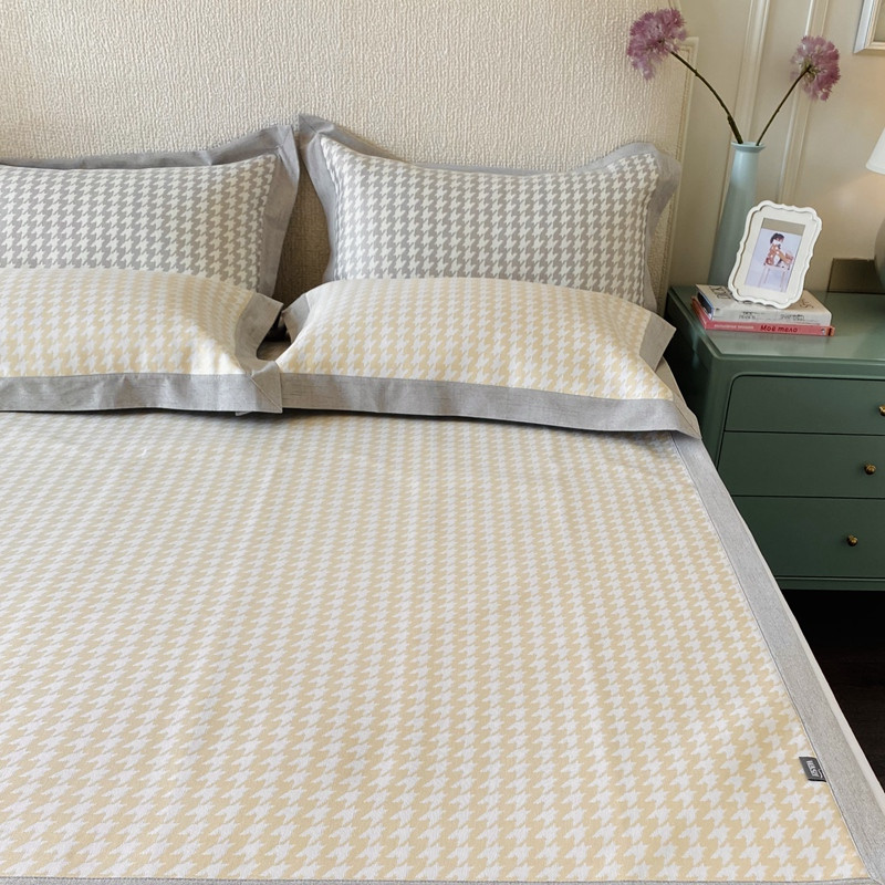 本希 2020高端可水洗冰丝凉席提花系列实拍图千鸟格-淡鹅黄