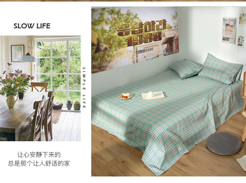 (总)感遇家纺 2022新款全棉印花四件套,格子小花,黑格恐龙,蓝色心情,浅暖