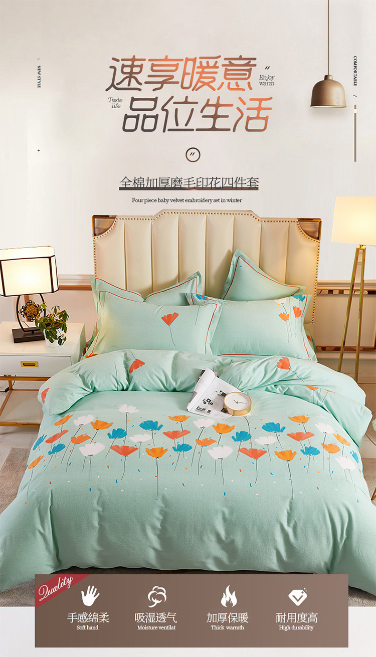 商品名称:雲归梦 2020新款全棉加厚磨毛四件套 朵朵花语