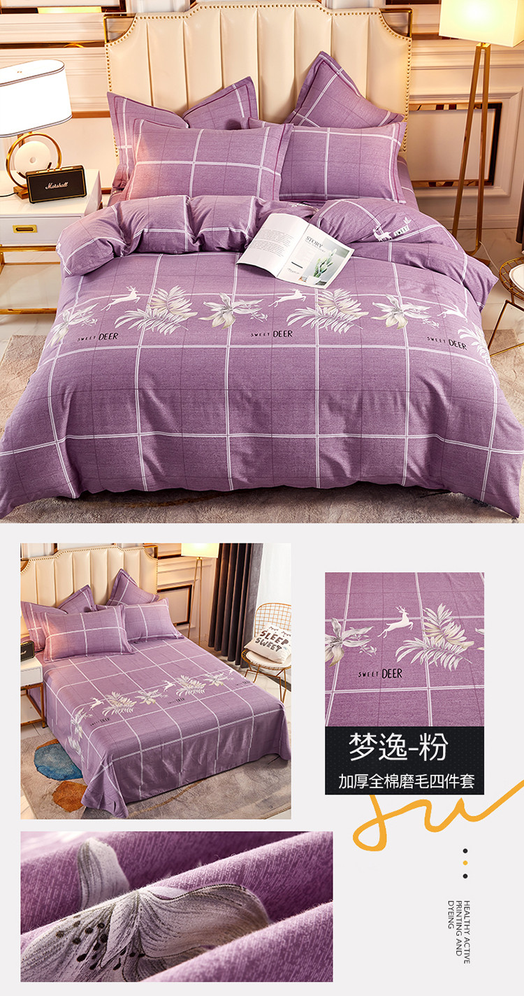 (总)雲归梦 2025新款纯棉加厚磨毛多规格磨毛四件套,艾莉芬特 灰,艾维斯 粉,艾维斯 灰,爱丽花园-粉,爱丽花园-蓝,安露丝 米,别样风采 粉,缤纷果园,草莓情,璀璨花开 桔,都市英伦,繁华影-桔,枫叶流丹 豆沙,枫叶流丹-灰,花彩狗狗-米,花香美梦-桔,花影时尚-粉,几何条雅,嘉百丽-紫,快乐星球-米,麦穗奇缘 ,孟菲格 灰,米莱-黄,米莱-兰,清风觅影 蓝,若烟 米,若雨千叶 蓝,杉杉恋曲 粉,盛放,唯美花城 灰,夏日恋曲 粉,向往生活 桔,幸运兔兔-兰,叶阑珊黄,夜曲-蓝,夜曲棕,英伦熊 米,羽缘,月光生活粉,悦动之心,长相思-绿,阿华田-豆沙,阿华田-粉,阿华田-灰,阿华田-桔,阿华田-咖,阿华田-蓝,阿华田-紫,阿拉斯加灰,浮萍紫,古韵山河,玫瑰之心粉,闪耀咖,岁月长河灰,岁月长河蓝,唯尚咖,乌木茶香米,星空蓝,旋风蓝,一举夺魁,云亭山野灰