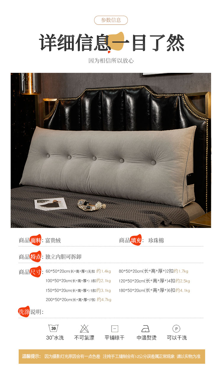 当前位置: 91家纺网 > 商品网购 > 居家日用 > 靠垫/抱枕 > 厂家直销一件代发2020新款三角富贵绒珍珠棉床头靠垫1.5床
