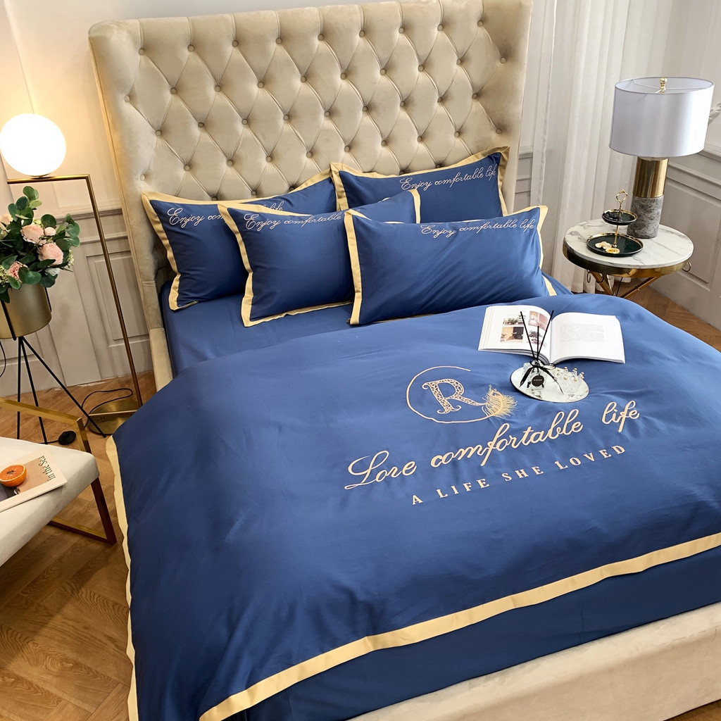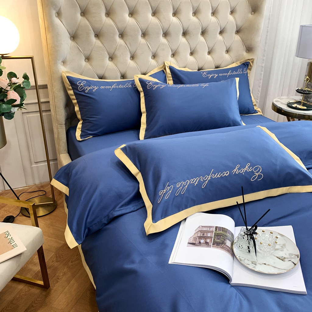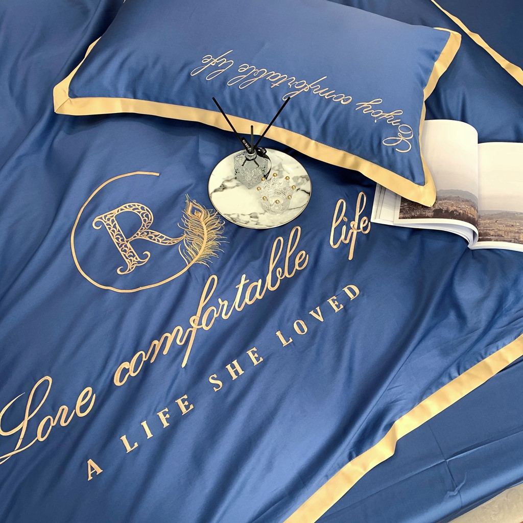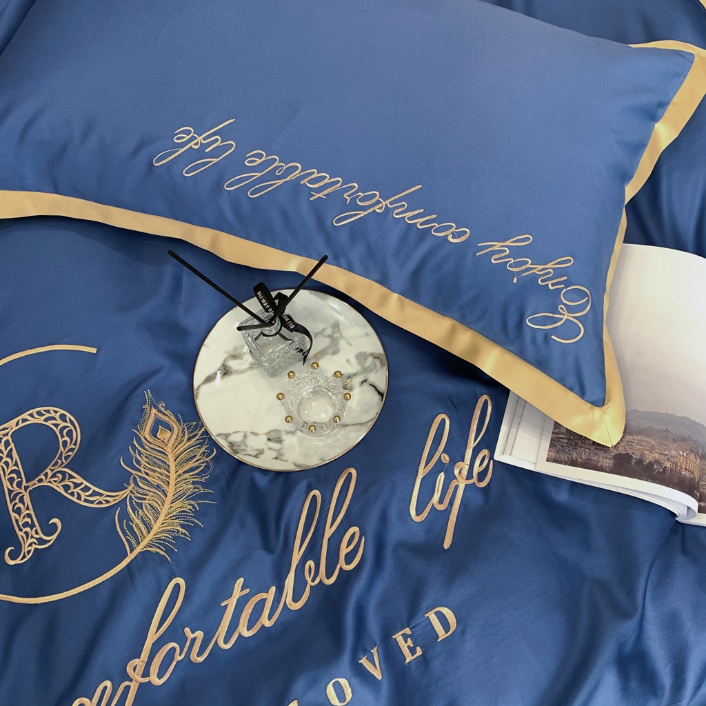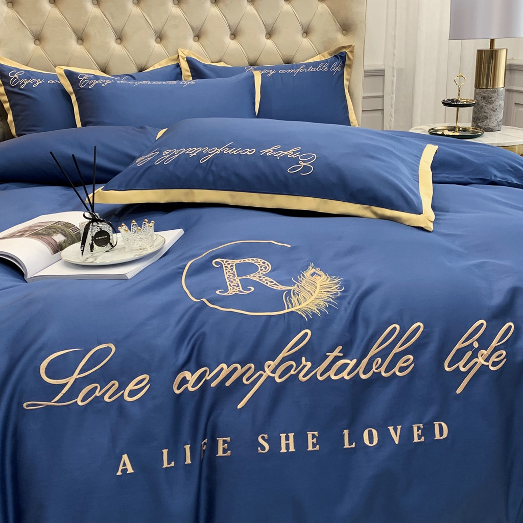 馨蕊家居 2021秋冬新品60s长绒棉简爱四件套简爱-黛蓝