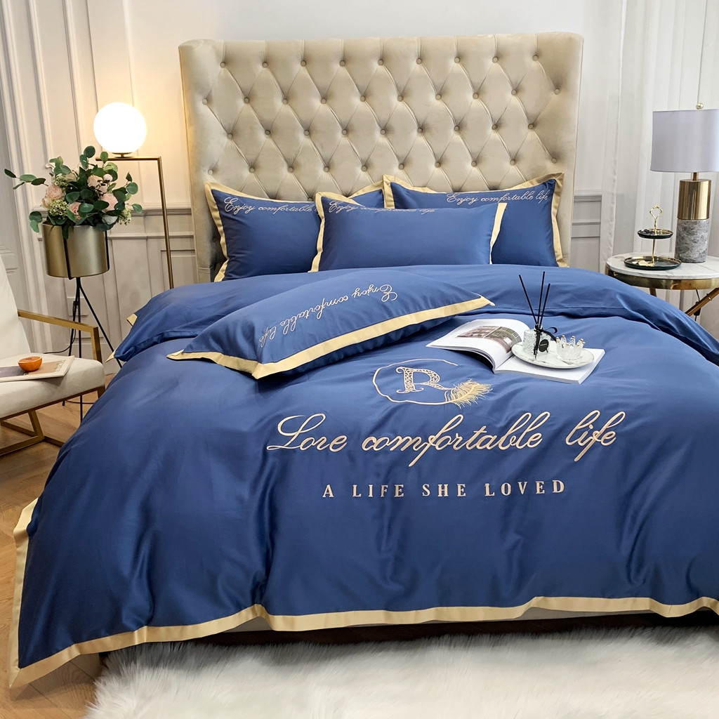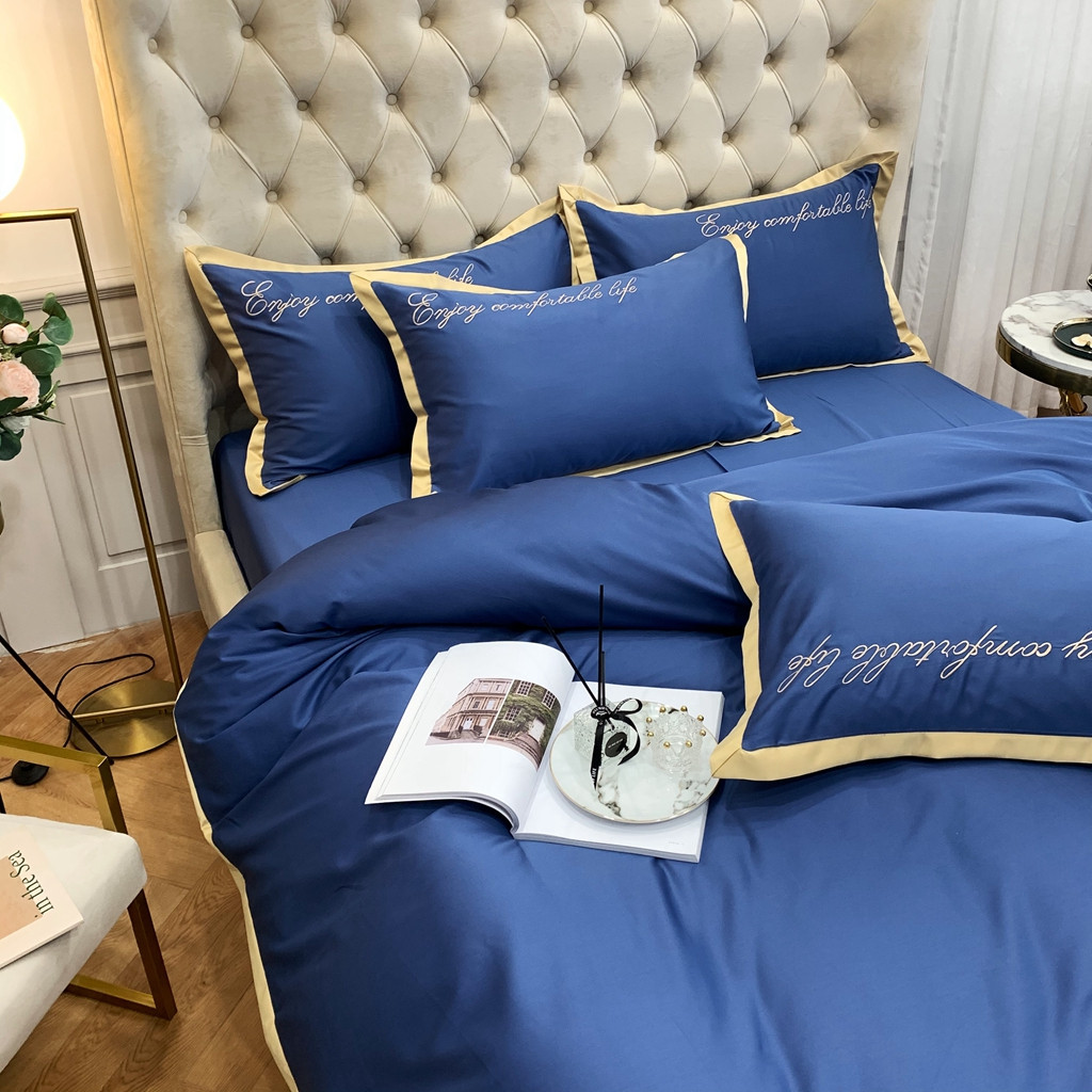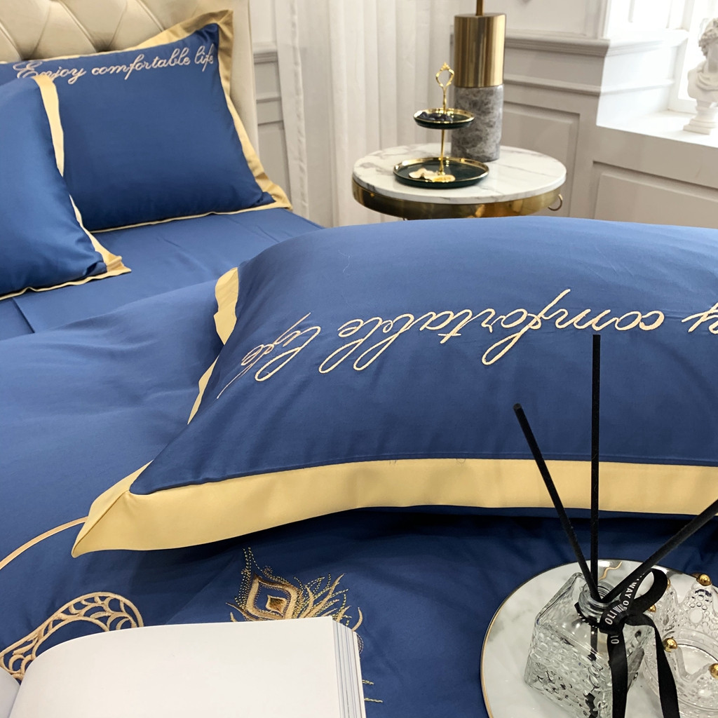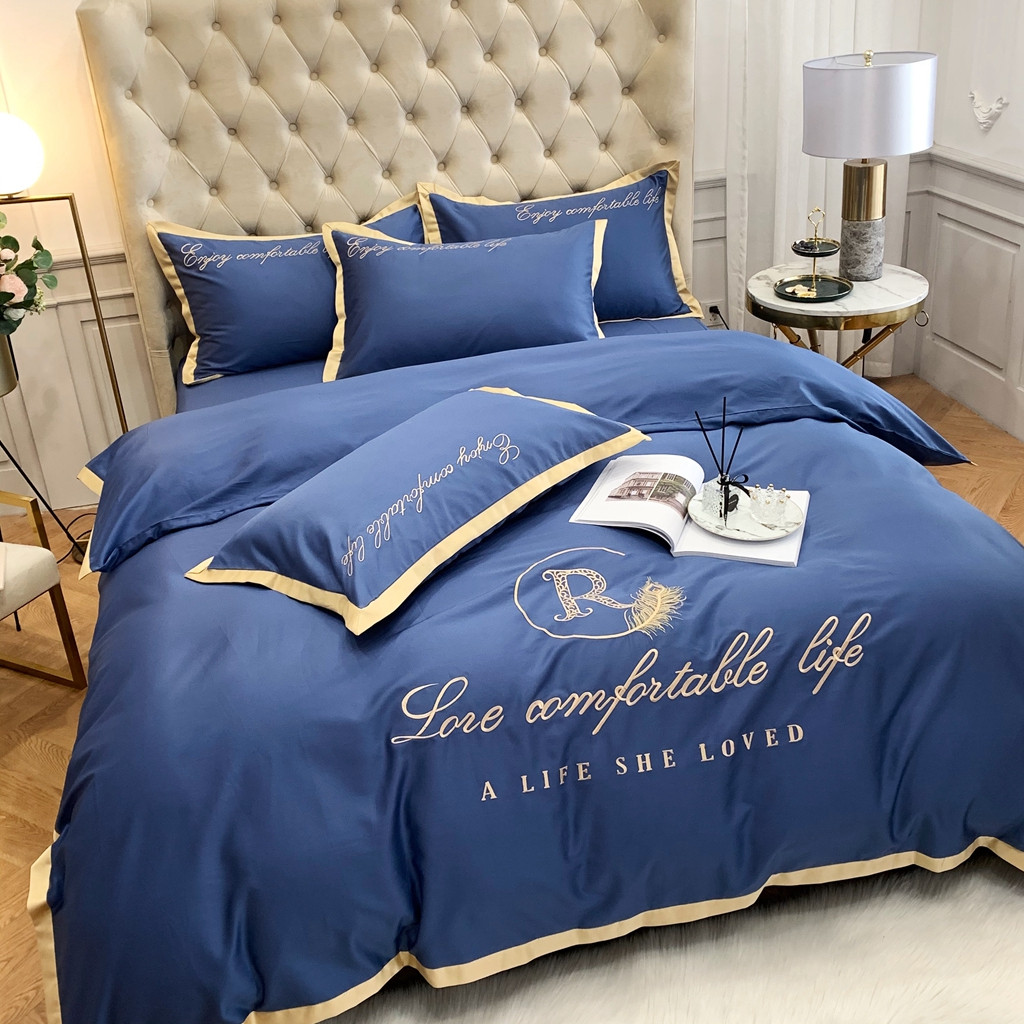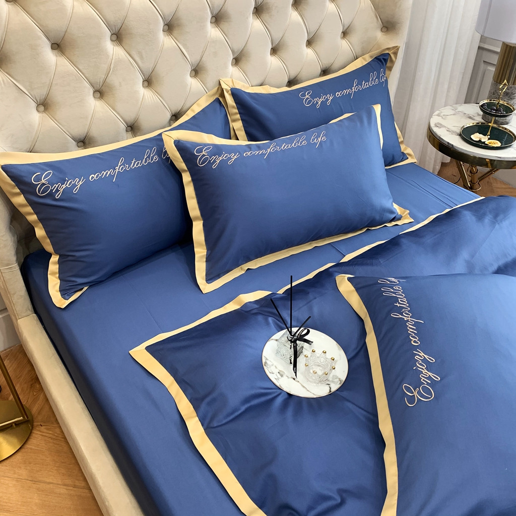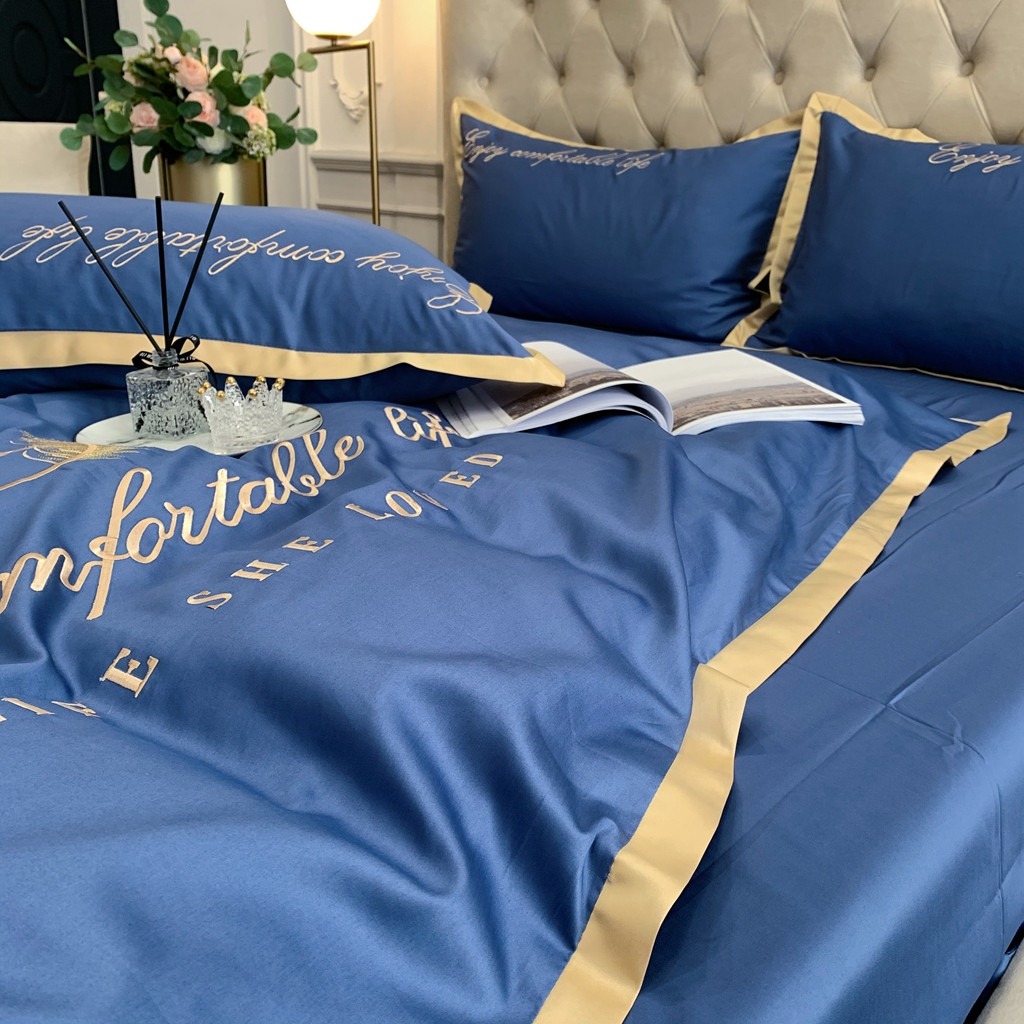 馨蕊家居 2021秋冬新品60s长绒棉简爱四件套简爱-黛蓝