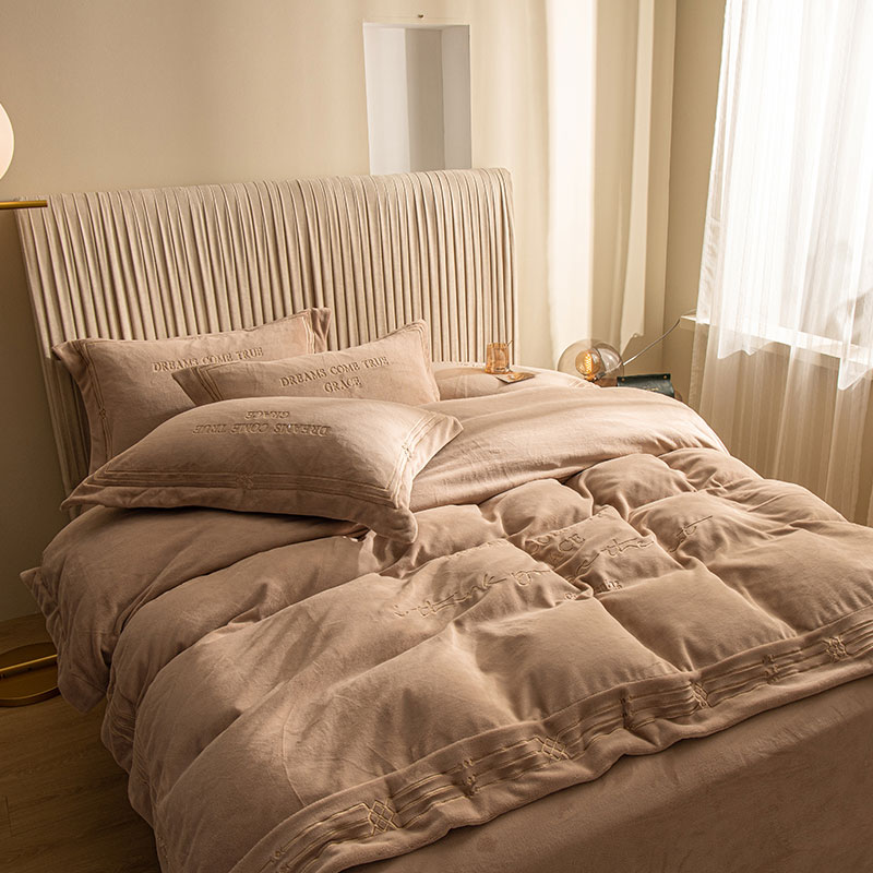 (总)米奈家居 2024新款A类牛奶雕花绒四件套-瑞丽,巴赫(卡其),巴赫(紫粉),花漾(淡雅粉),花漾(香槟),水墨(豆沙),水墨(卡其),邂逅(咖色),邂逅(绿色)