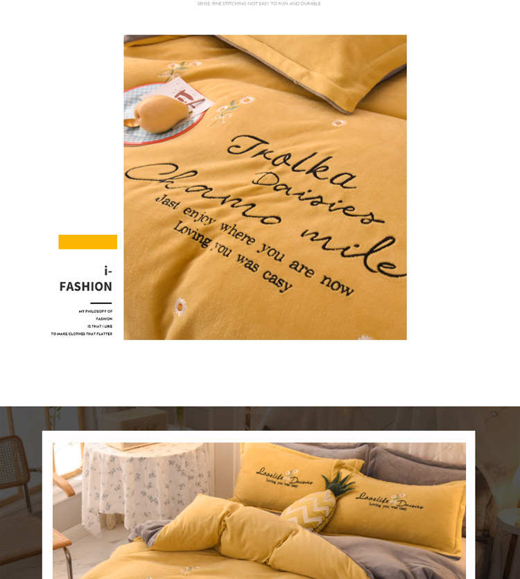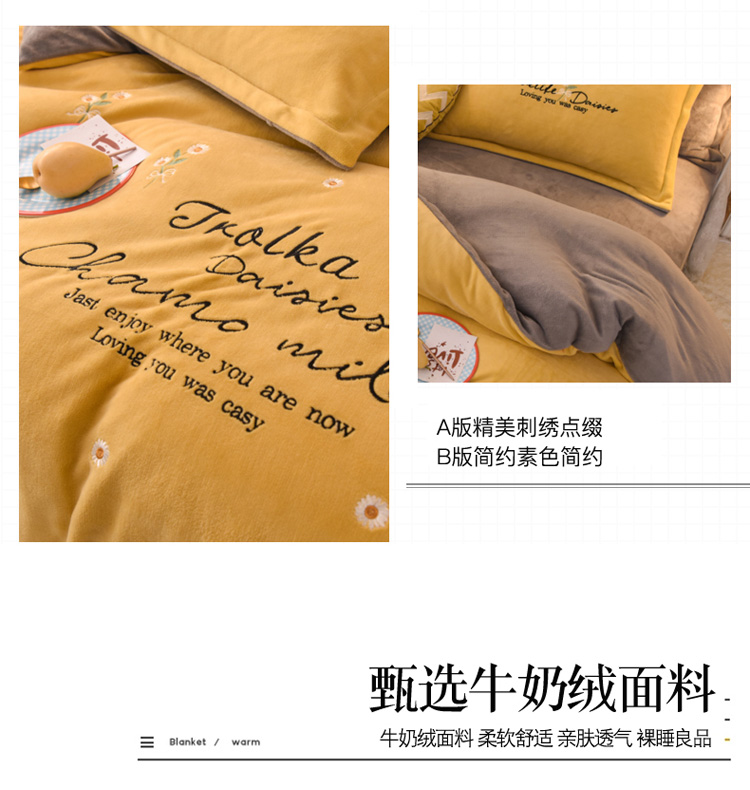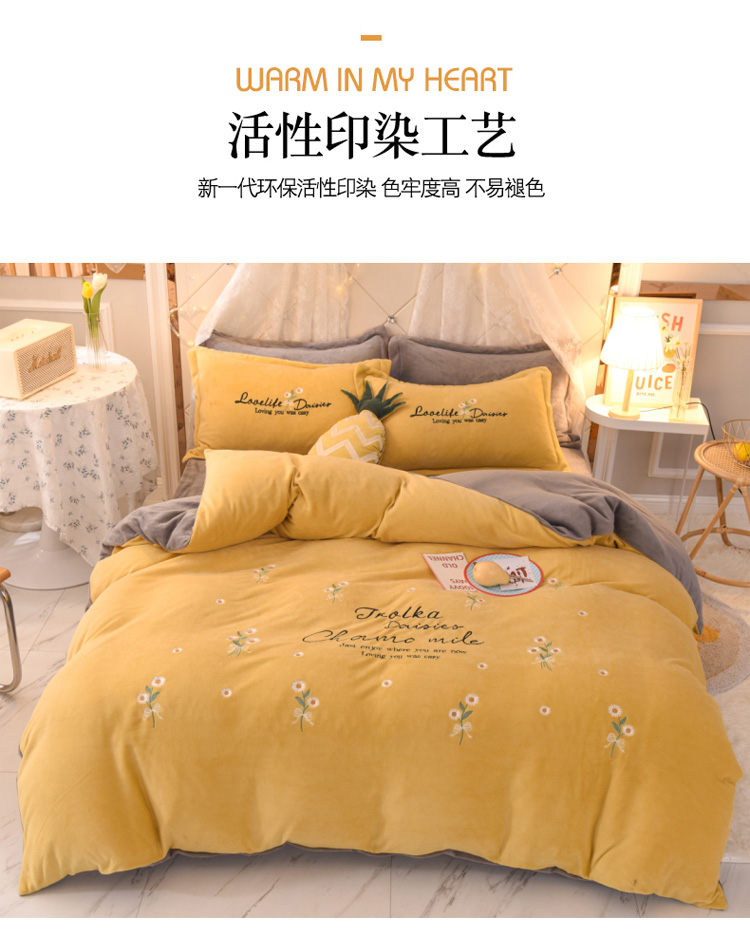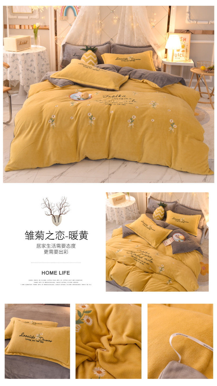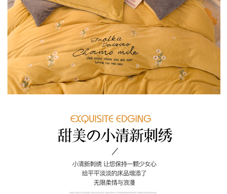 商品名称:捌月牛奶绒小清新刺绣四件套 雏菊之恋-暖黄
