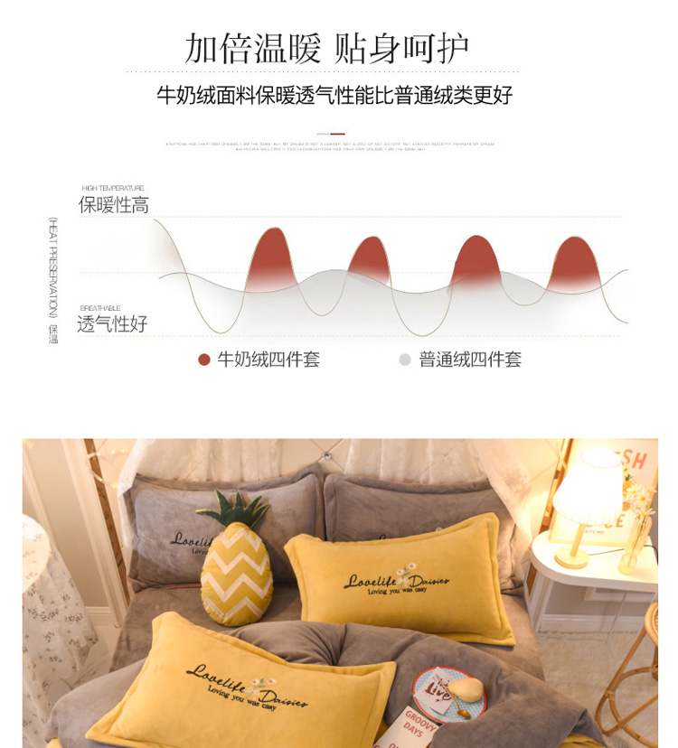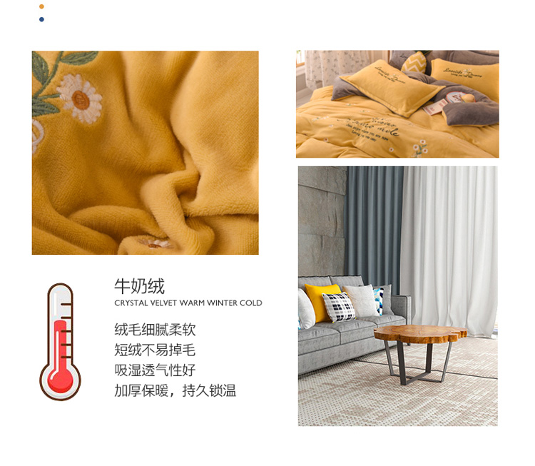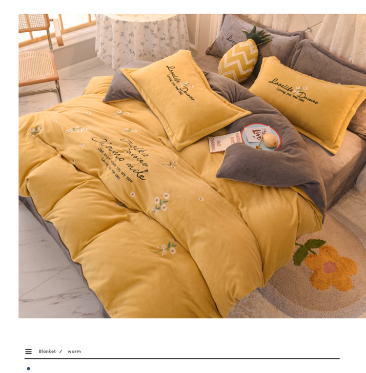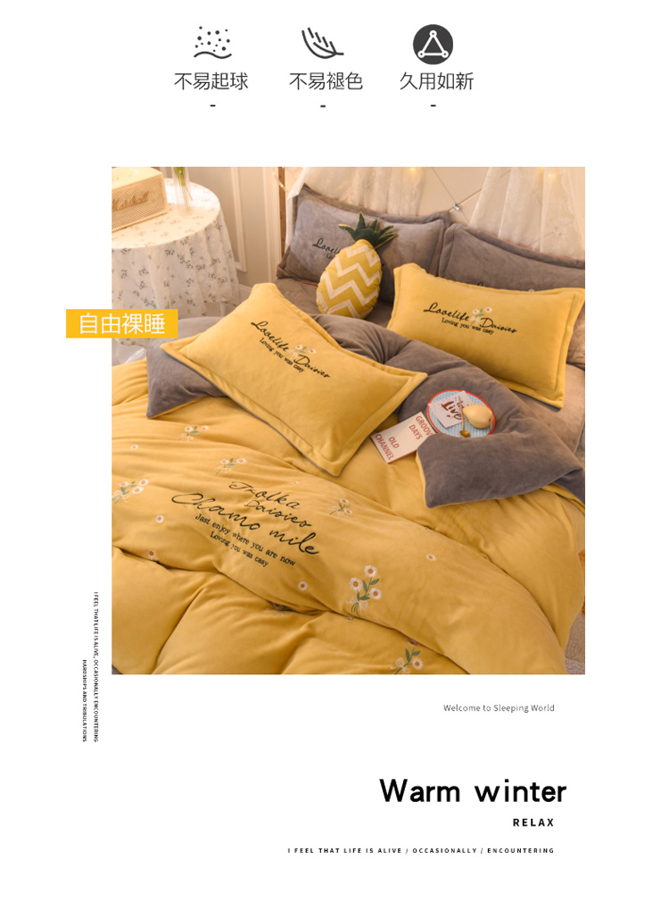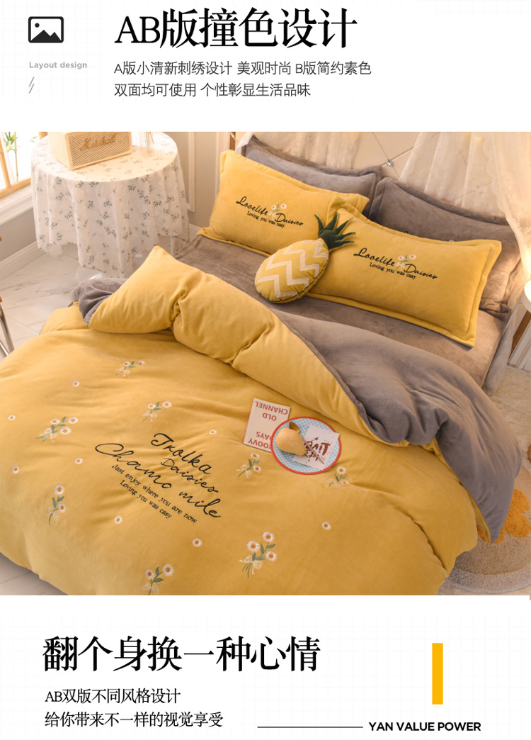 商品名称:捌月牛奶绒小清新刺绣四件套 雏菊之恋-暖黄