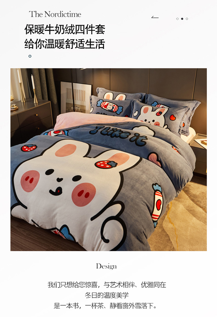 慕尚 2022新款北欧牛奶绒卡通大版四件套棚拍图 奶糖兔