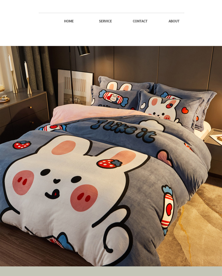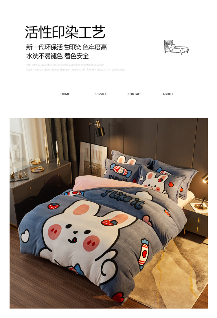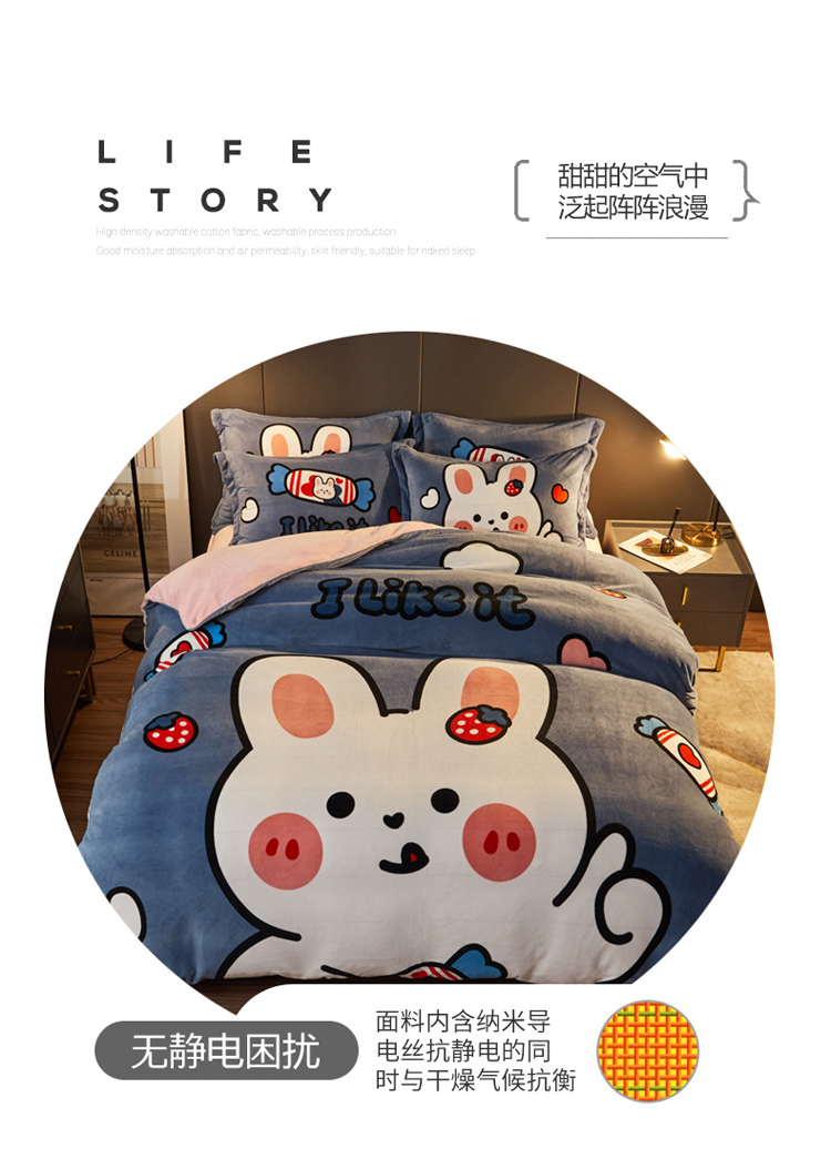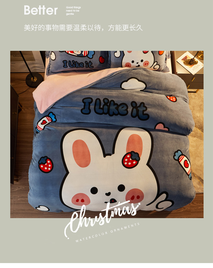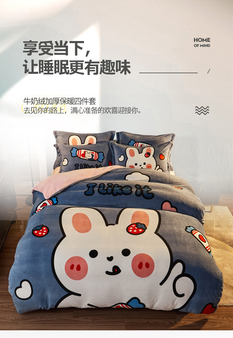 商品名称:慕尚 2022新款北欧牛奶绒卡通大版四件套棚拍图 奶糖兔