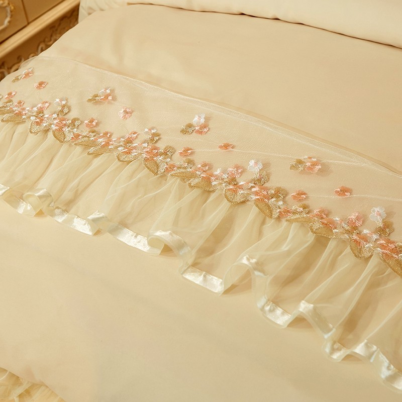(总)瑞宝 2025新款全消光牛奶绒床裙四件套-花期如梦,花期如梦-橙,花期如梦-蜜粉,花期如梦-青柠绿