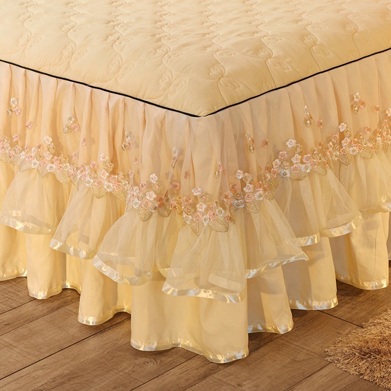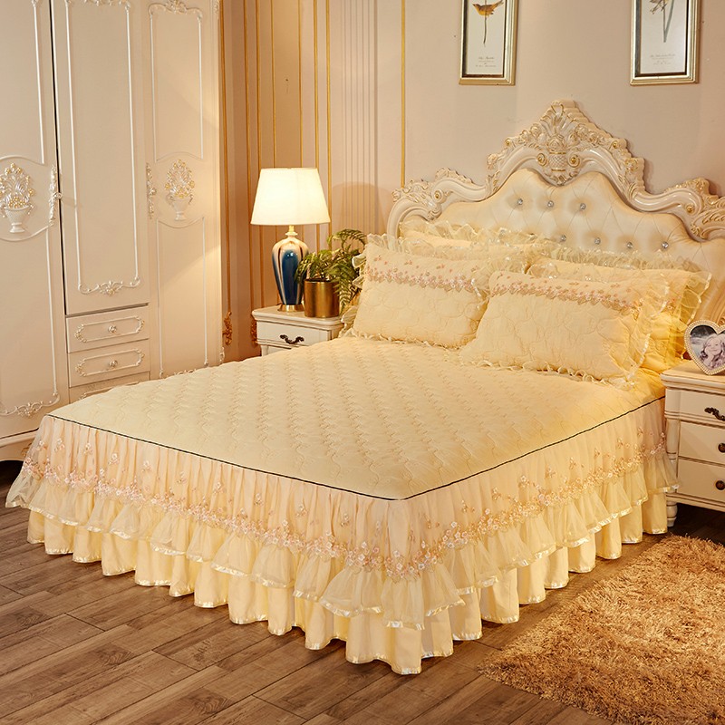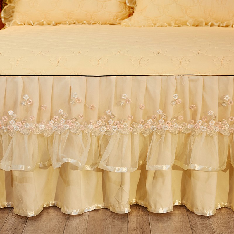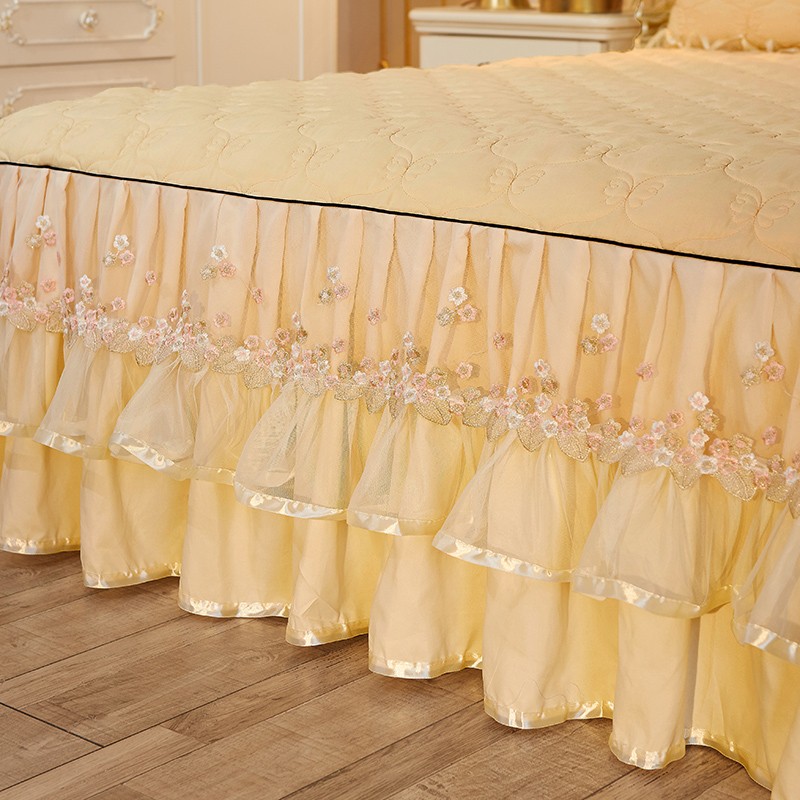 商品名称:瑞宝 2025新款夹棉加厚磨毛床裙梦恋系列床裙三件套 米白