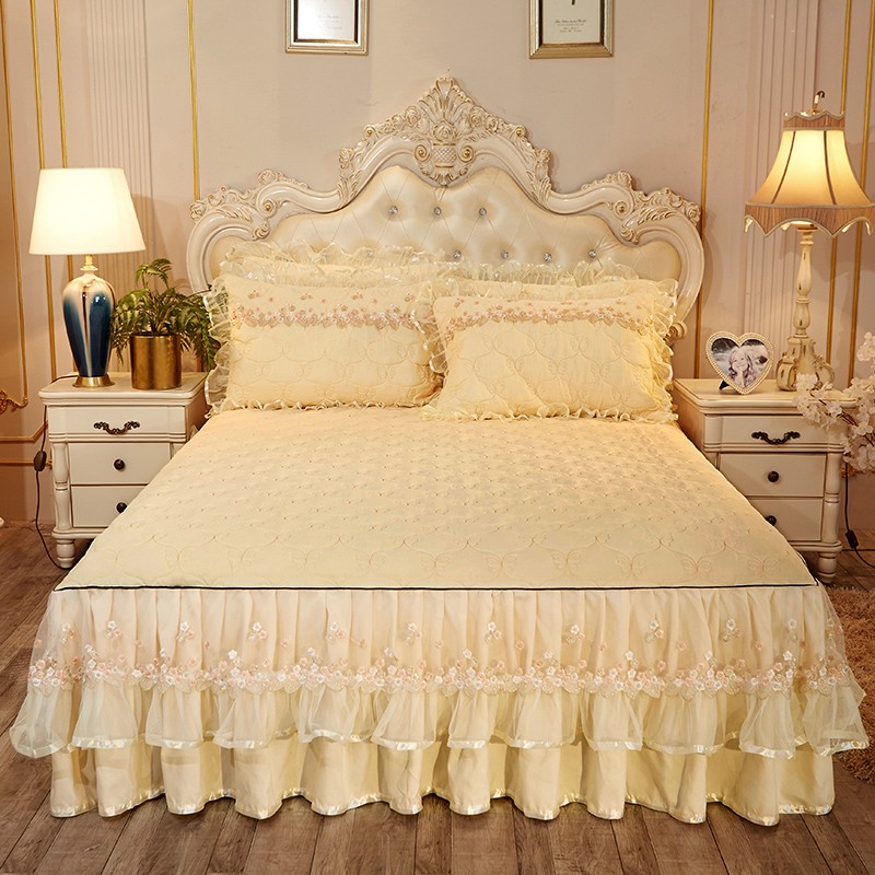 瑞宝 2025新款夹棉加厚磨毛床裙梦恋系列床裙三件套 米白