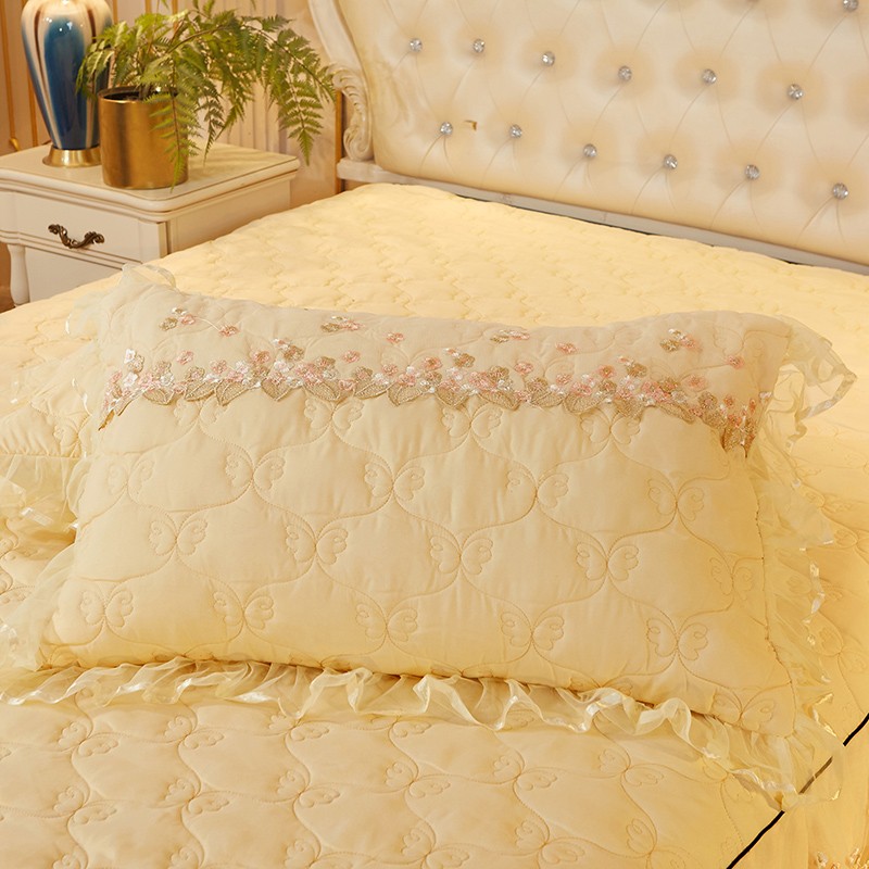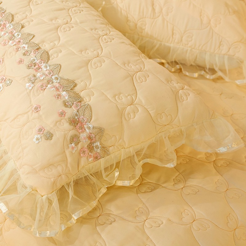(总)瑞宝 2025新款雕花牛奶绒花边夹棉床盖四件套-莫妮卡,奶昔白,抹茶绿,奶茶咖,少女粉,雾蓝