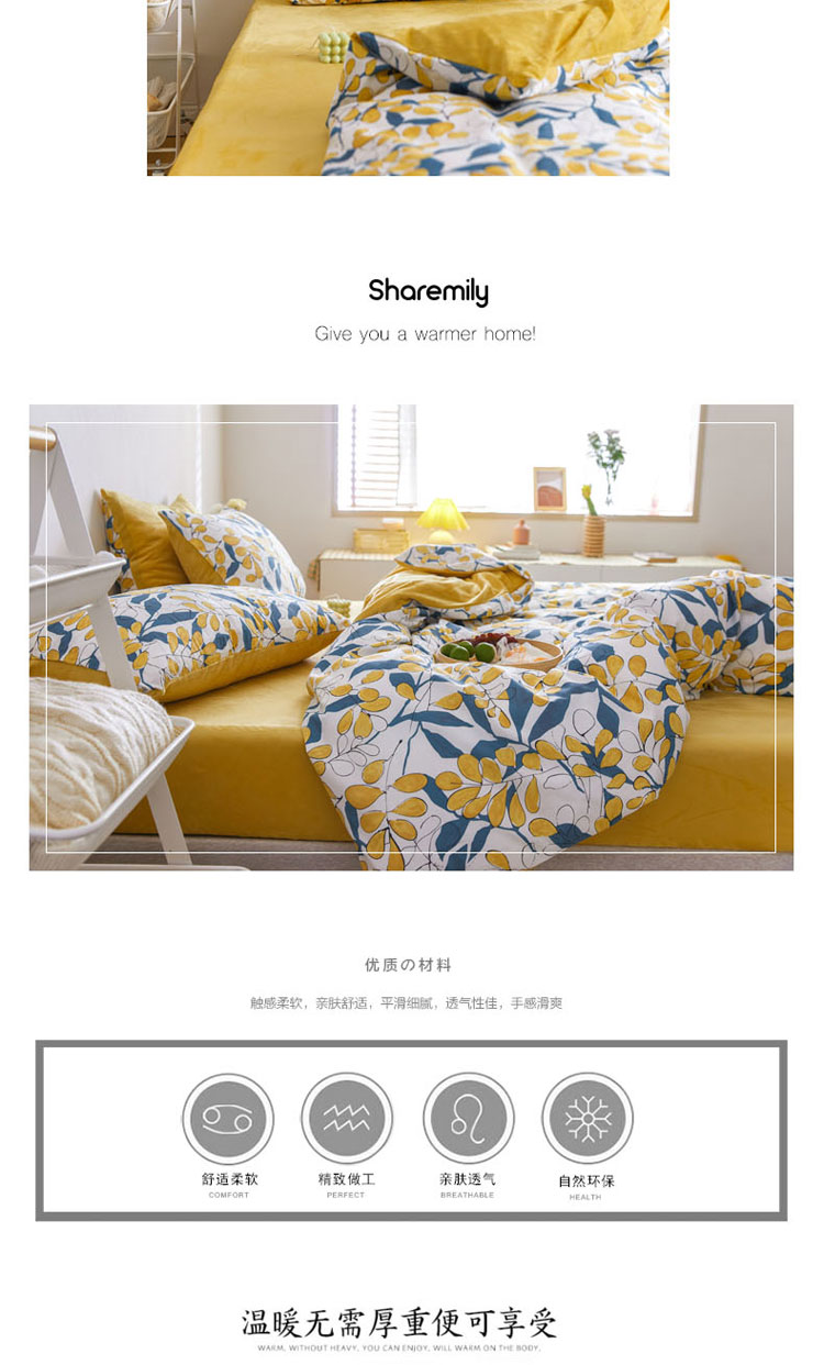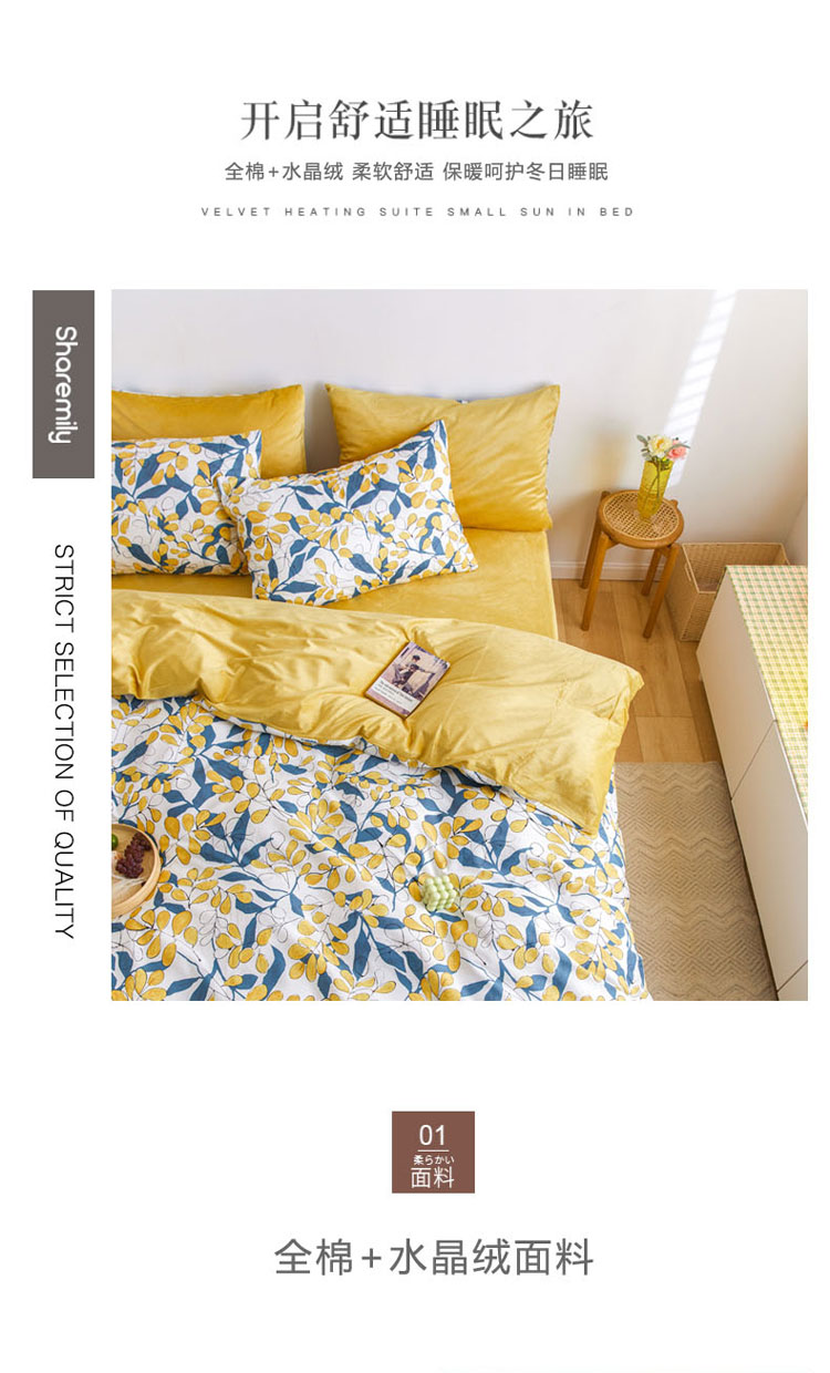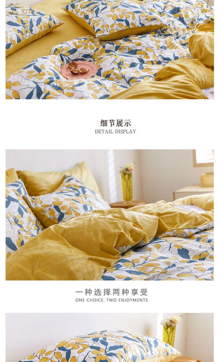 当前位置: 91家纺网 > 商品网购 > 床品套件 > 四件套 > 磨绒四件套 > 梦家居 2020新款秋冬A棉B绒四件套 硕果盈枝绒
