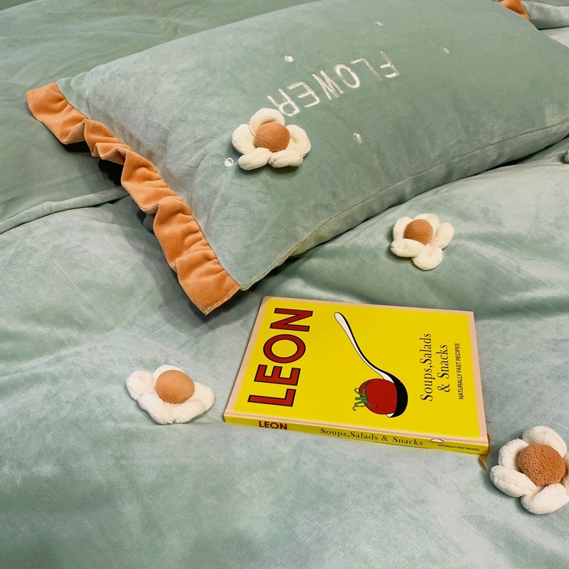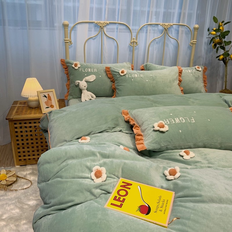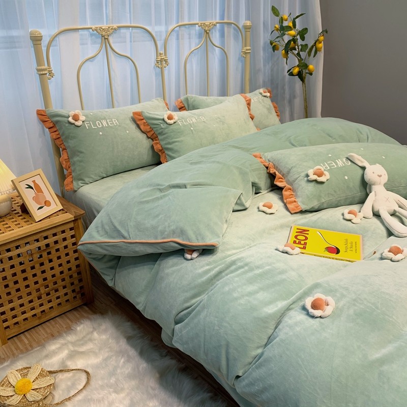 馨蕊家居 2021新款秋冬轻奢煦暖绒四件套 那时花开-浅绿