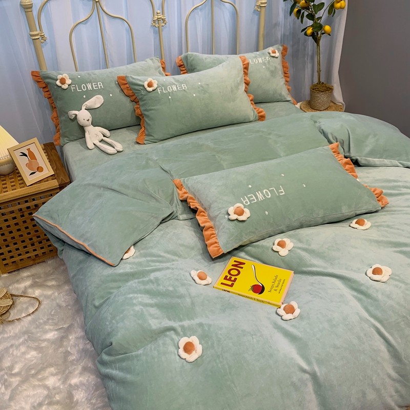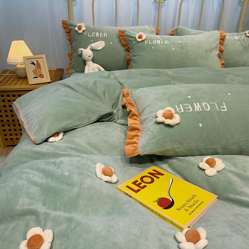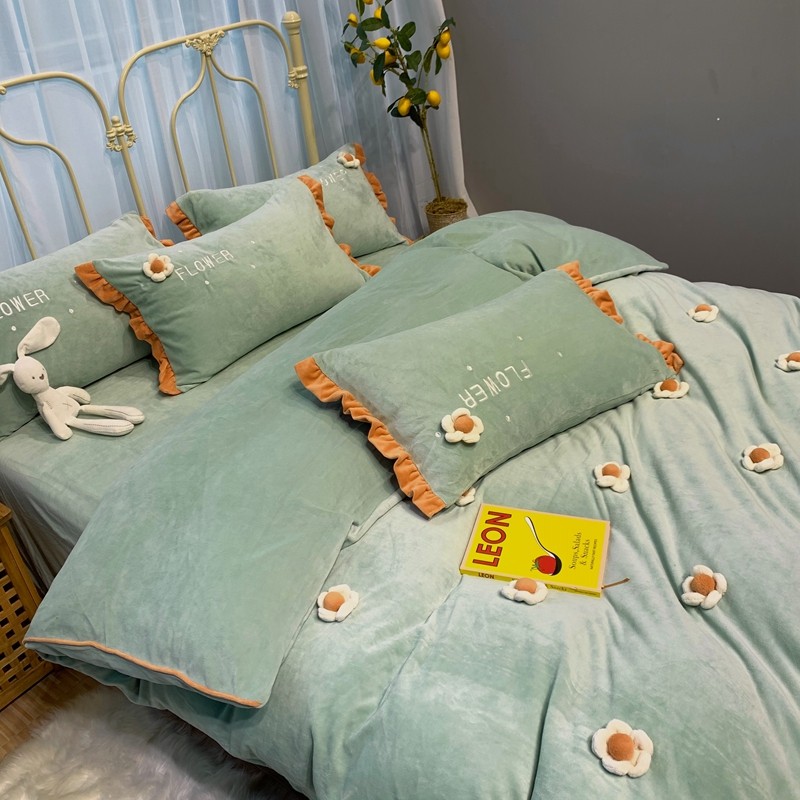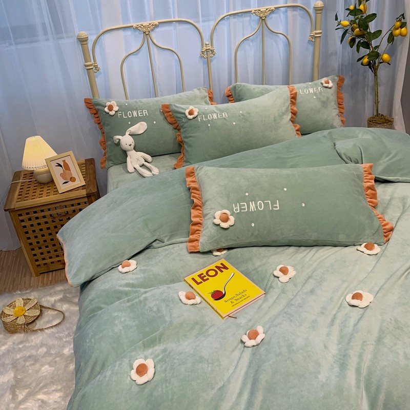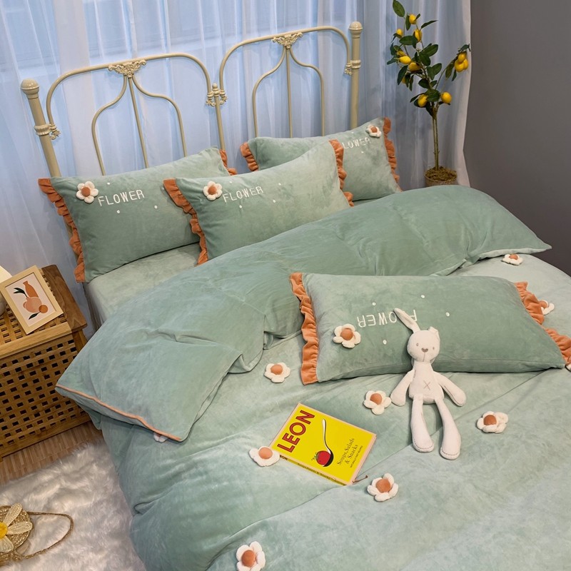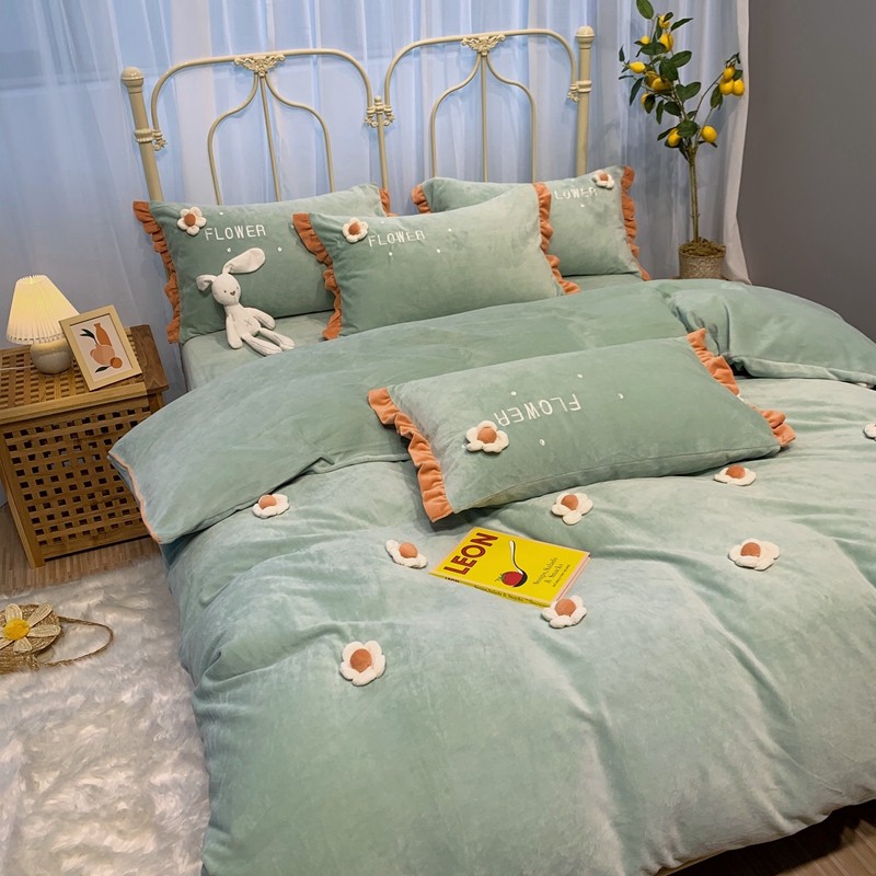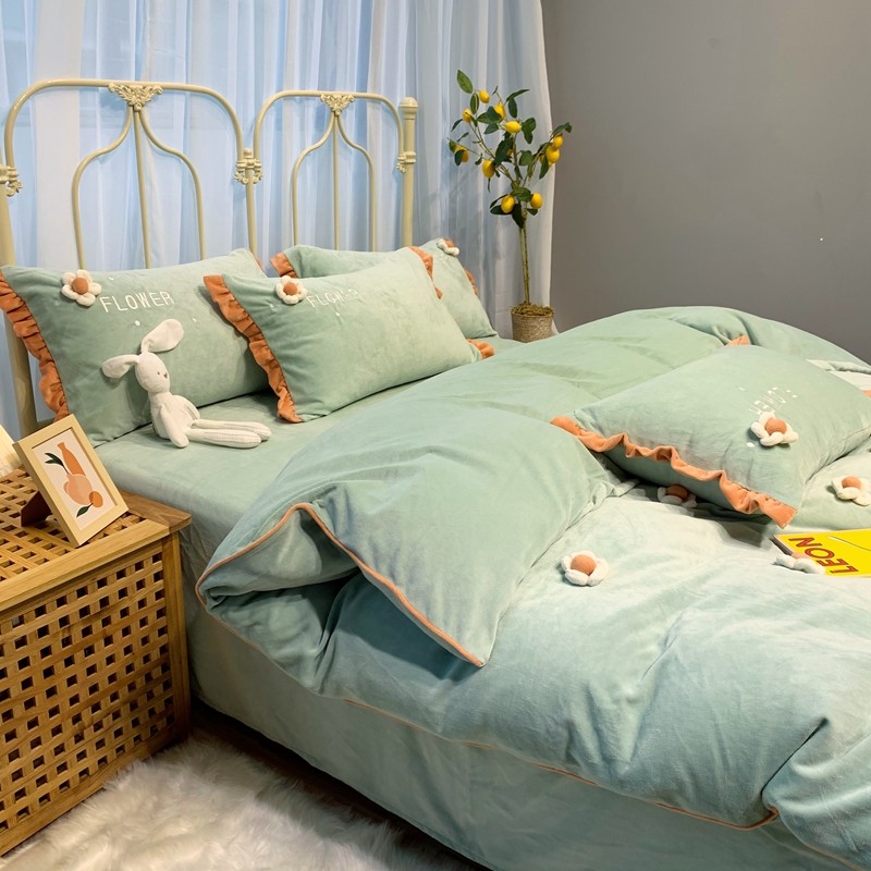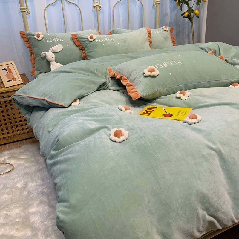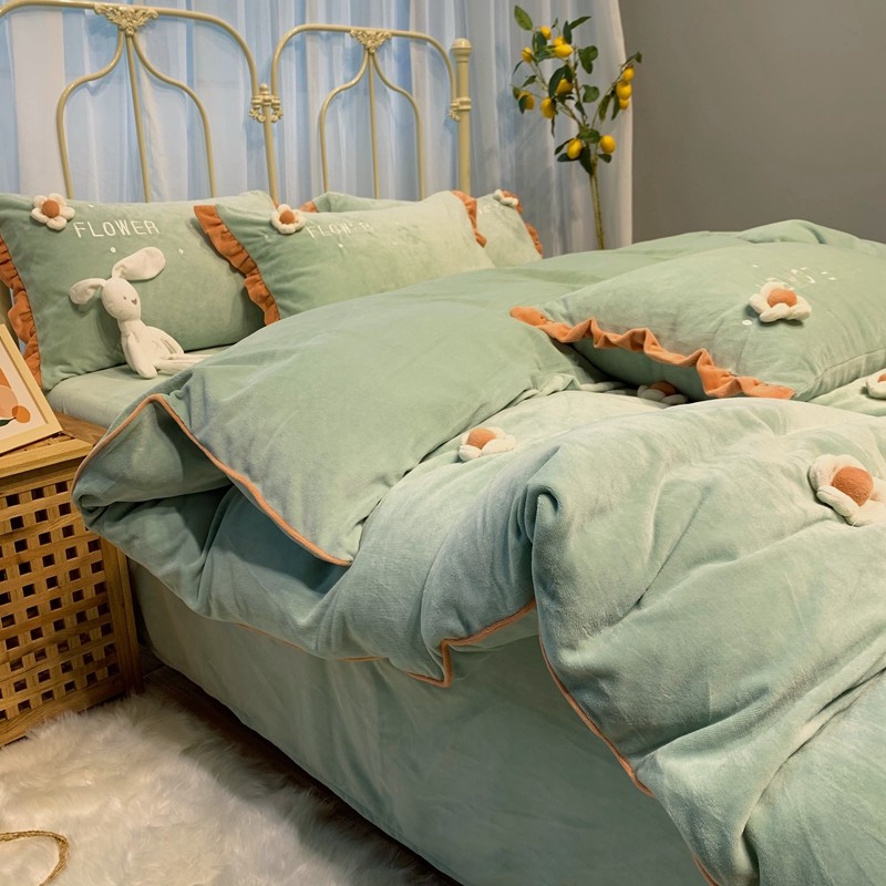 商品名称:馨蕊家居 2021新款秋冬轻奢煦暖绒四件套 那时花开-浅绿