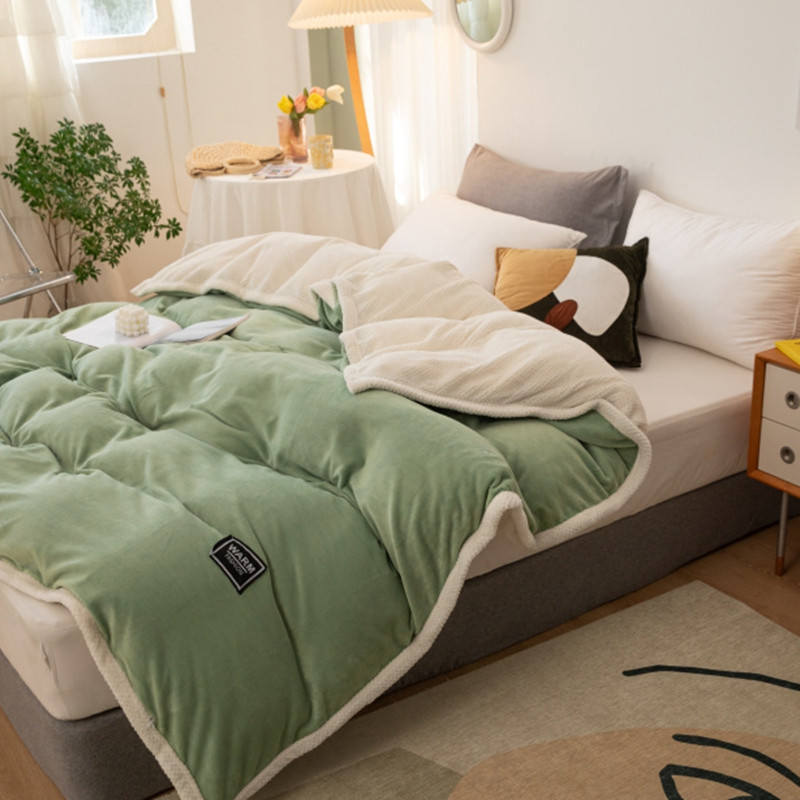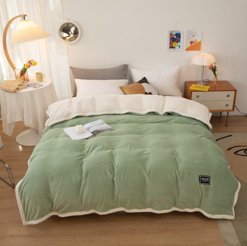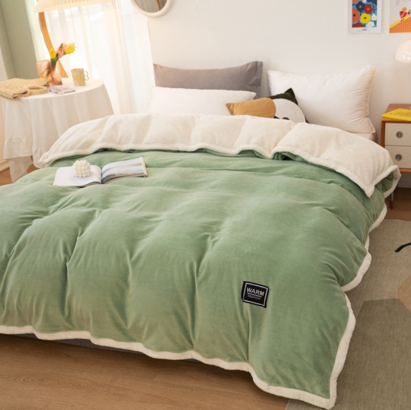 棉生活 2020新款纯色多功能加厚牛奶绒贝贝绒被套毯 草绿
