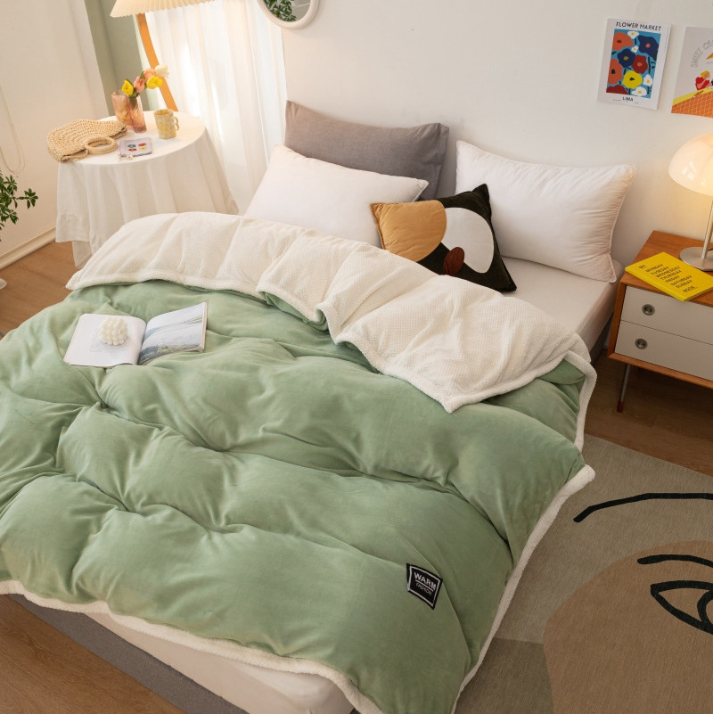 商品名称:棉生活 2020新款纯色多功能加厚牛奶绒贝贝绒被套毯 草绿