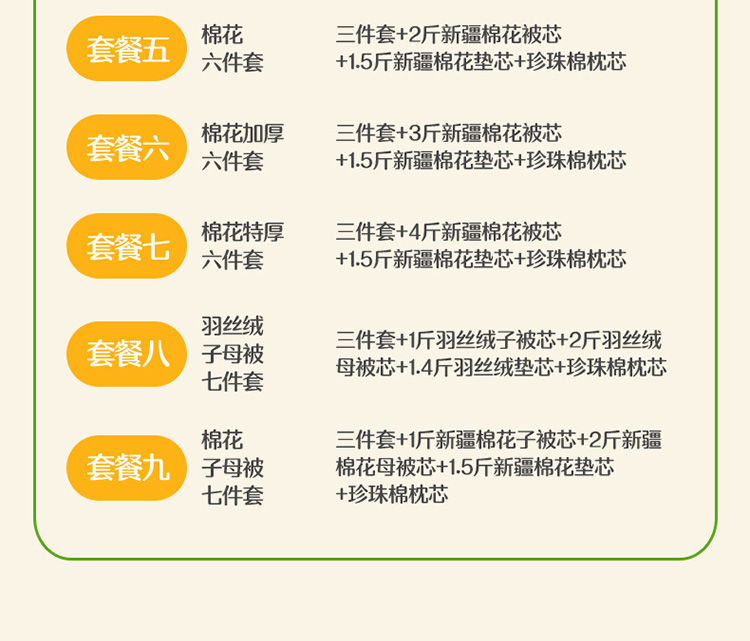 夏季款1斤棉花款六件套(包布)(夹棉款)