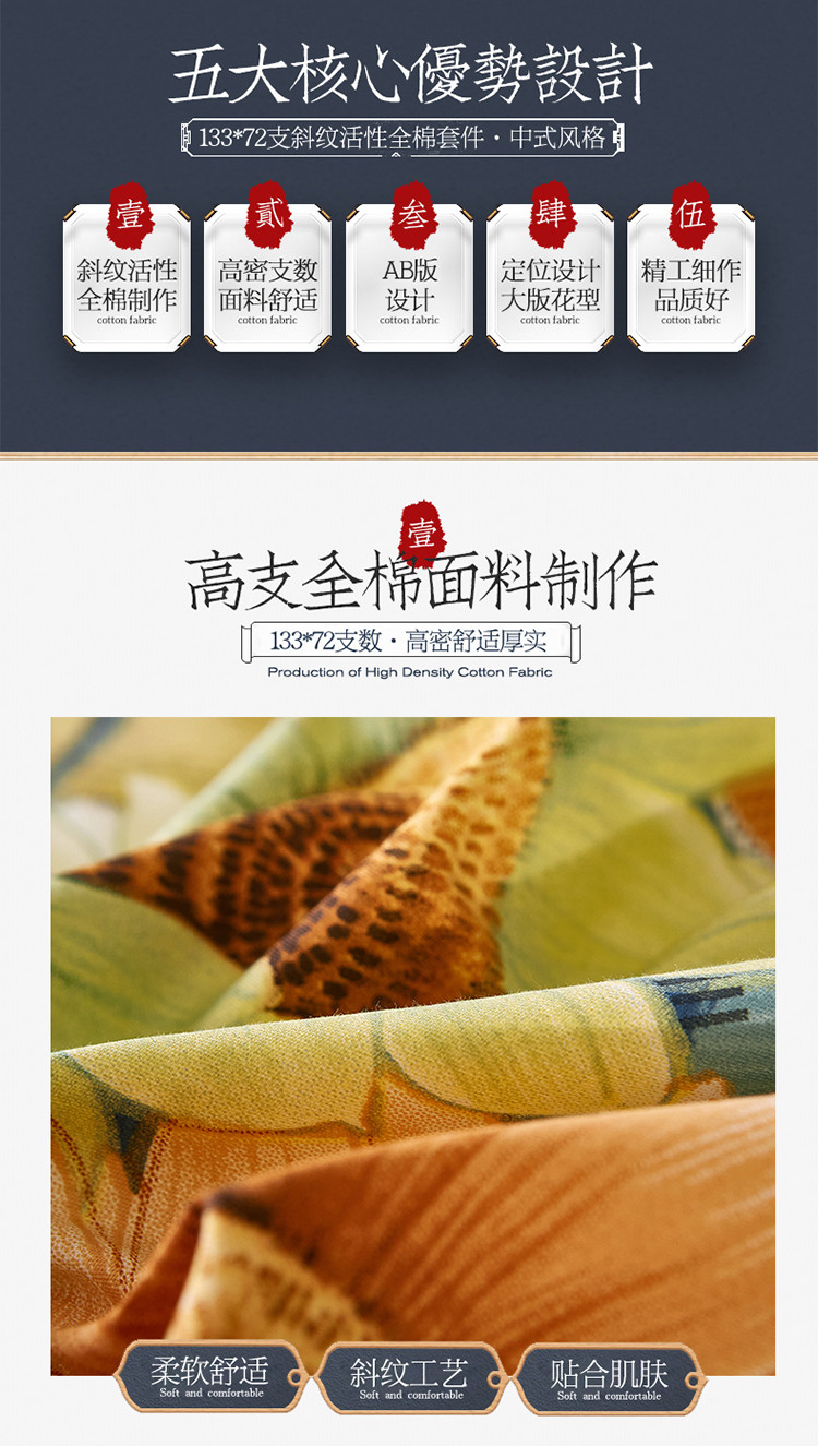 商品名称:雲归梦 2021全棉大版四件套中国风花卉 冬日暖阳