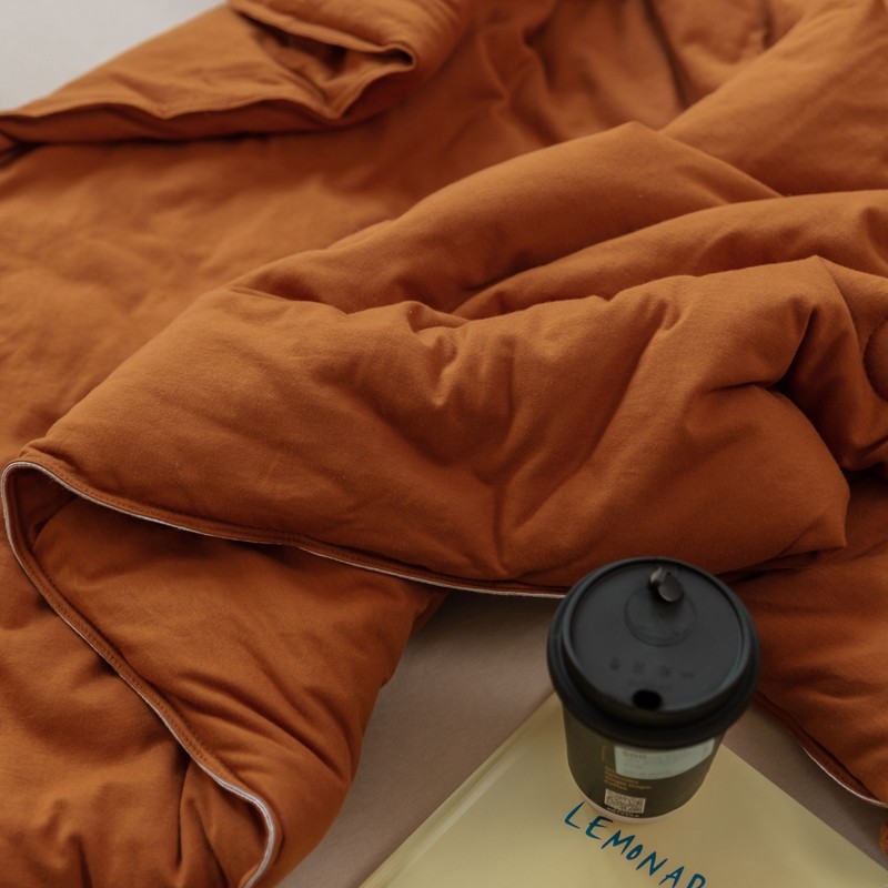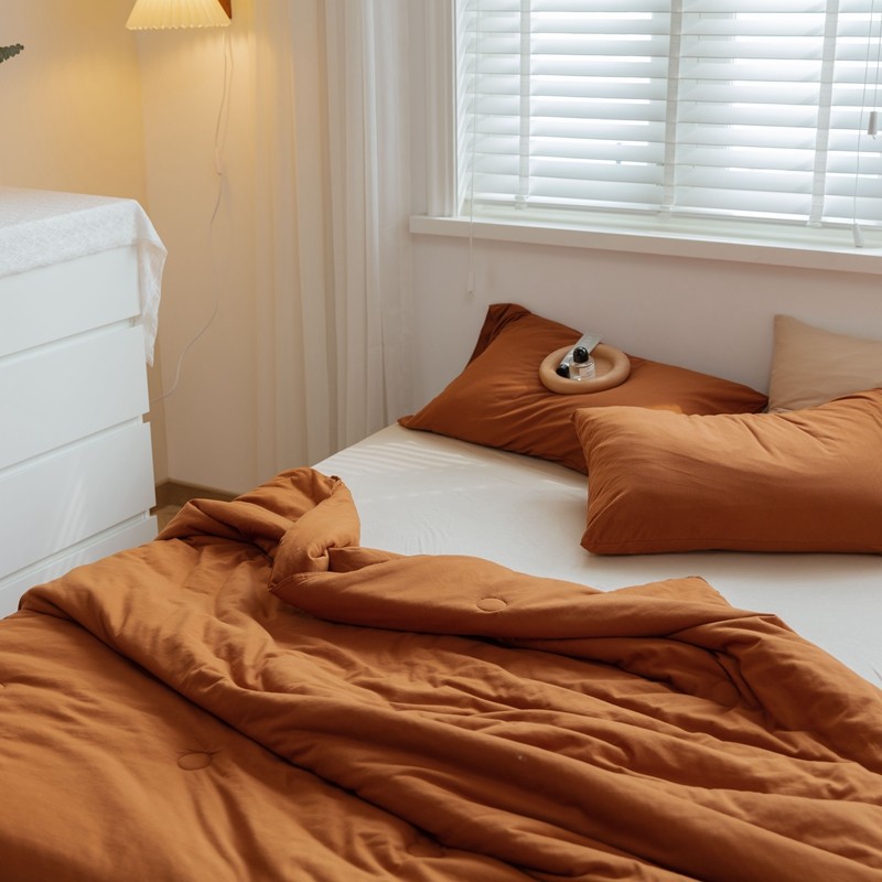 商品名称:寐眠 2021新款纯色条纹针织棉夏被 焦糖色