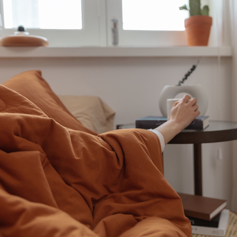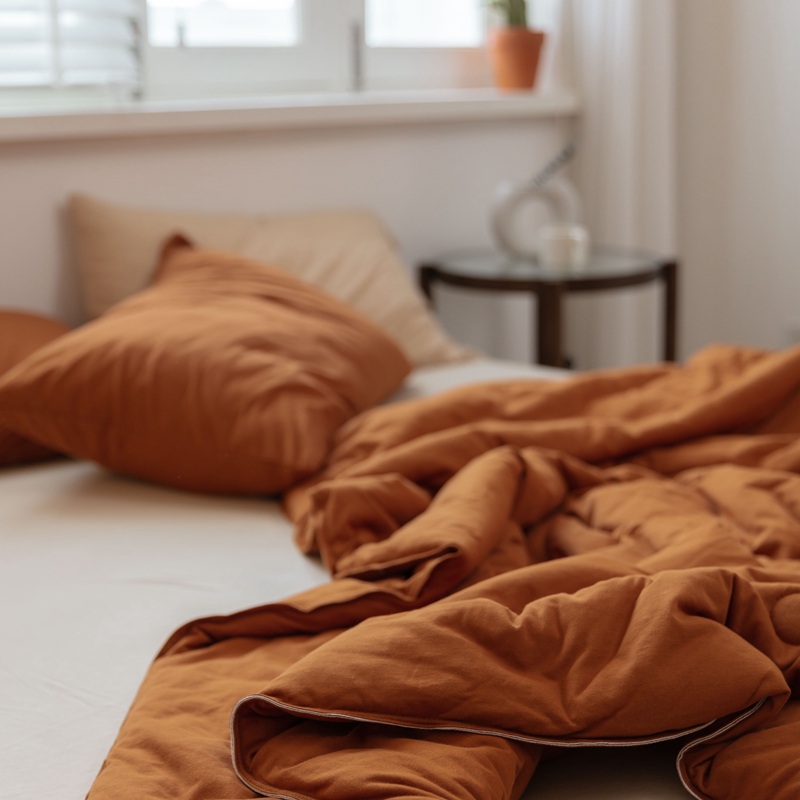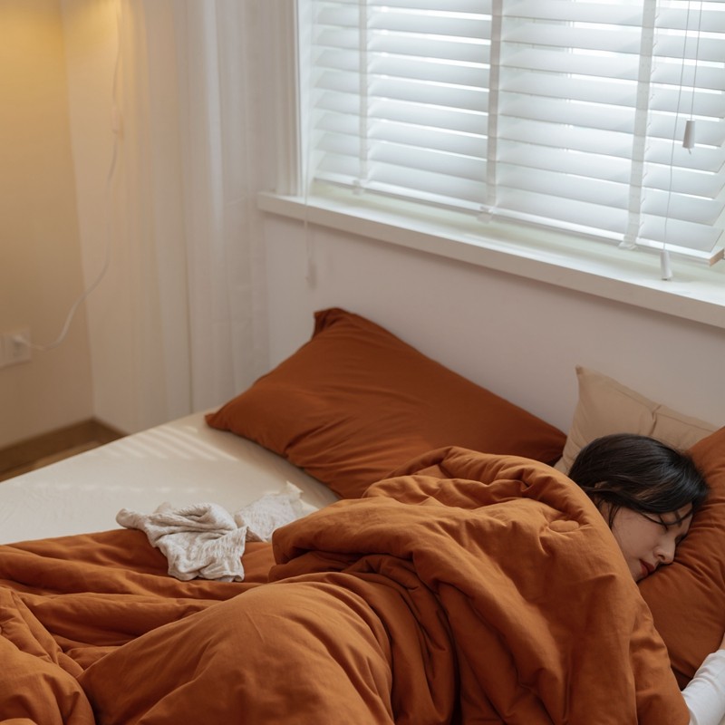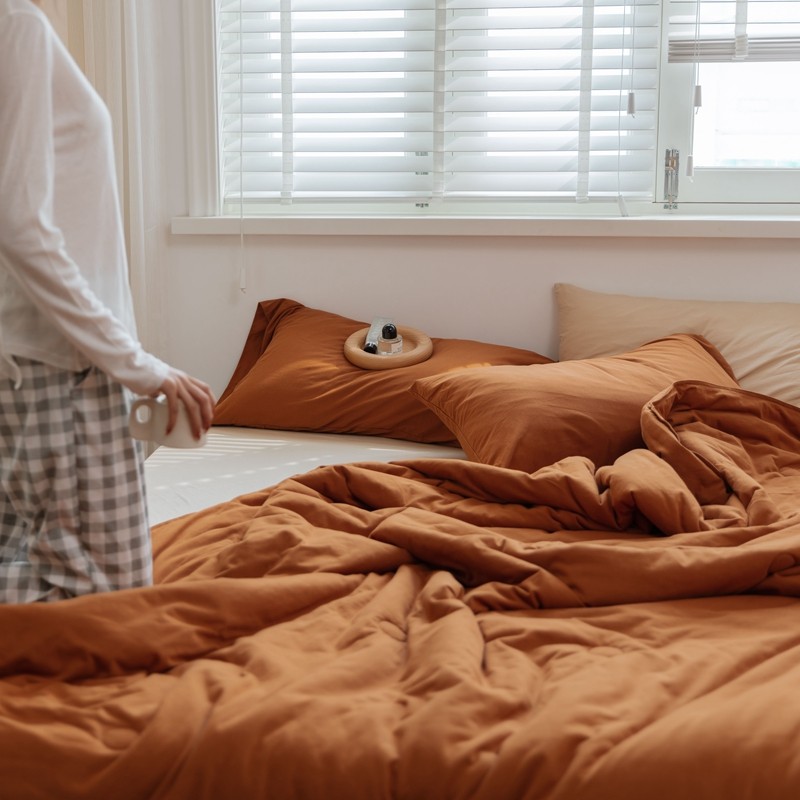寐眠 2021新款纯色条纹针织棉夏被 焦糖色