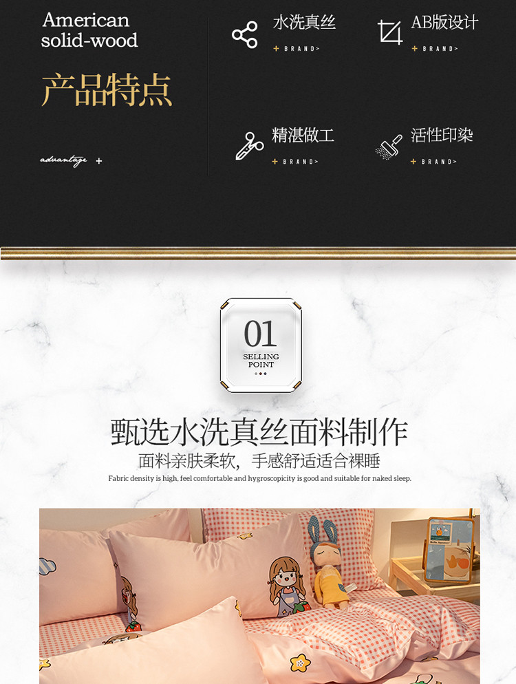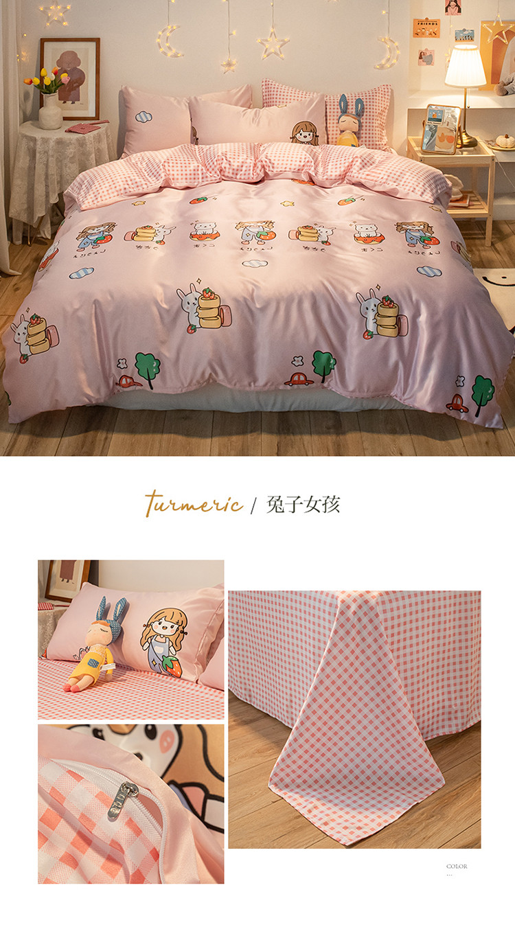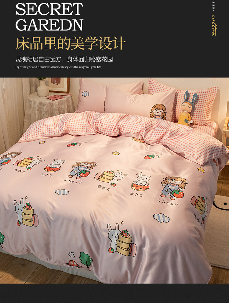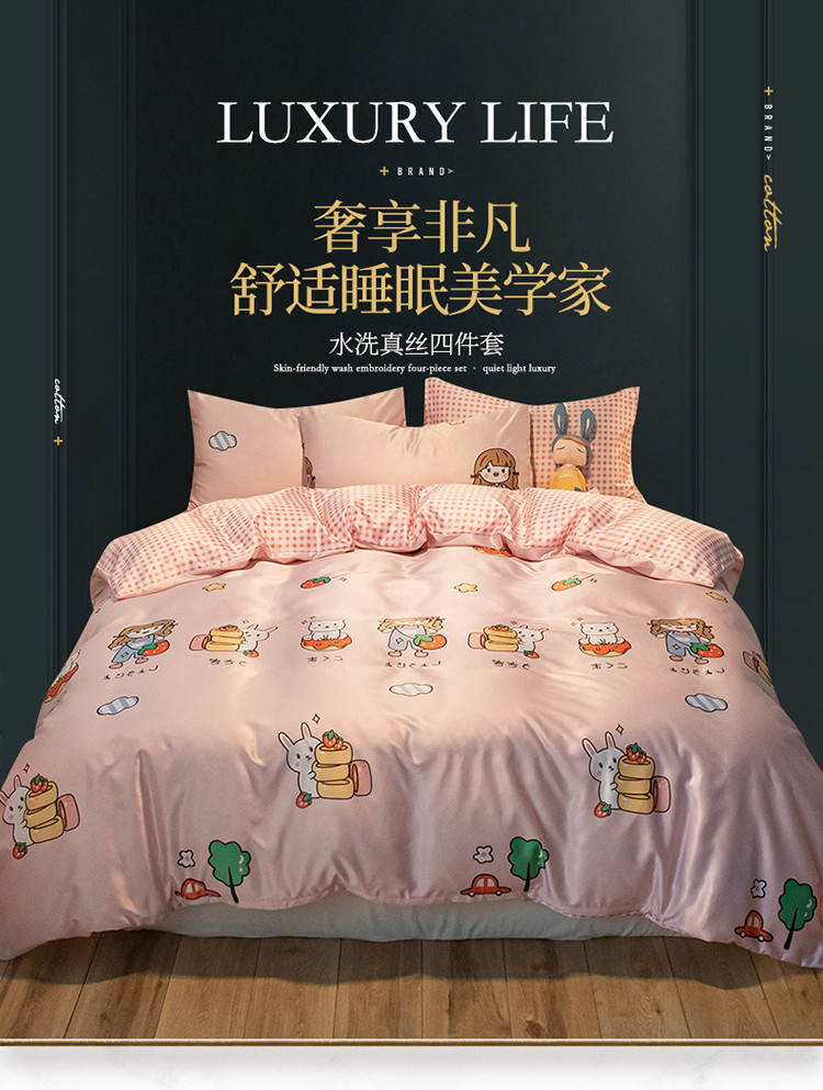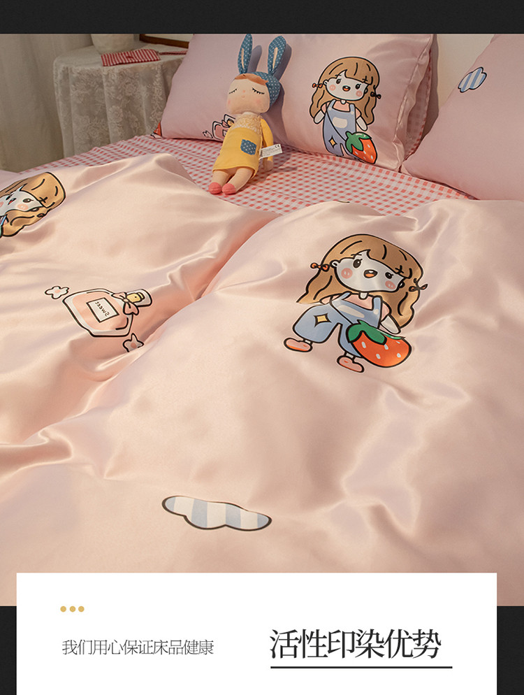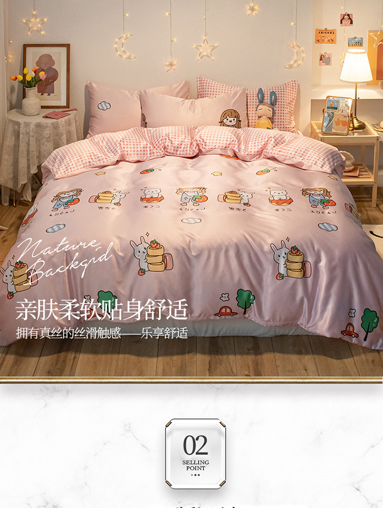 商品名称:琪格格纺织 2022新款水洗真丝印花四件套 兔子女孩