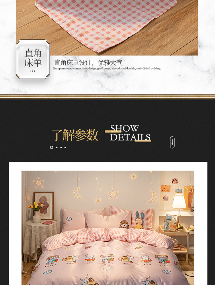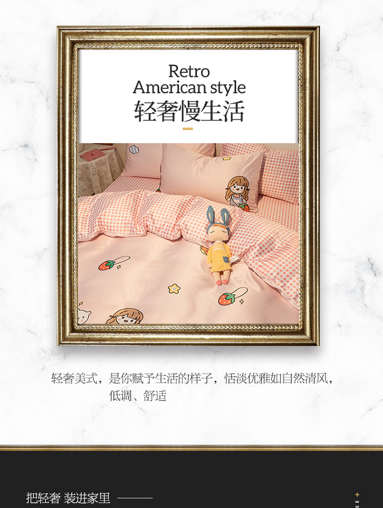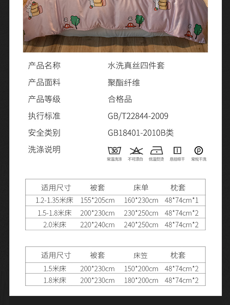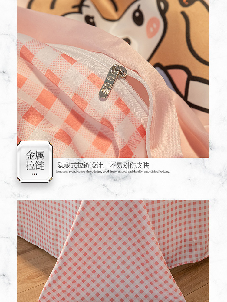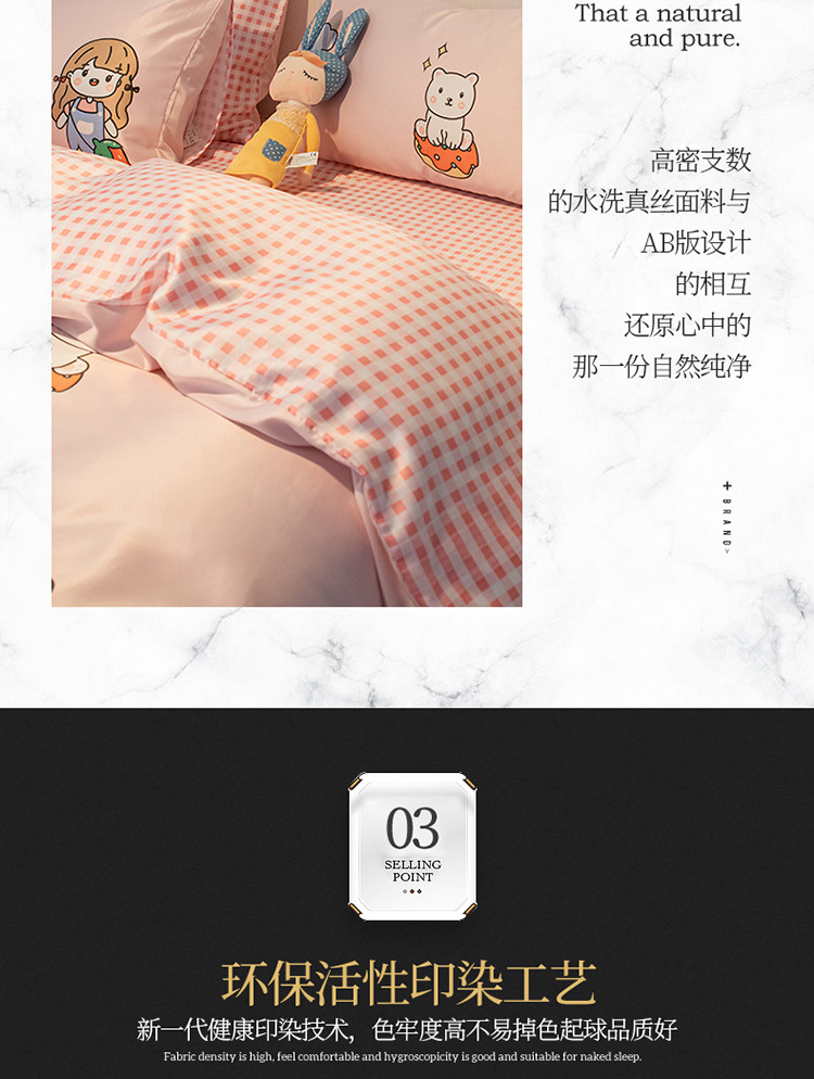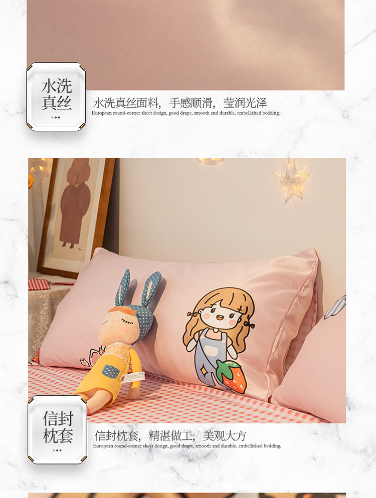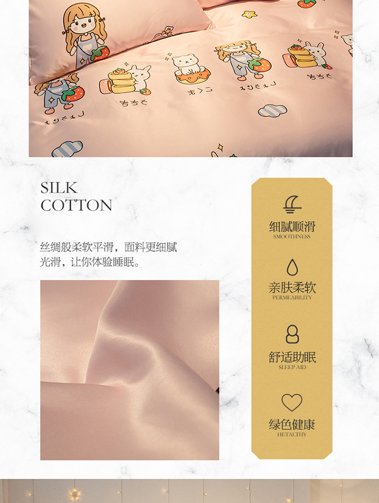 商品名称:琪格格纺织 2022新款水洗真丝印花四件套 兔子女孩