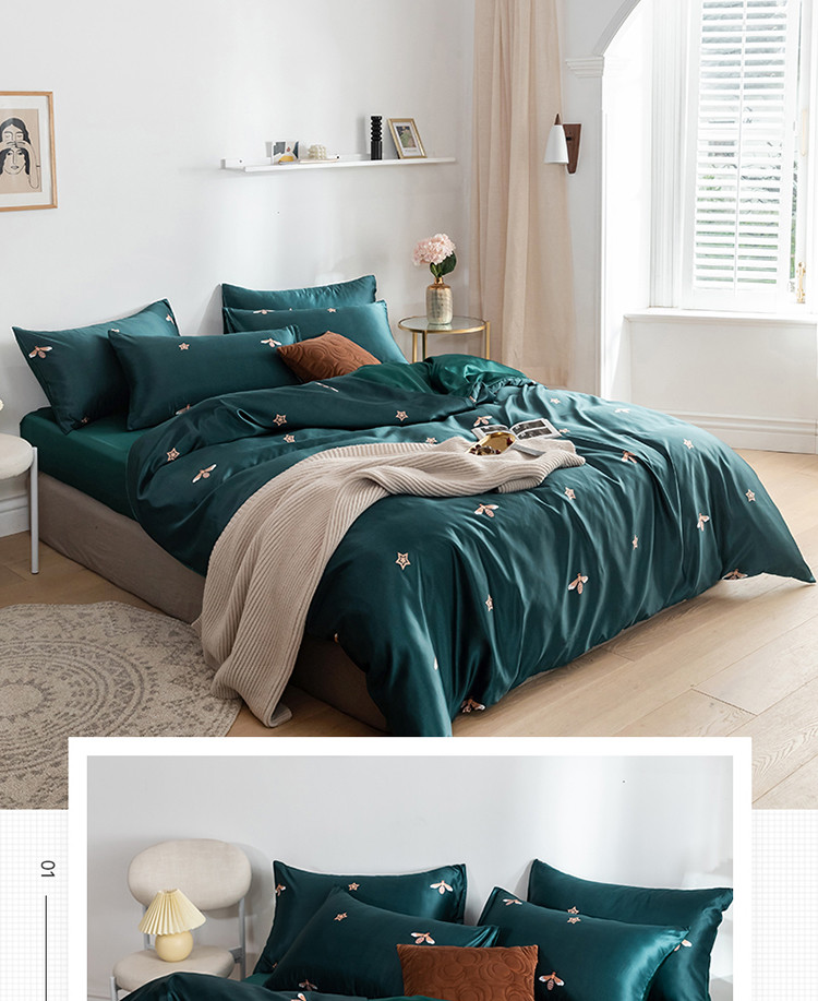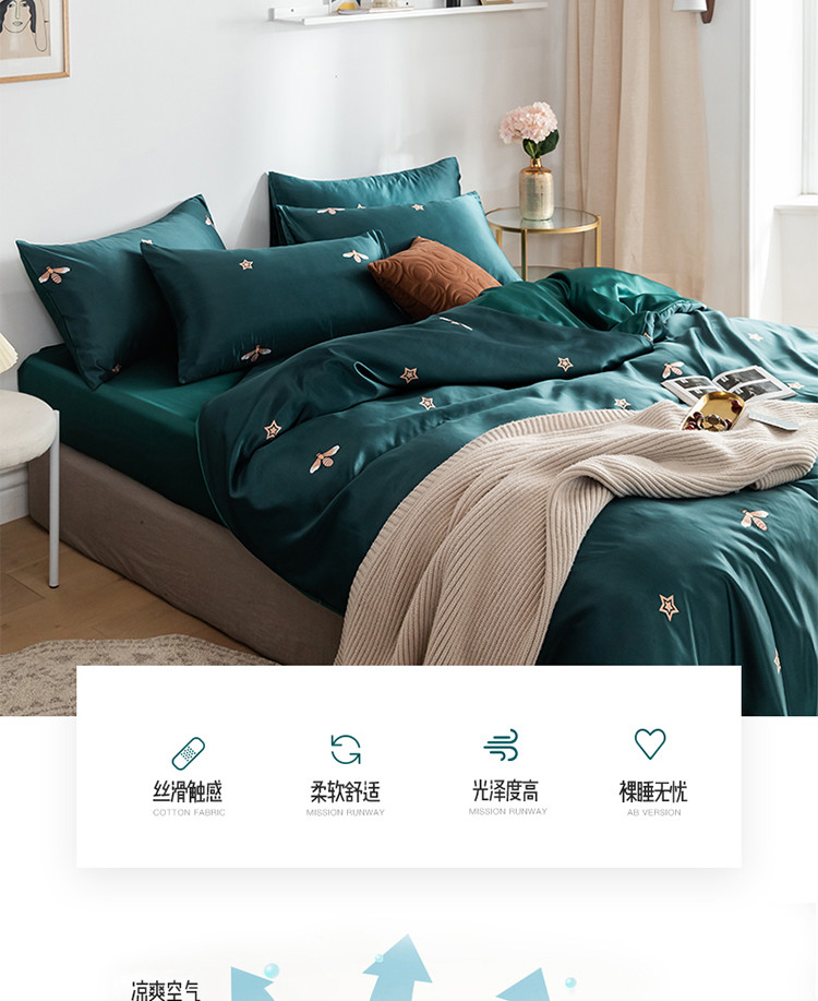 商品名称:琪格格纺织 2022新款水洗真丝印花四件套 小蜜蜂