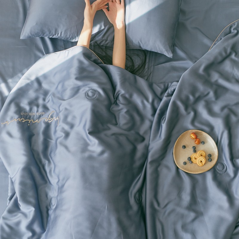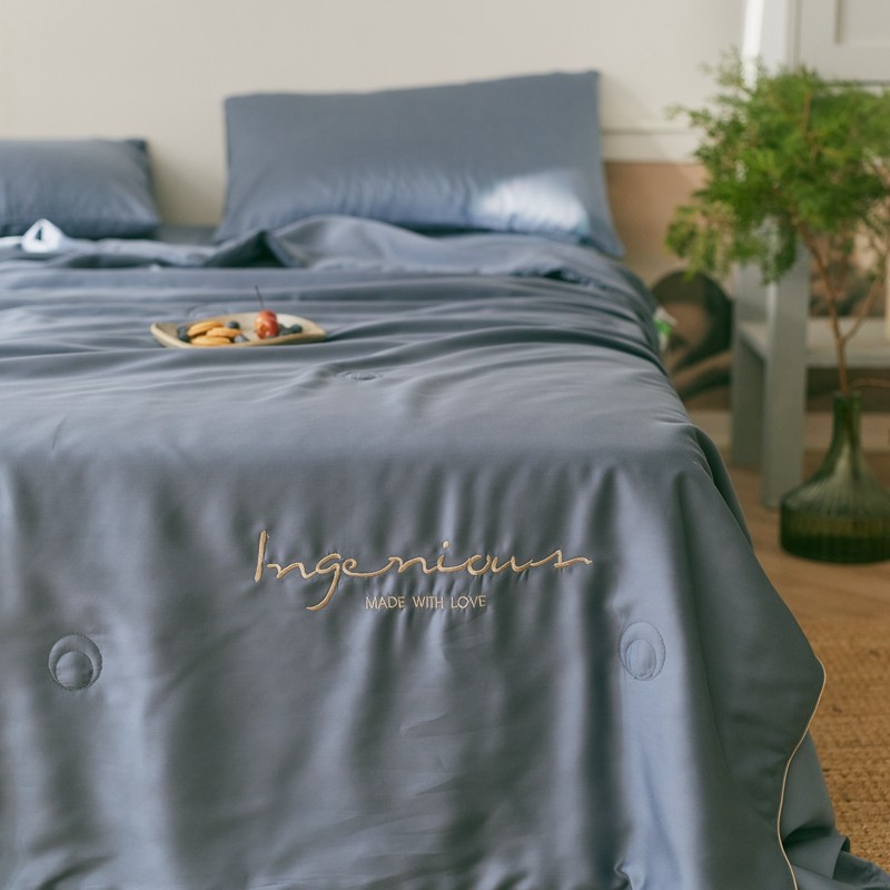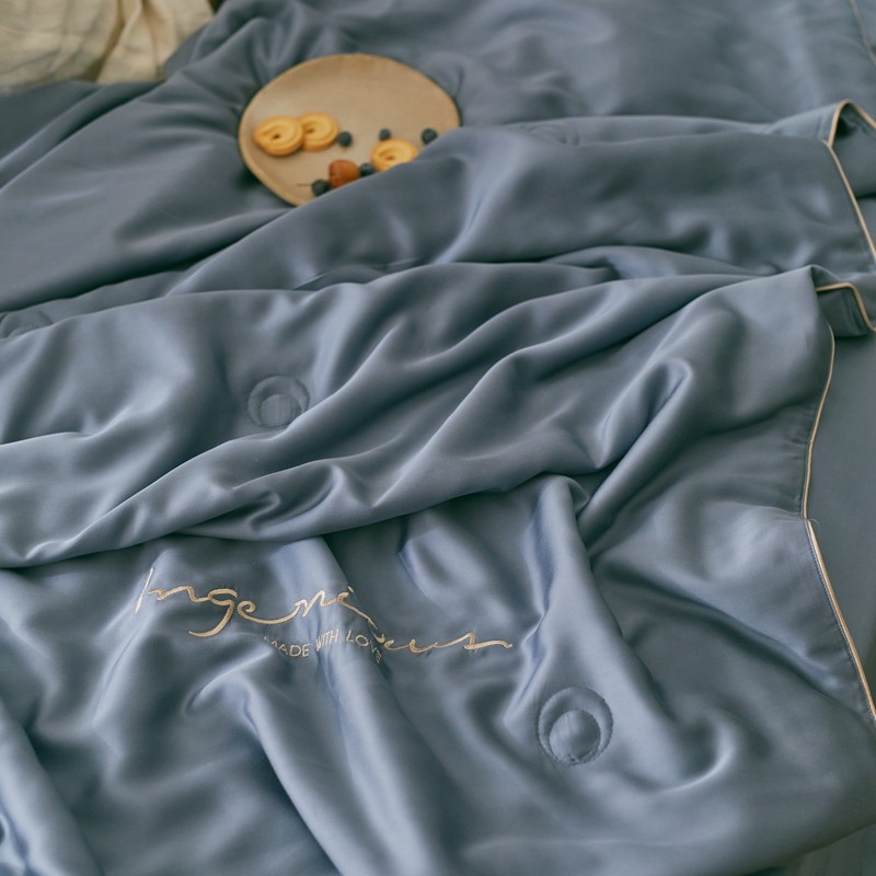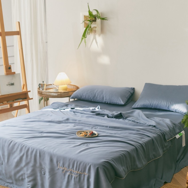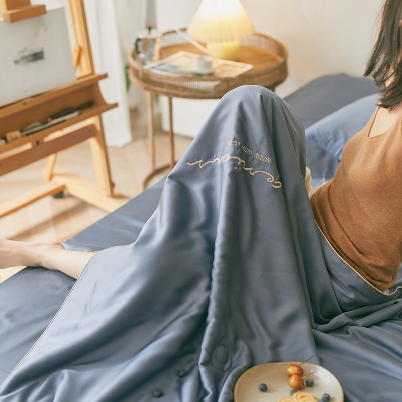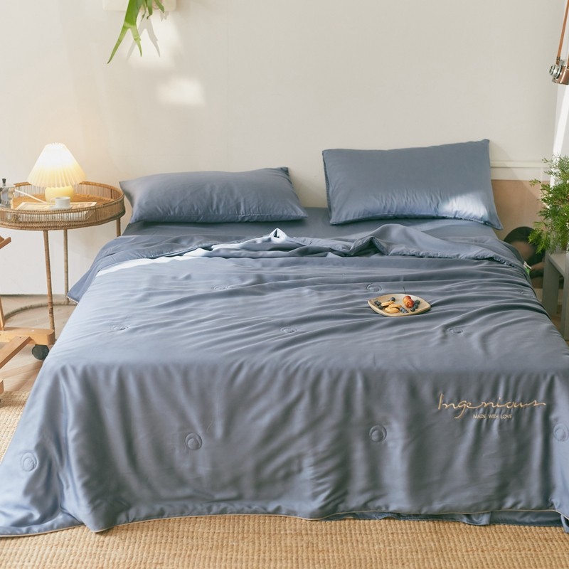 丽笙 2021新款60兰精天丝素色刺绣系列夏被 简朴蓝
