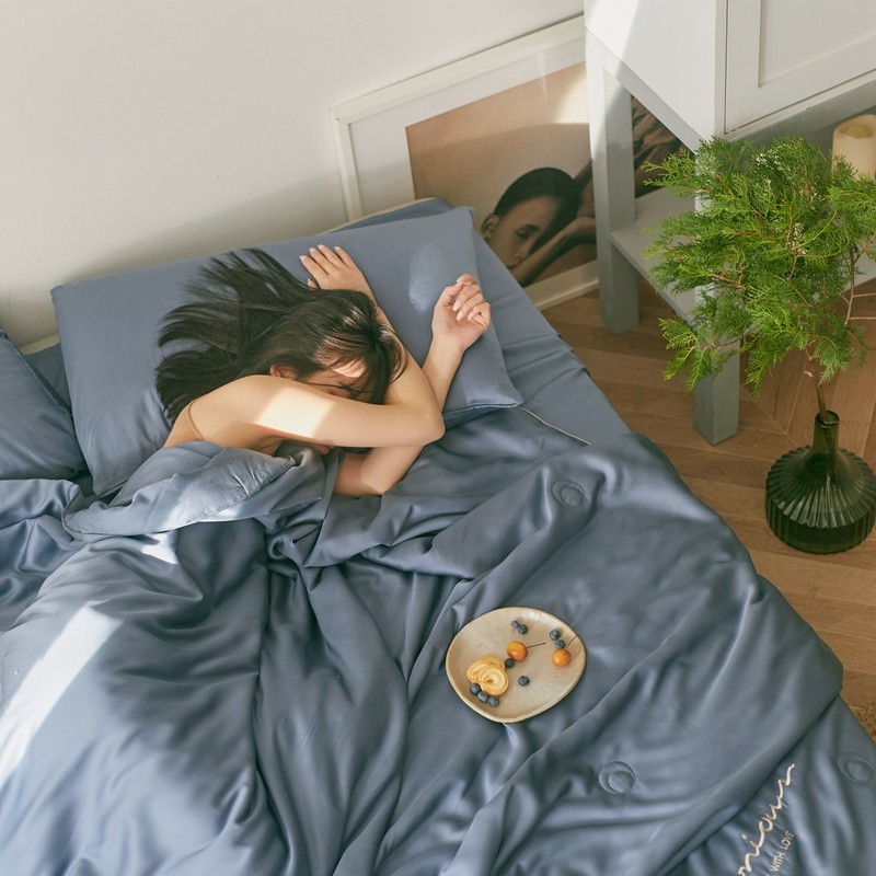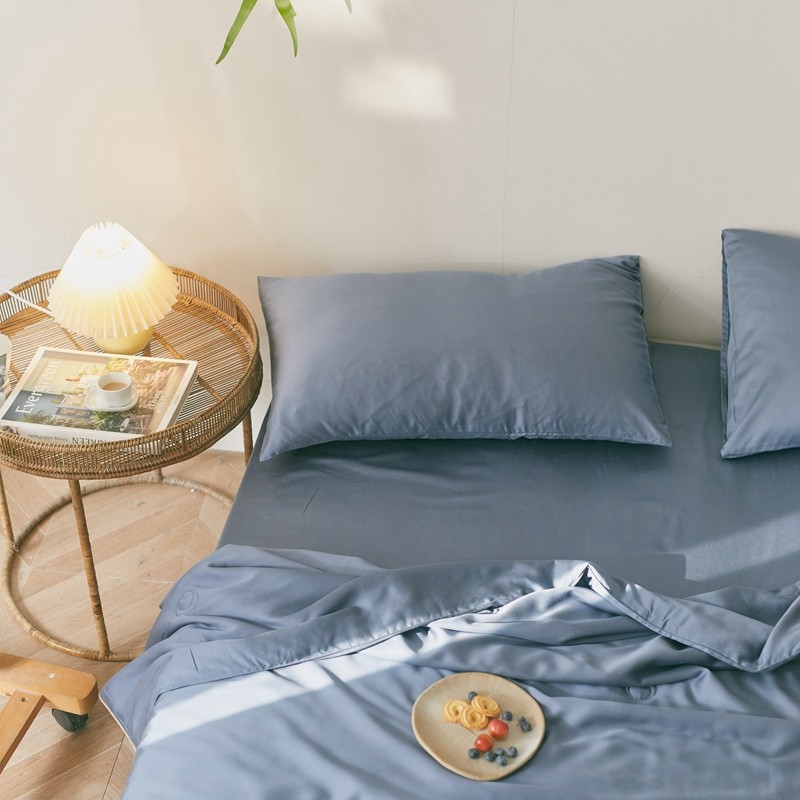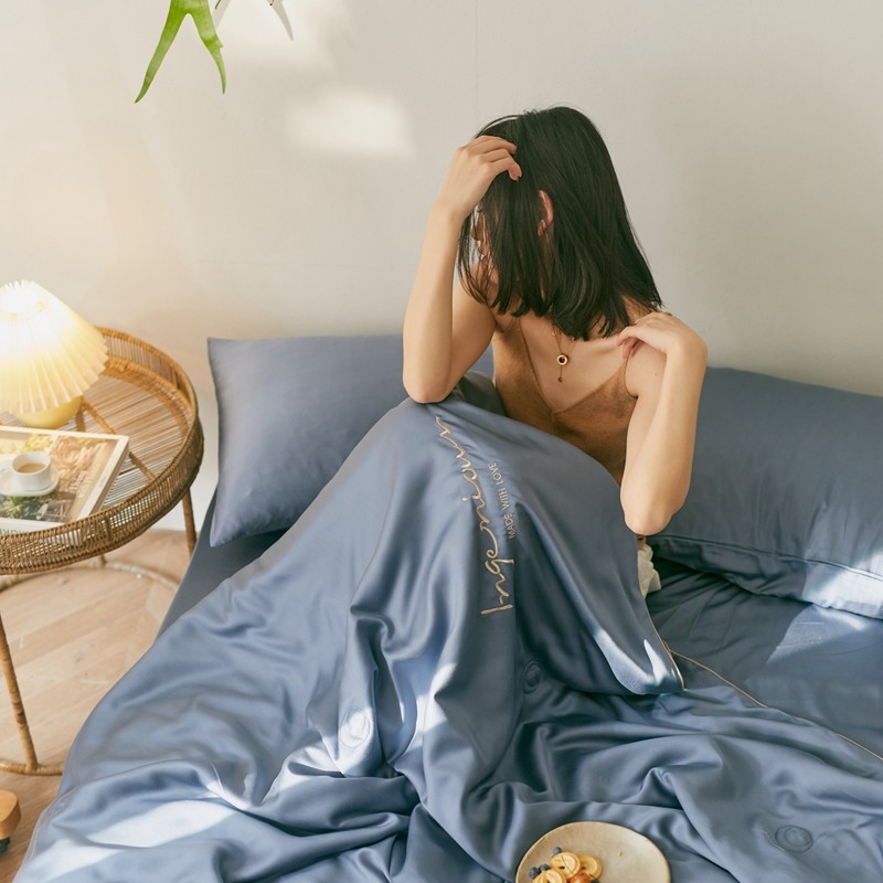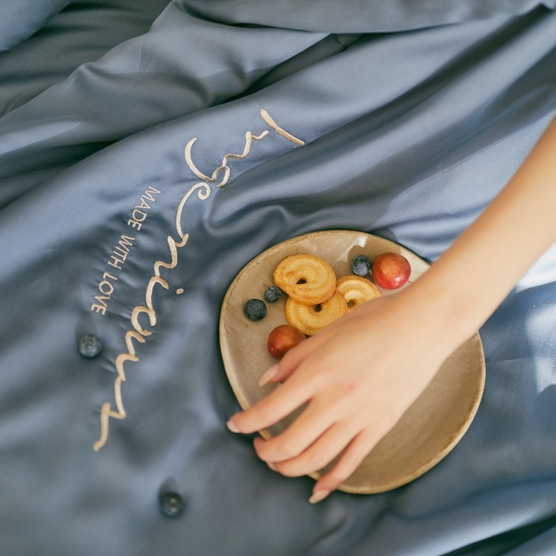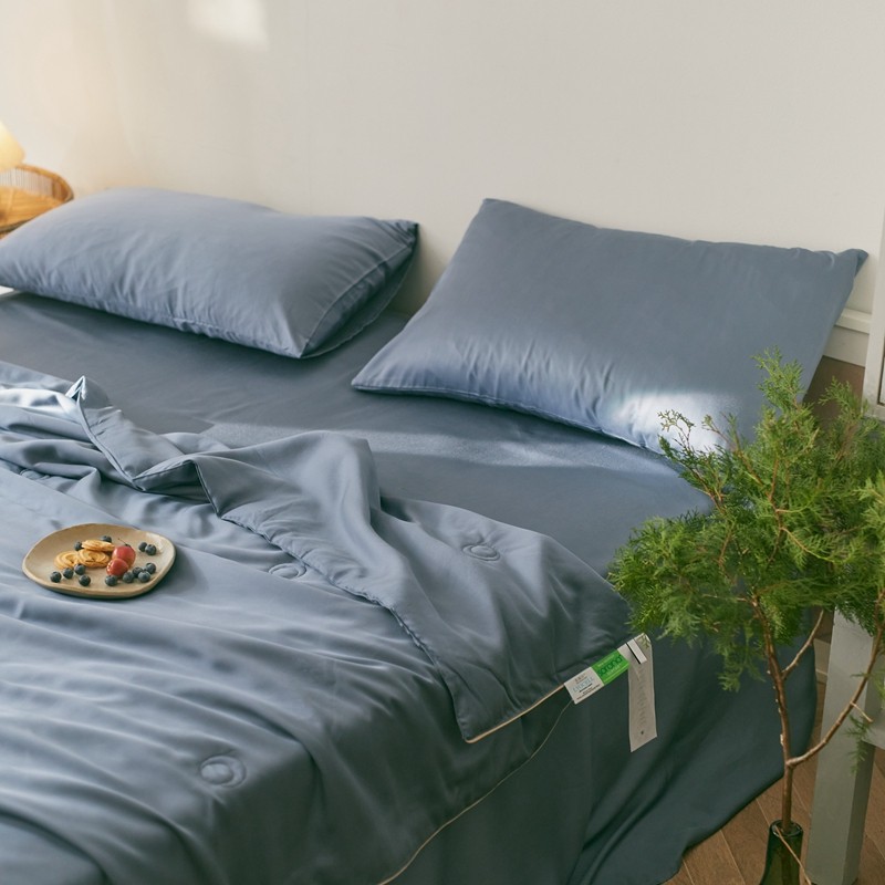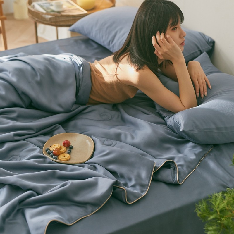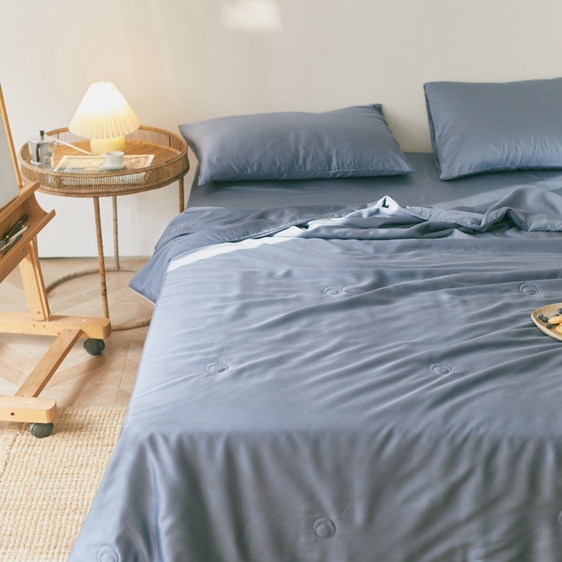 丽笙 2021新款60兰精天丝素色刺绣系列夏被 简朴蓝