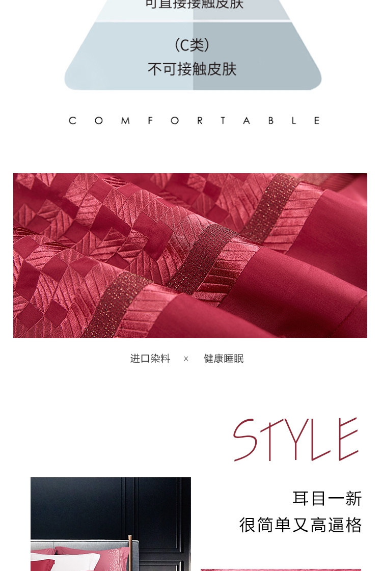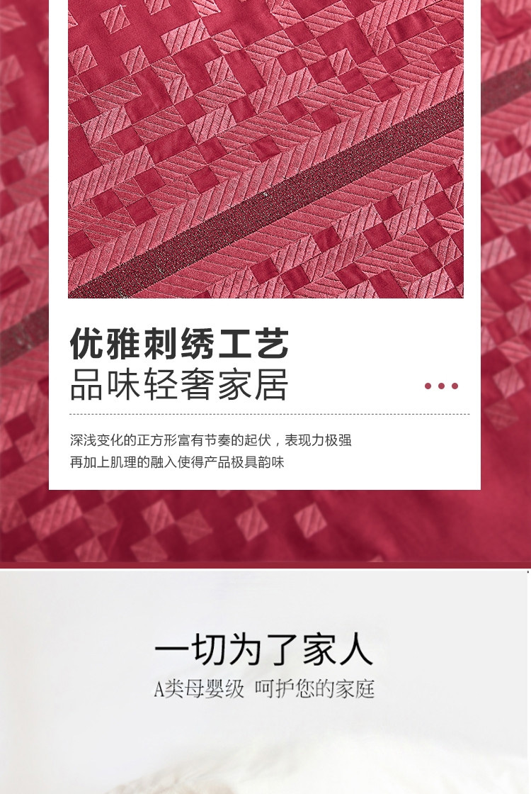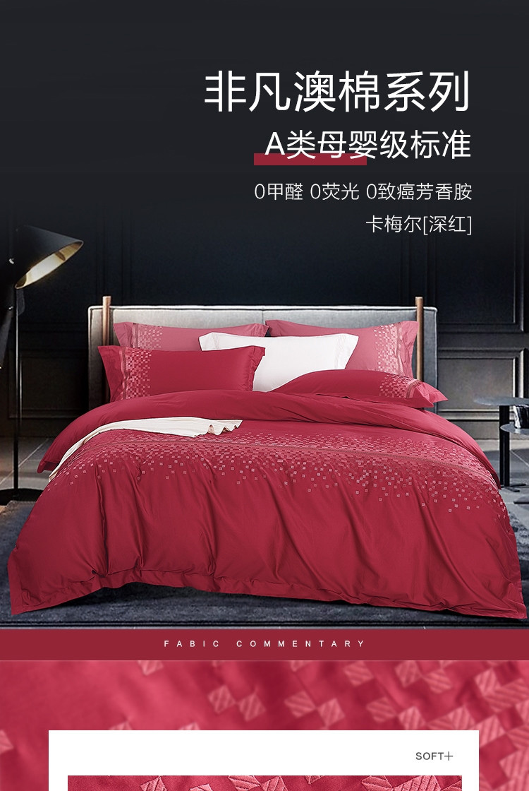 榻尚家居 2021新款非凡澳棉长绒棉贡缎刺绣床盖款四件套 卡梅尔深红