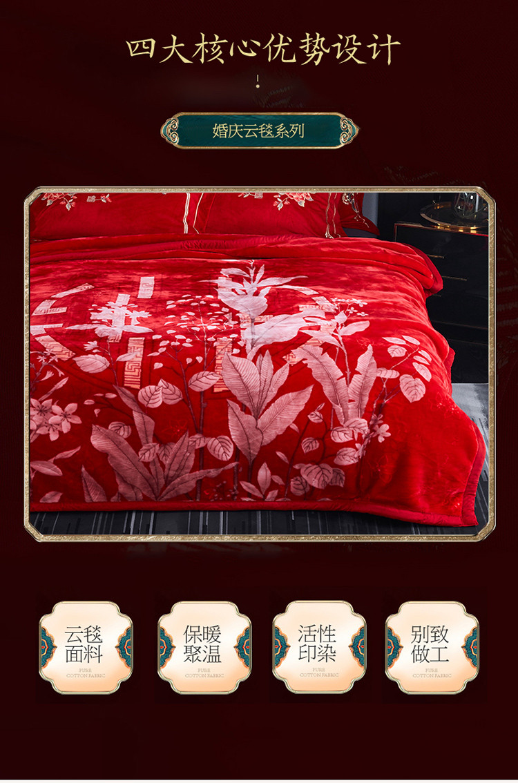 凯轩毛毛毯毯子 2024新款婚庆云毛毯毯子 锦上添花