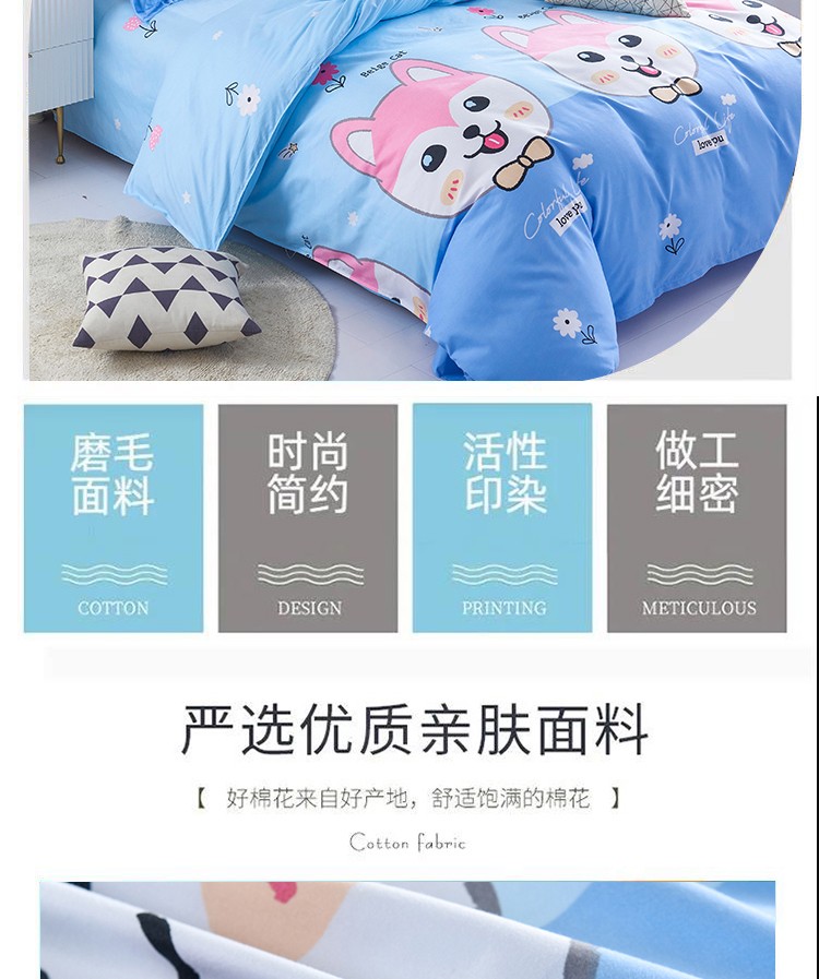 商品名称:爱诗诺家纺 2025新款植物羊绒四件套印花单被套 笑哈哈