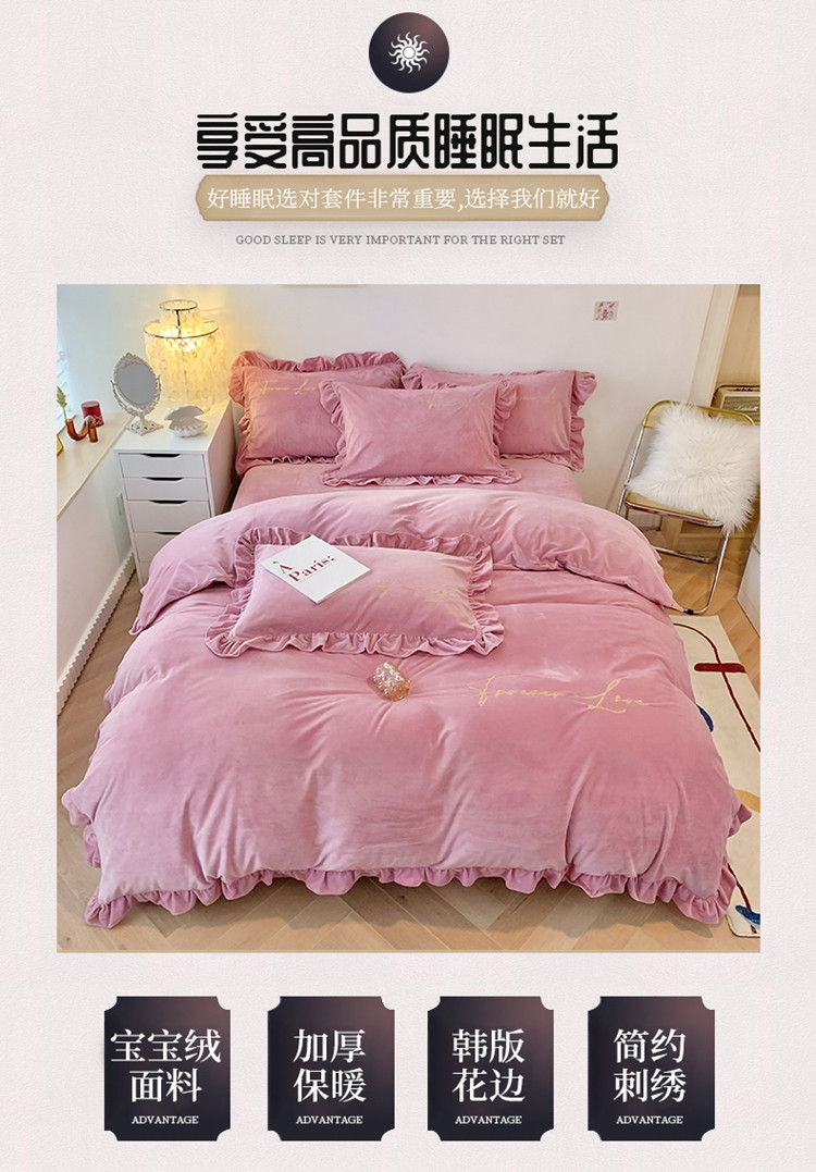 商品名称:上尚居 2021新款加厚韩版水晶绒宝宝绒四件套 艾丽丝豆沙