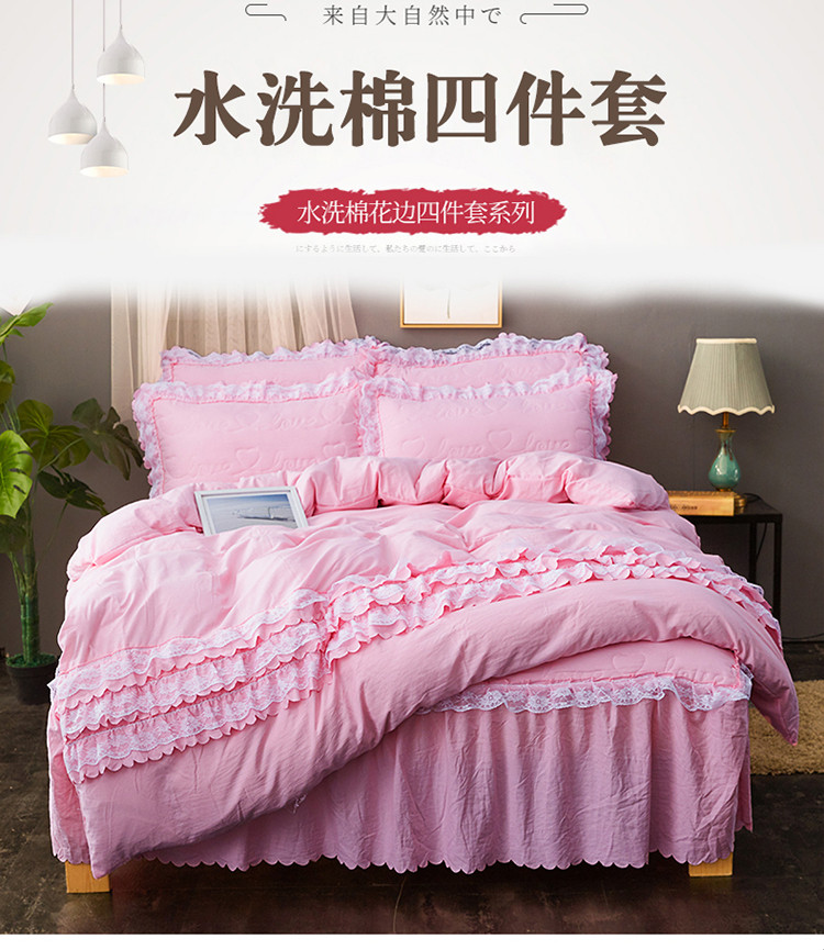 (总)梦柏家纺 2021新款水洗棉夹棉床裙四件套
