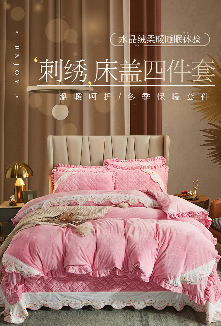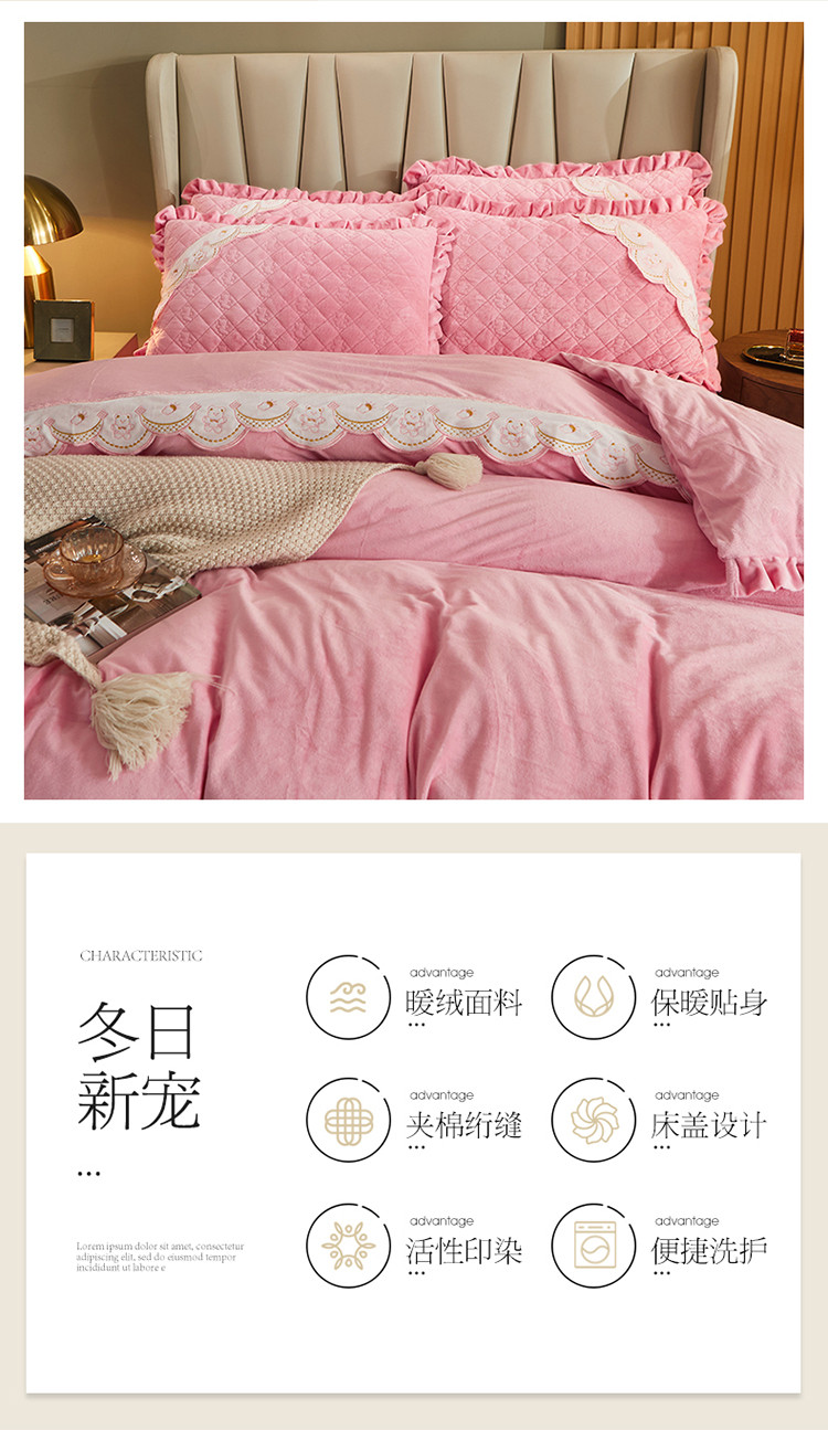 (总)宜凡家纺 2025新款兔绒提花牛奶绒夹棉床裙四件套,爱心 少女粉,爱心 粉紫,爱心 驼色,蝶舞 大红,蝶舞 米色,蝶舞 浅紫,蝶舞 玉色,简爱 苍青,简爱 豆沙紫,简爱 玉色,樱桃 苍青,樱桃 豆沙紫,樱桃 奶油白