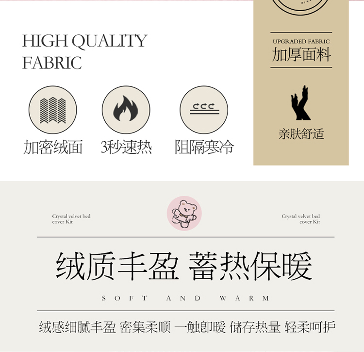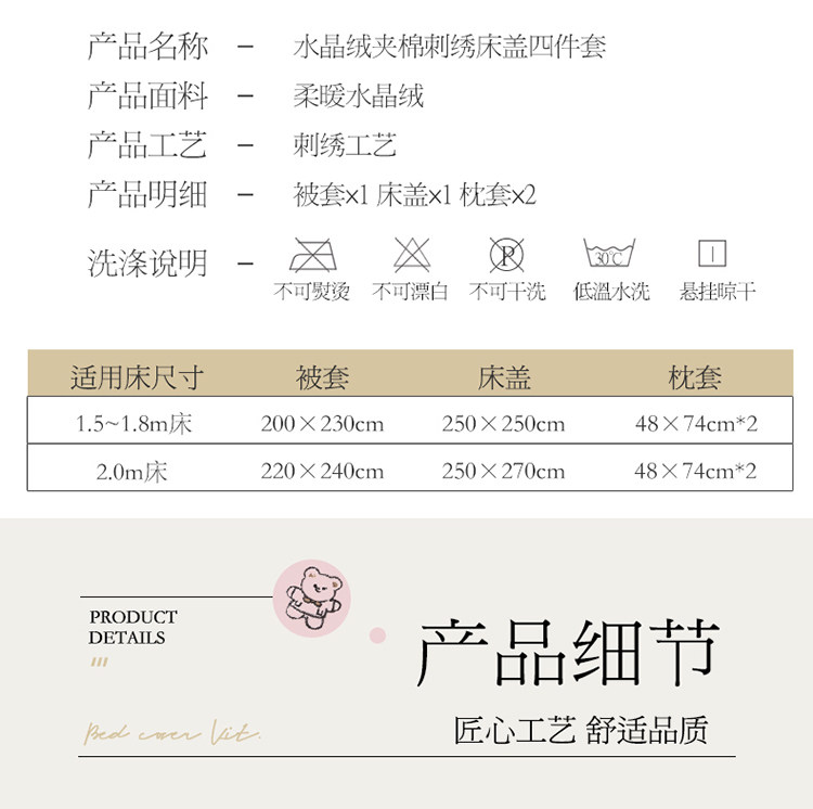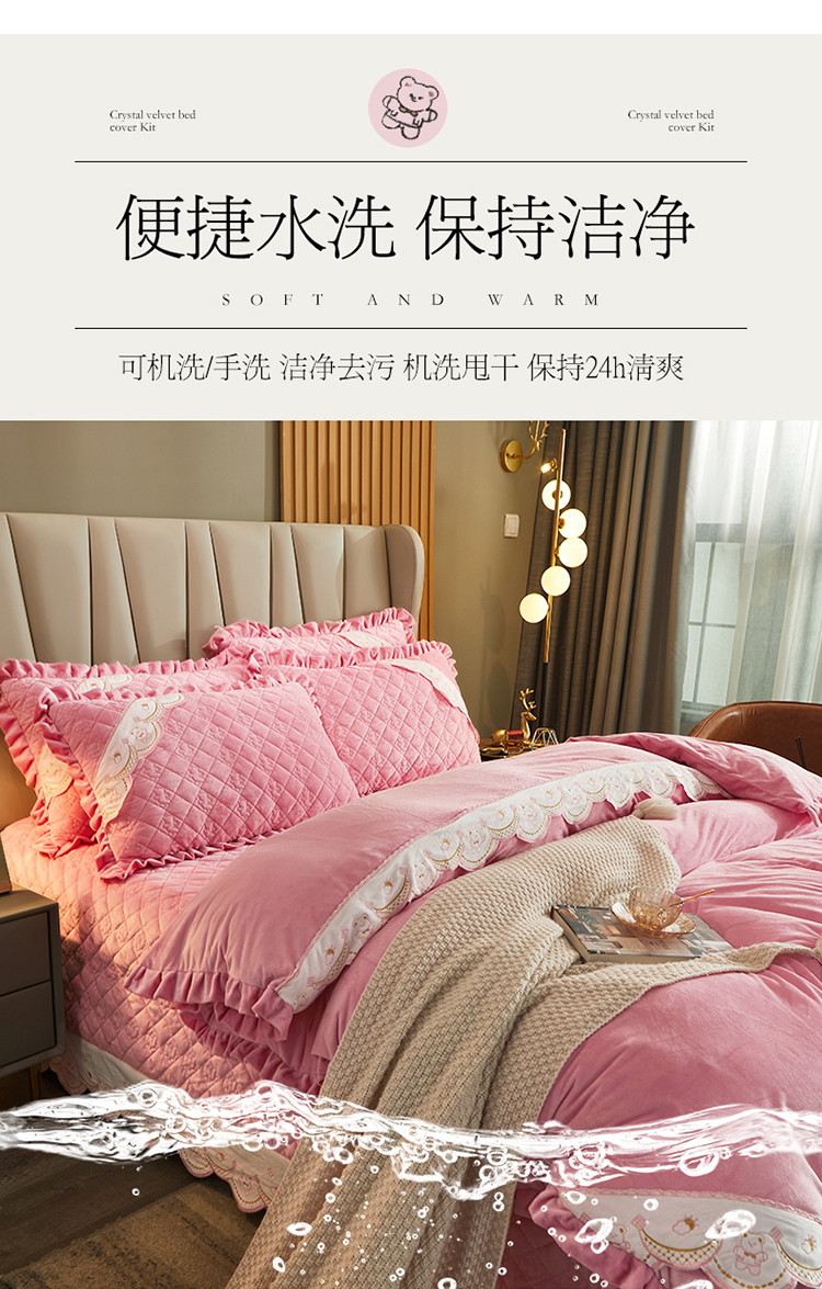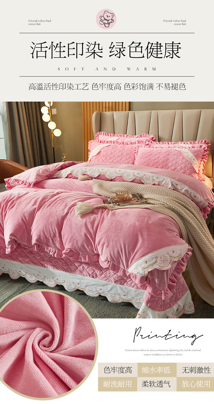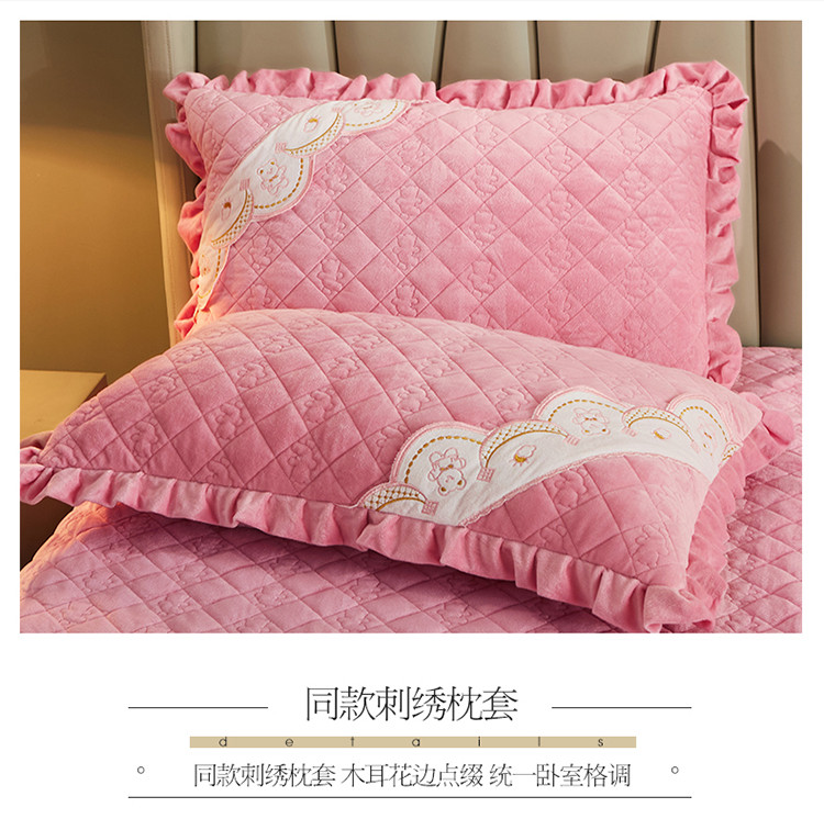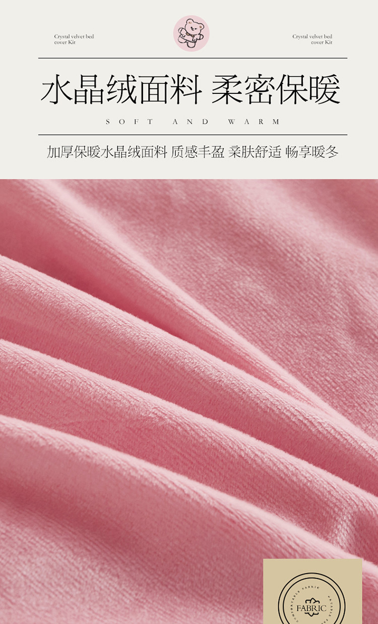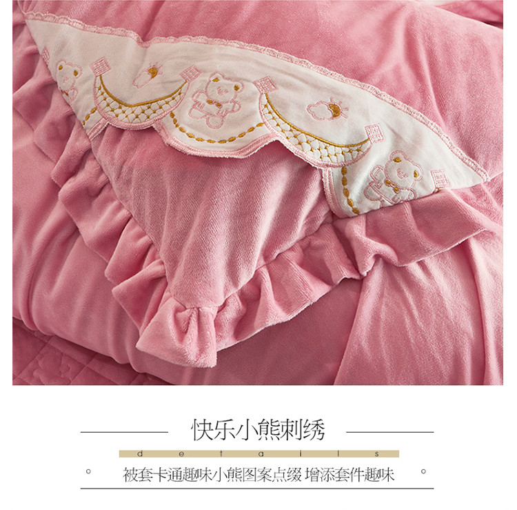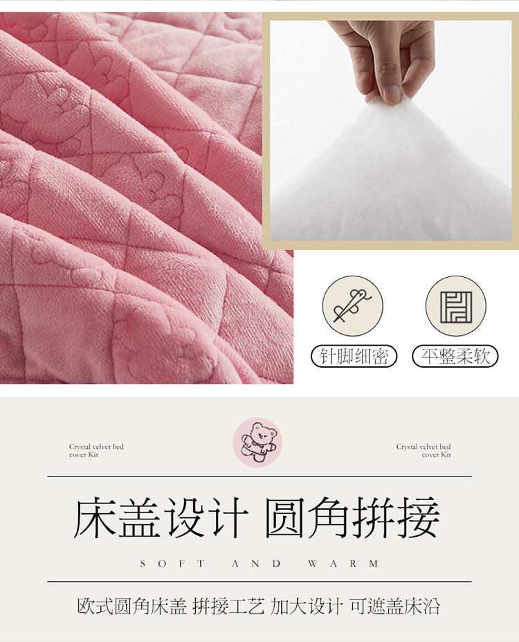 商品名称:宜凡 2021新款水晶绒夹棉绗缝床盖四件套 快乐小熊-嫩粉