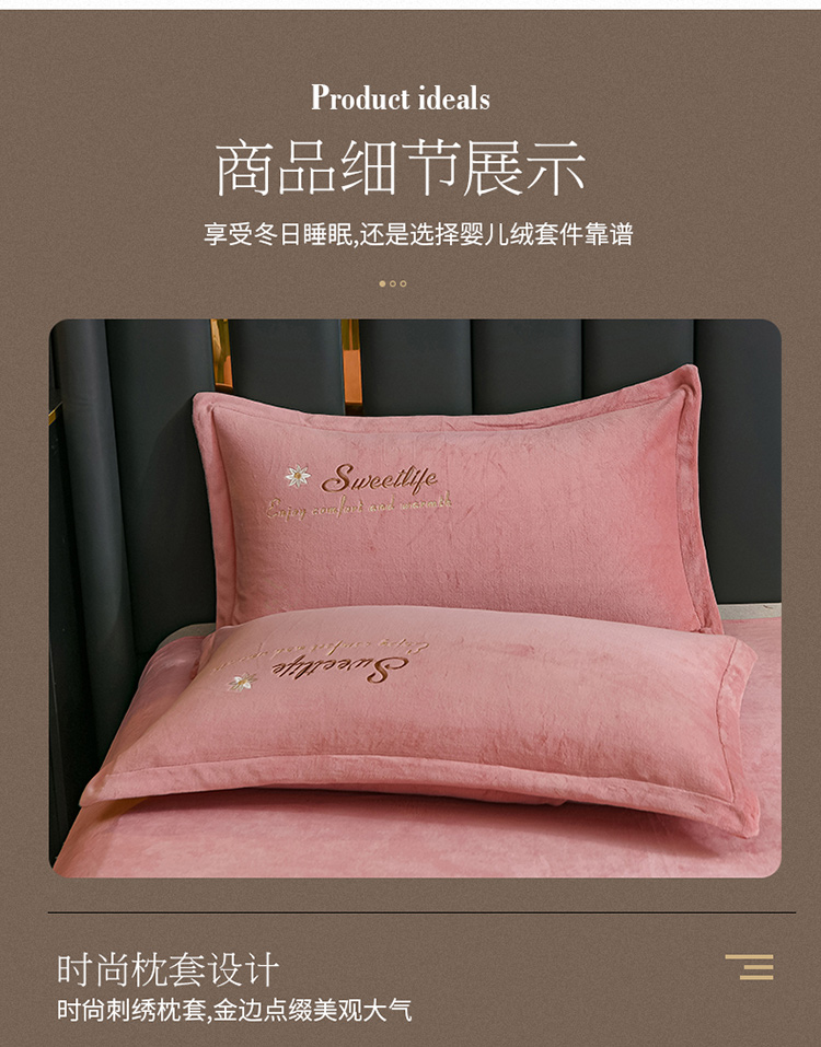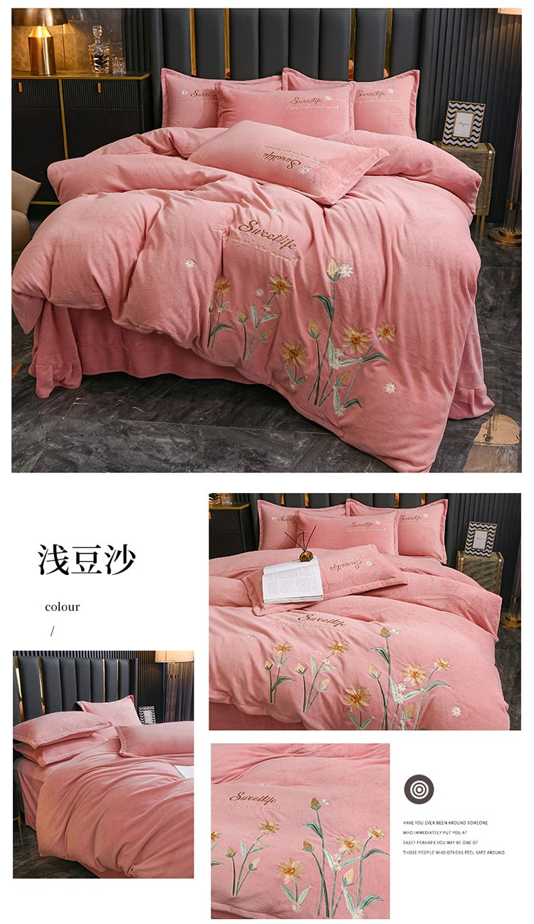 商品名称:金米诺 2022新款牛奶绒平绣四件套 花-浅豆沙