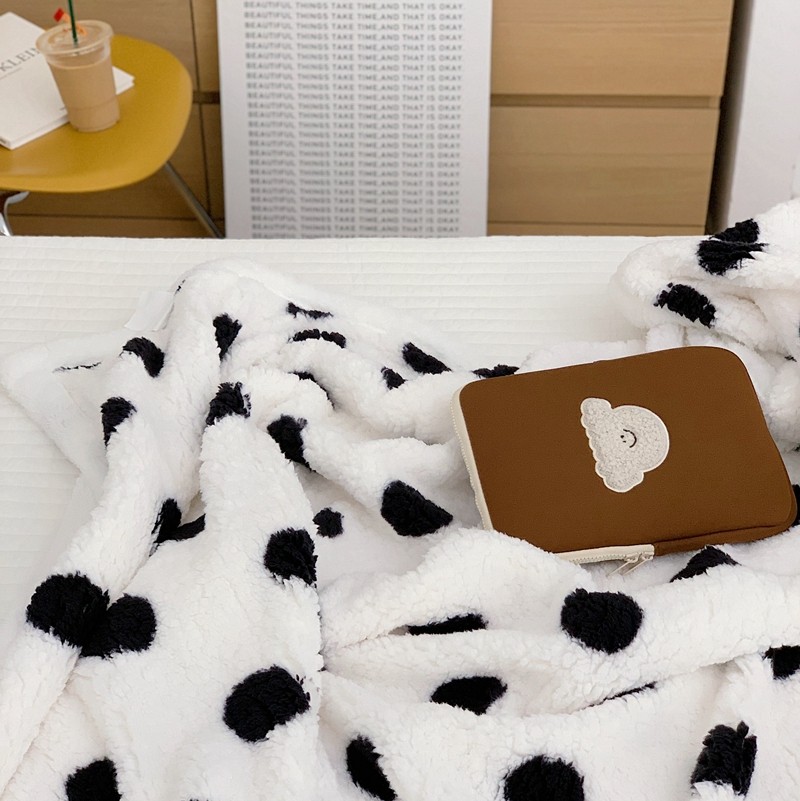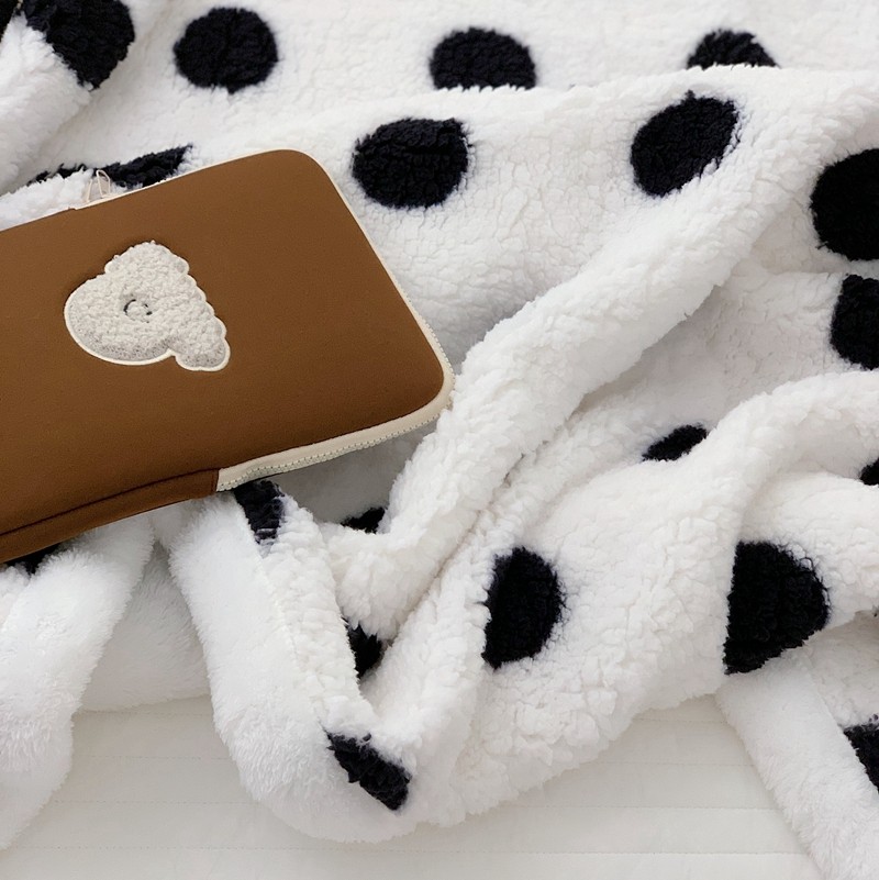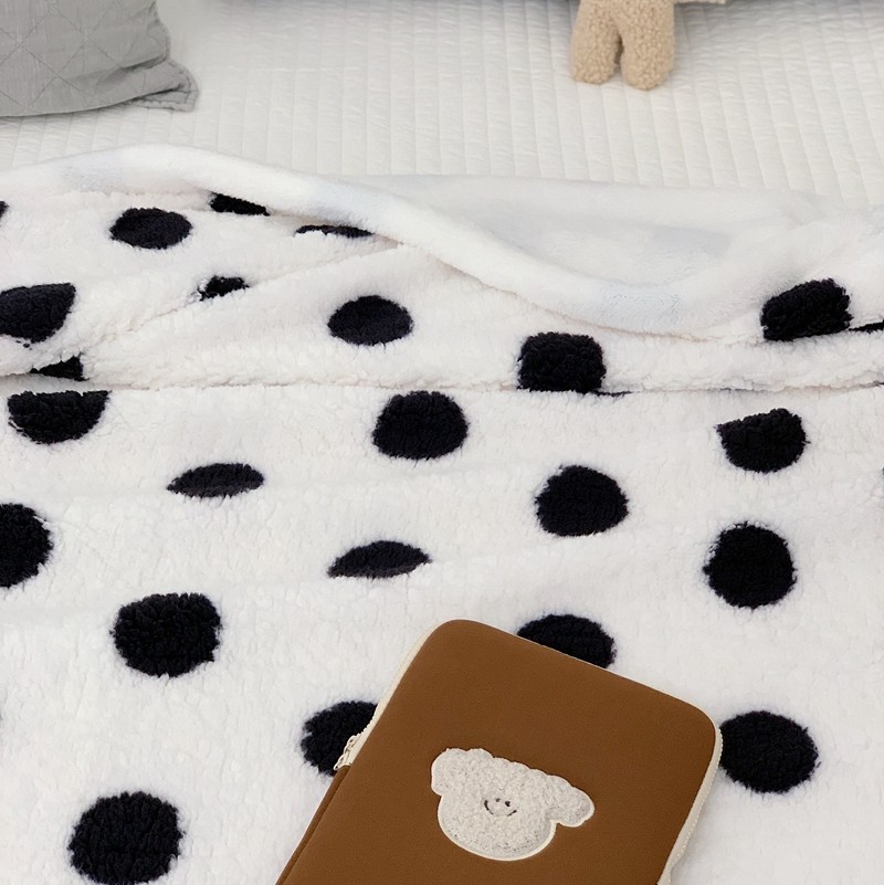 昔可家纺 2021新款羊羔泰迪绒印花毛毯-第二组图 黑白波点