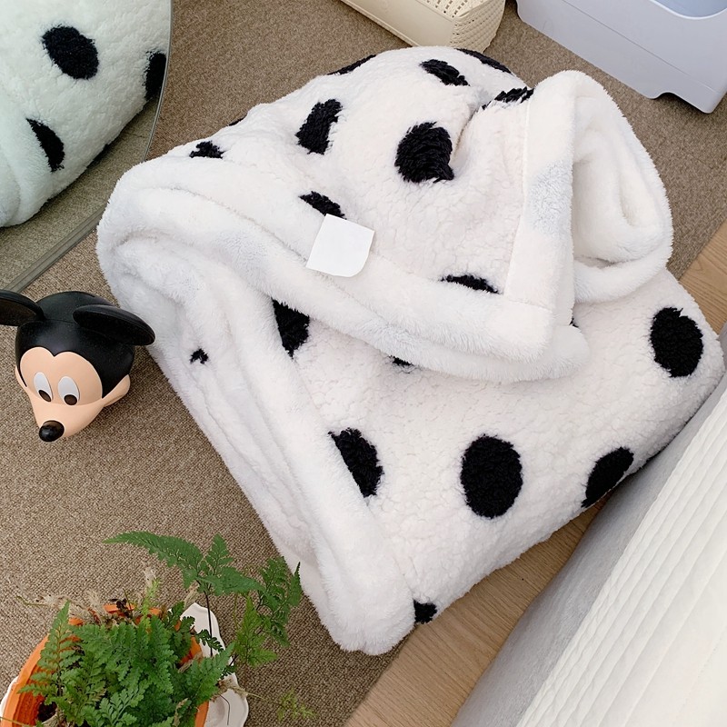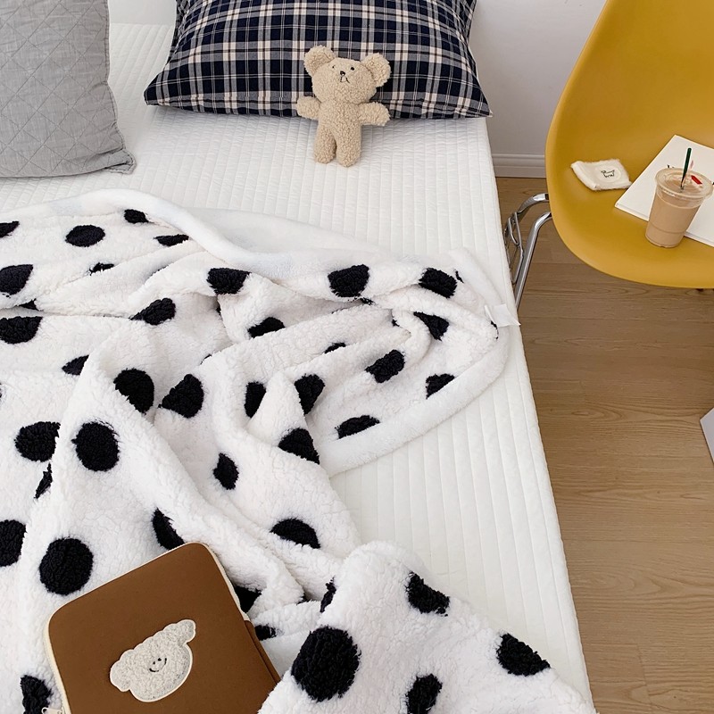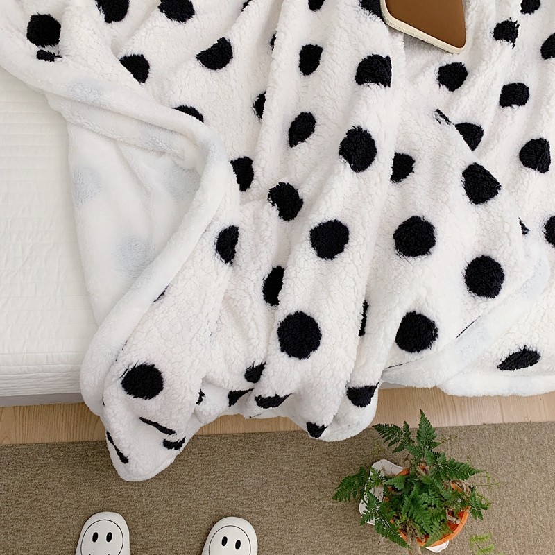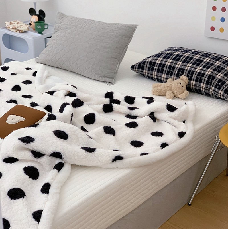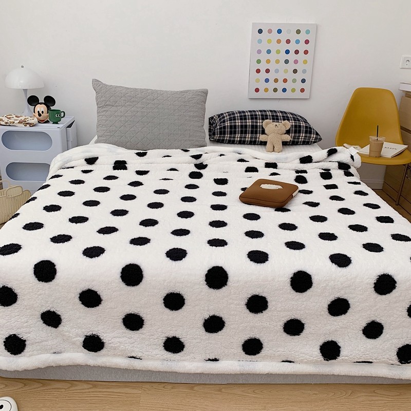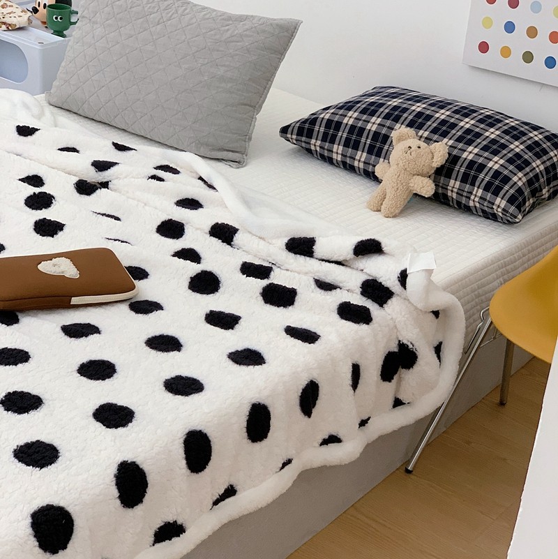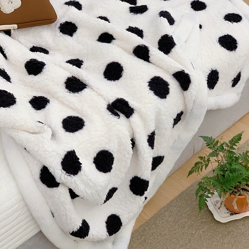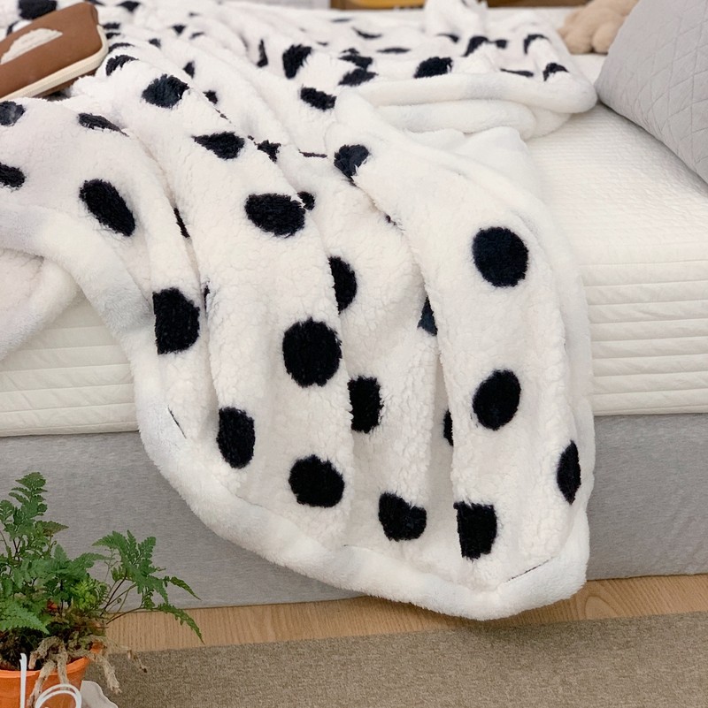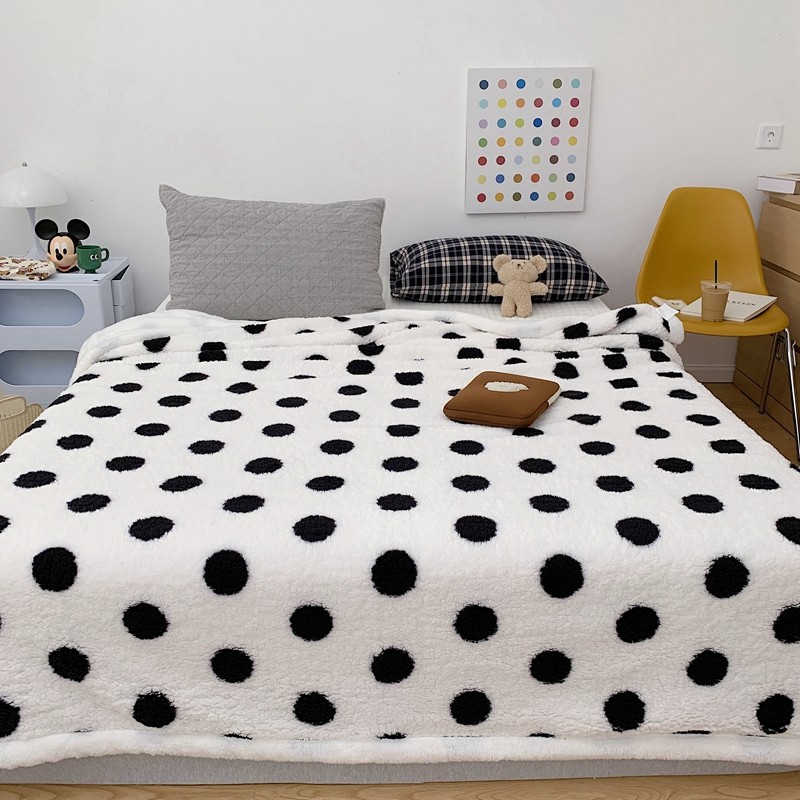 商品名称:昔可家纺 2021新款羊羔泰迪绒印花毛毯-第二组图 黑白波点