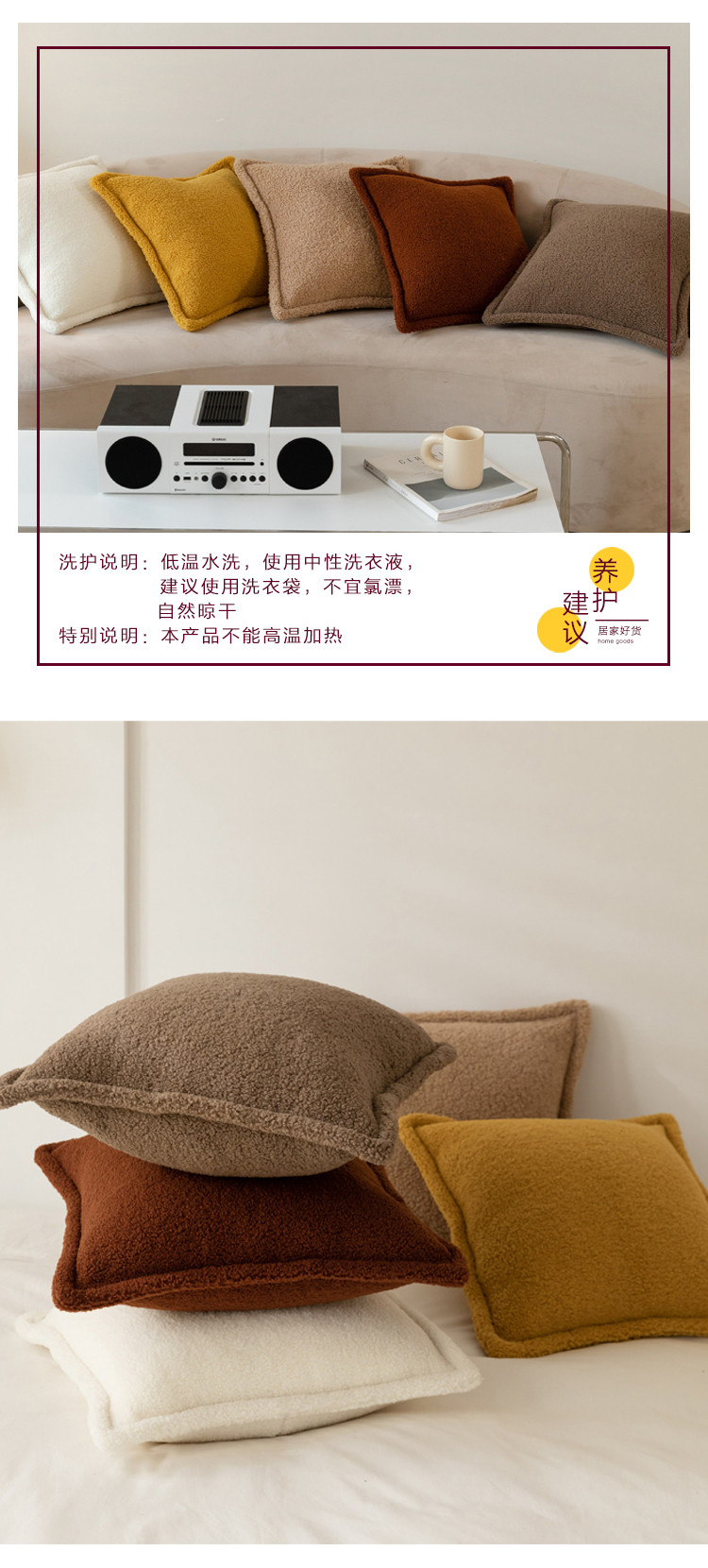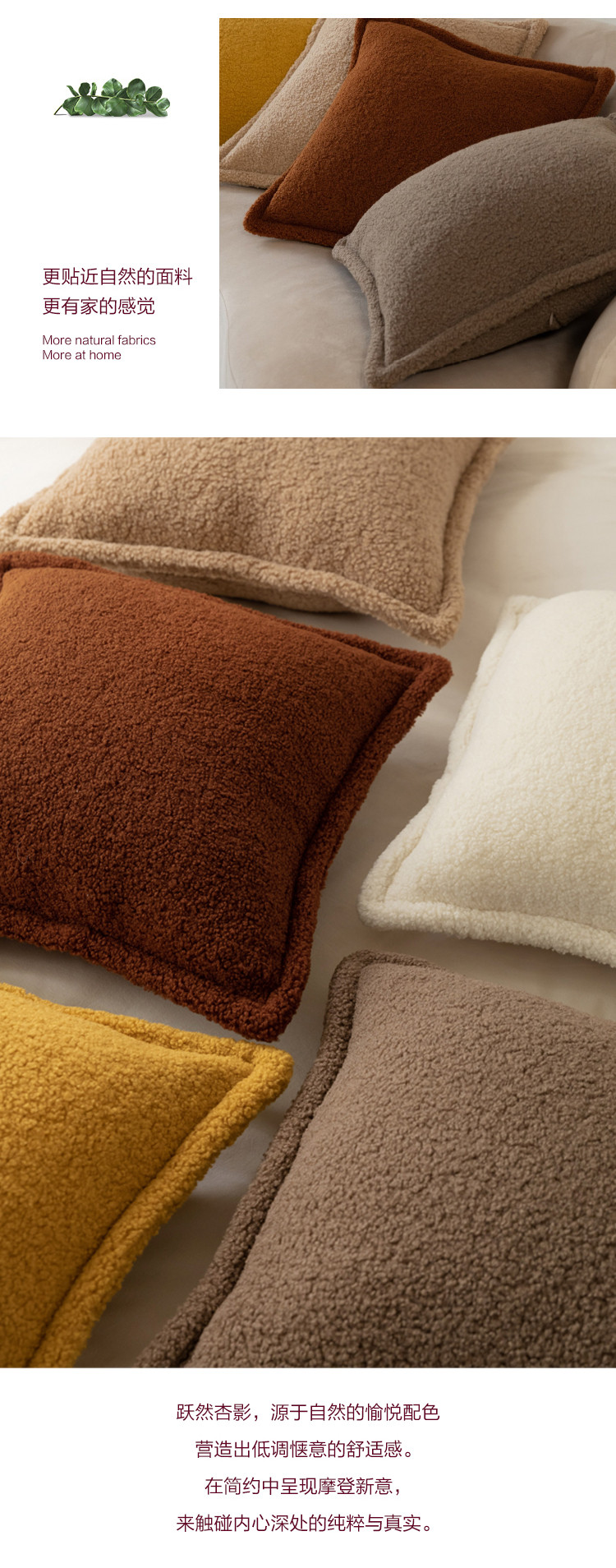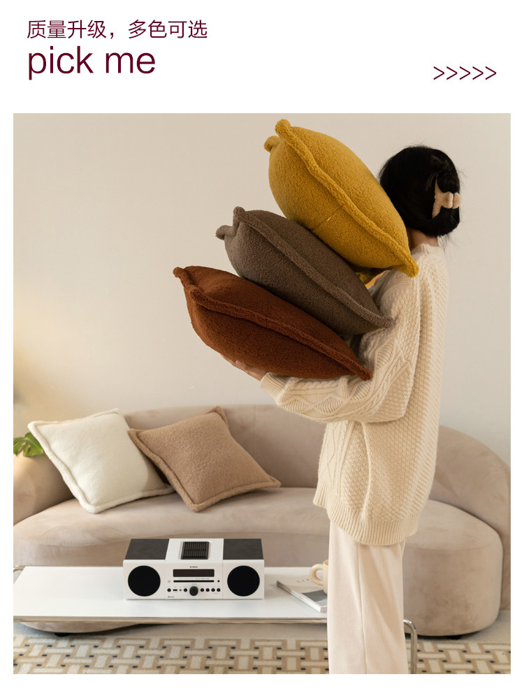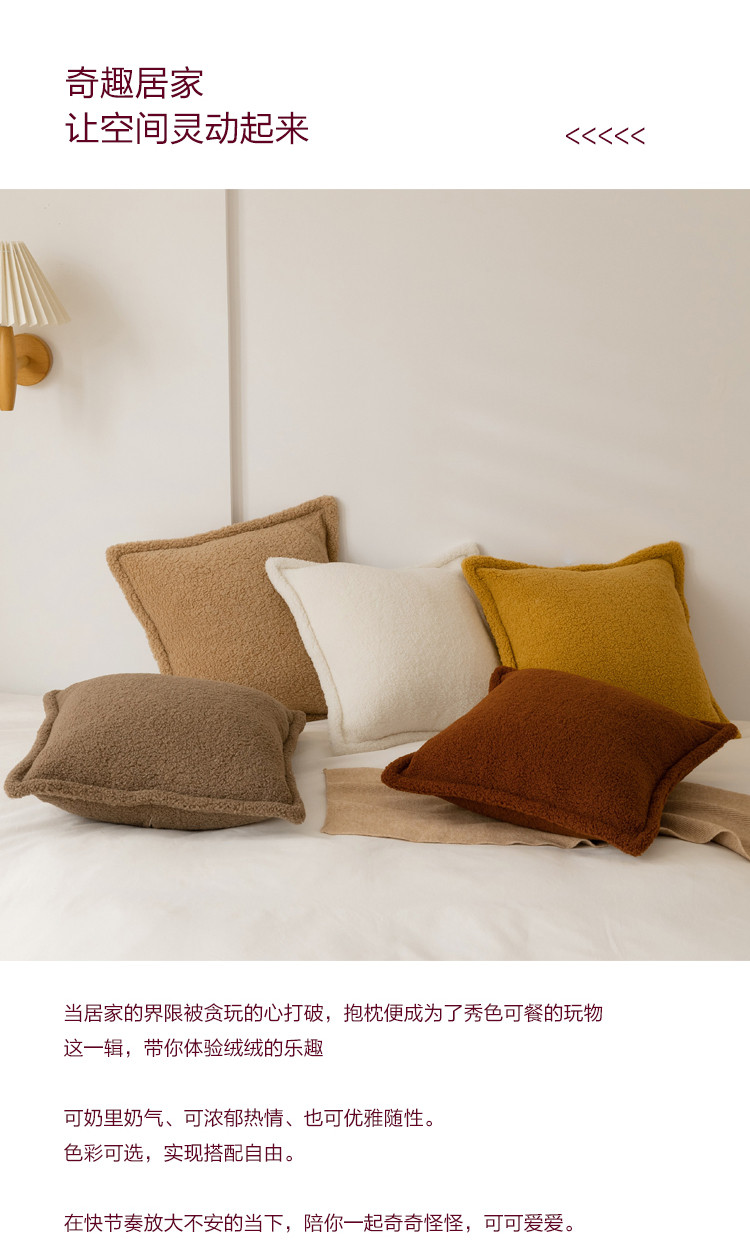 (总)美茉家居 2025新款云朵绒曲边方枕抱枕,草墨灰,枫叶红,芥末黄,米脂白,若竹青